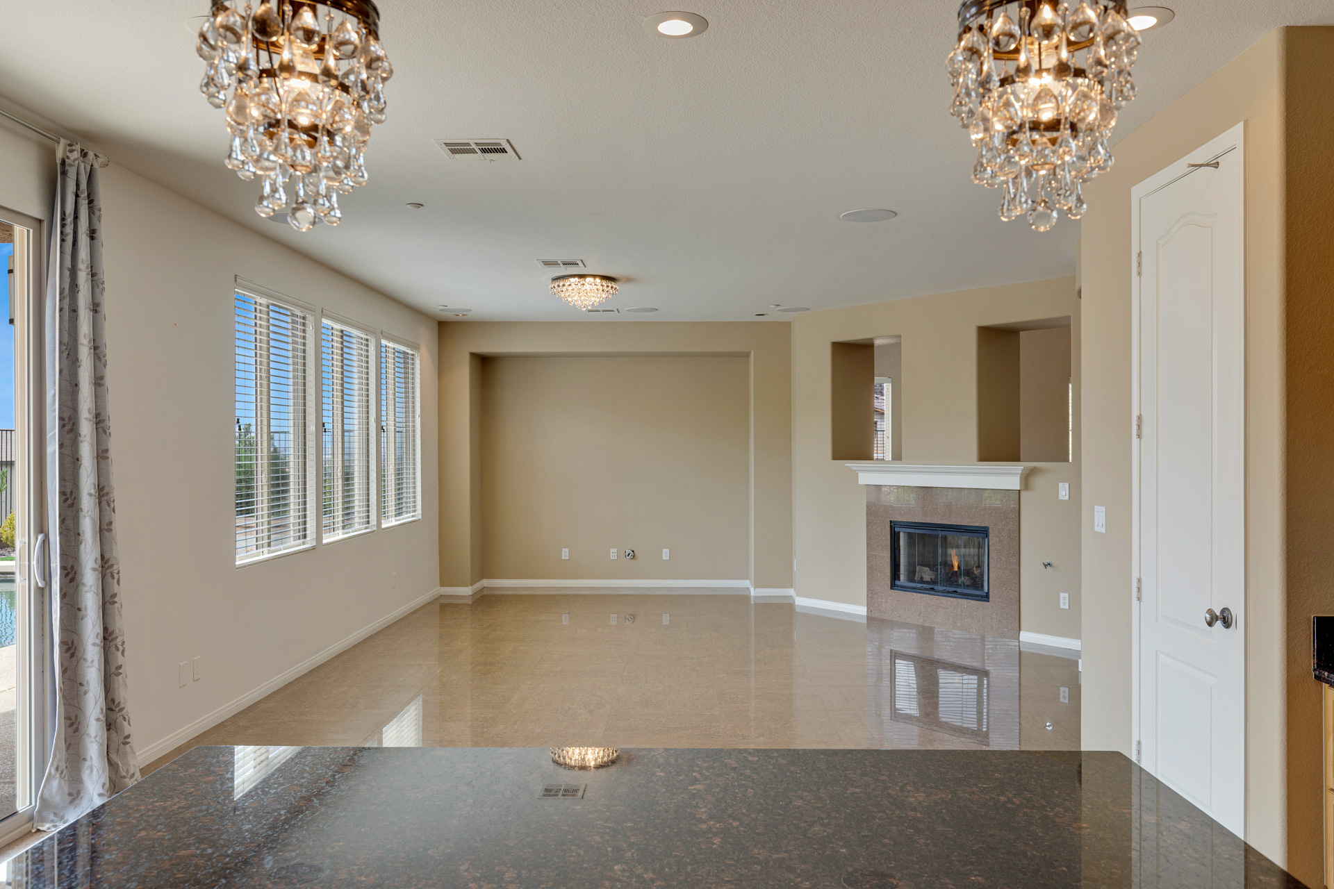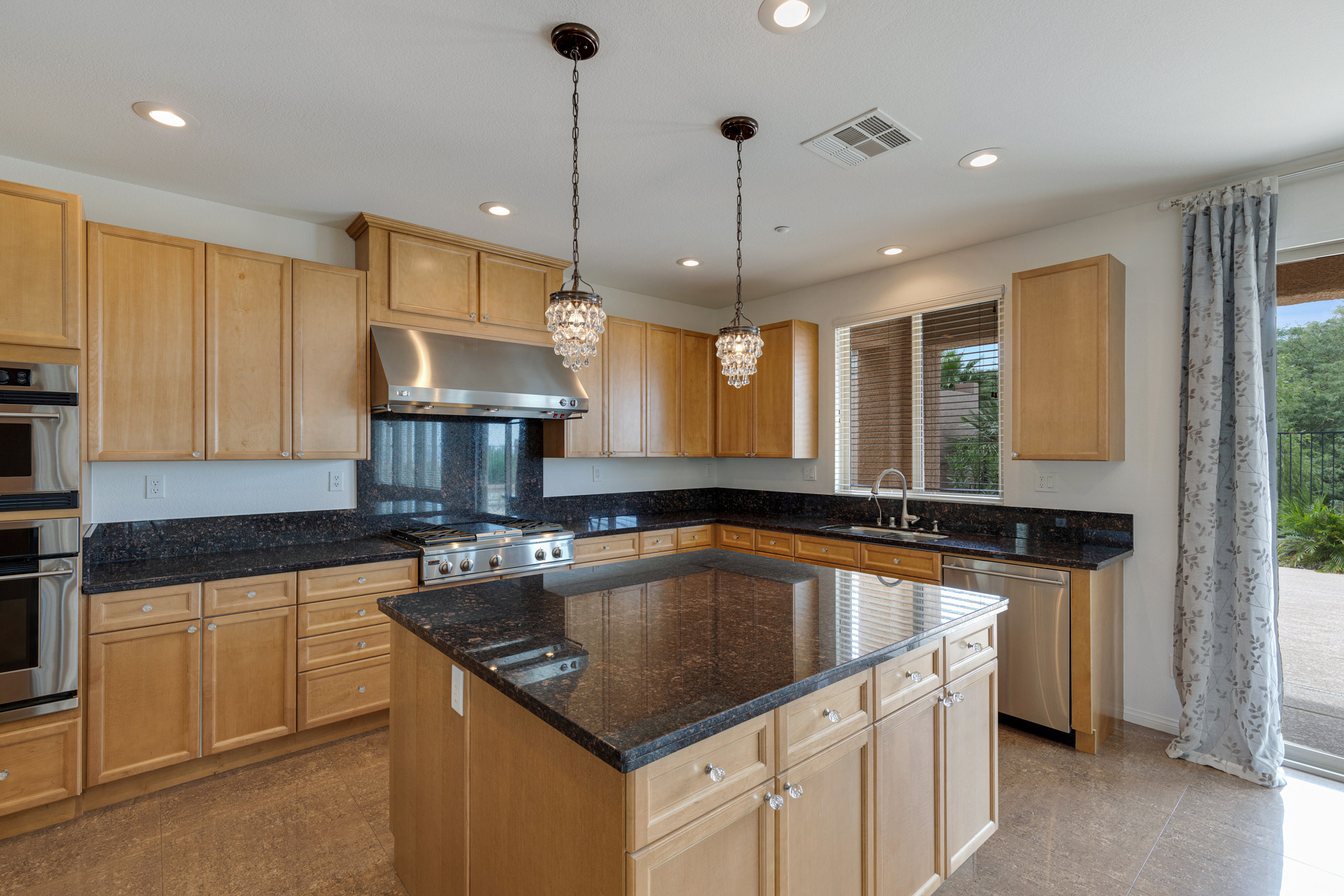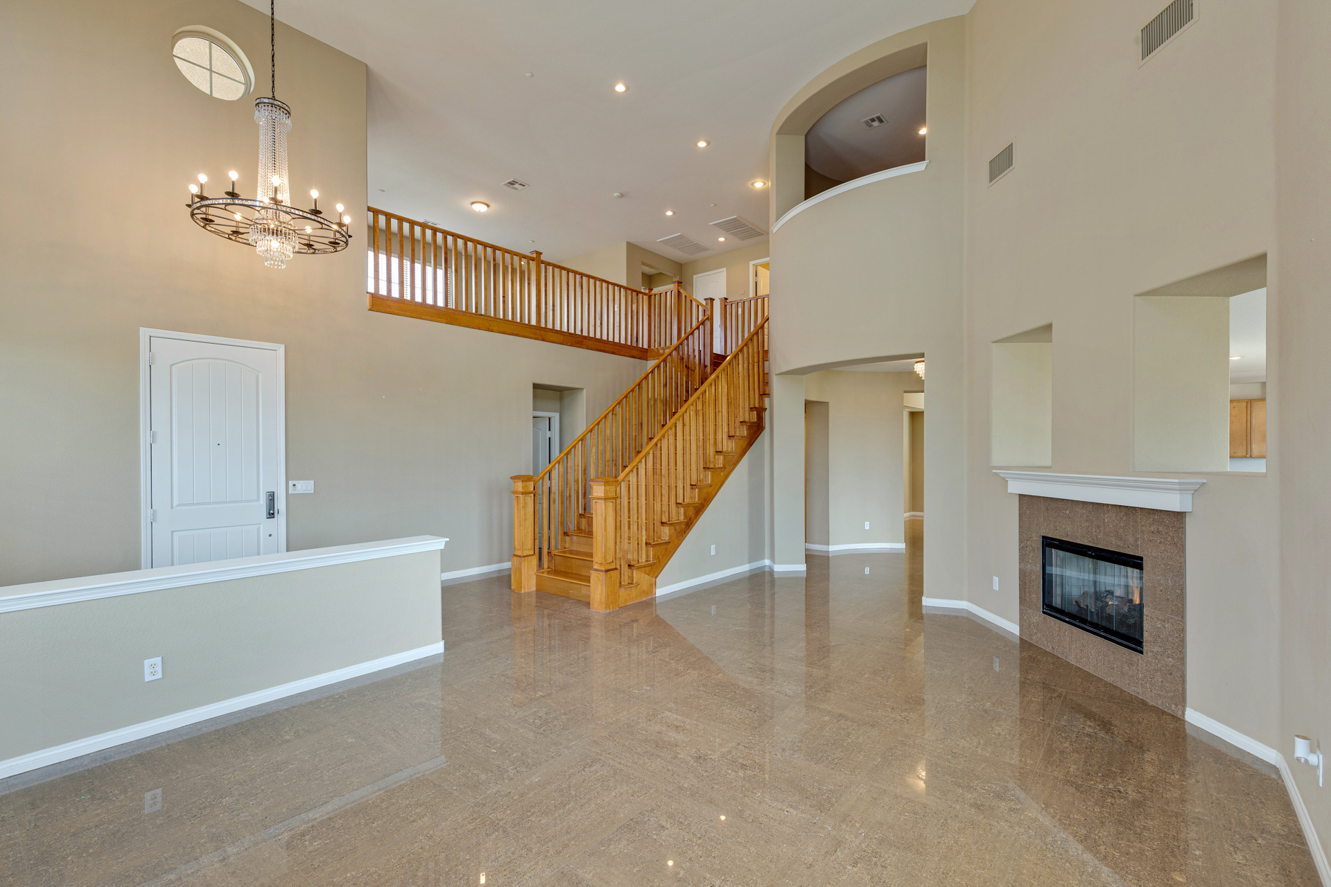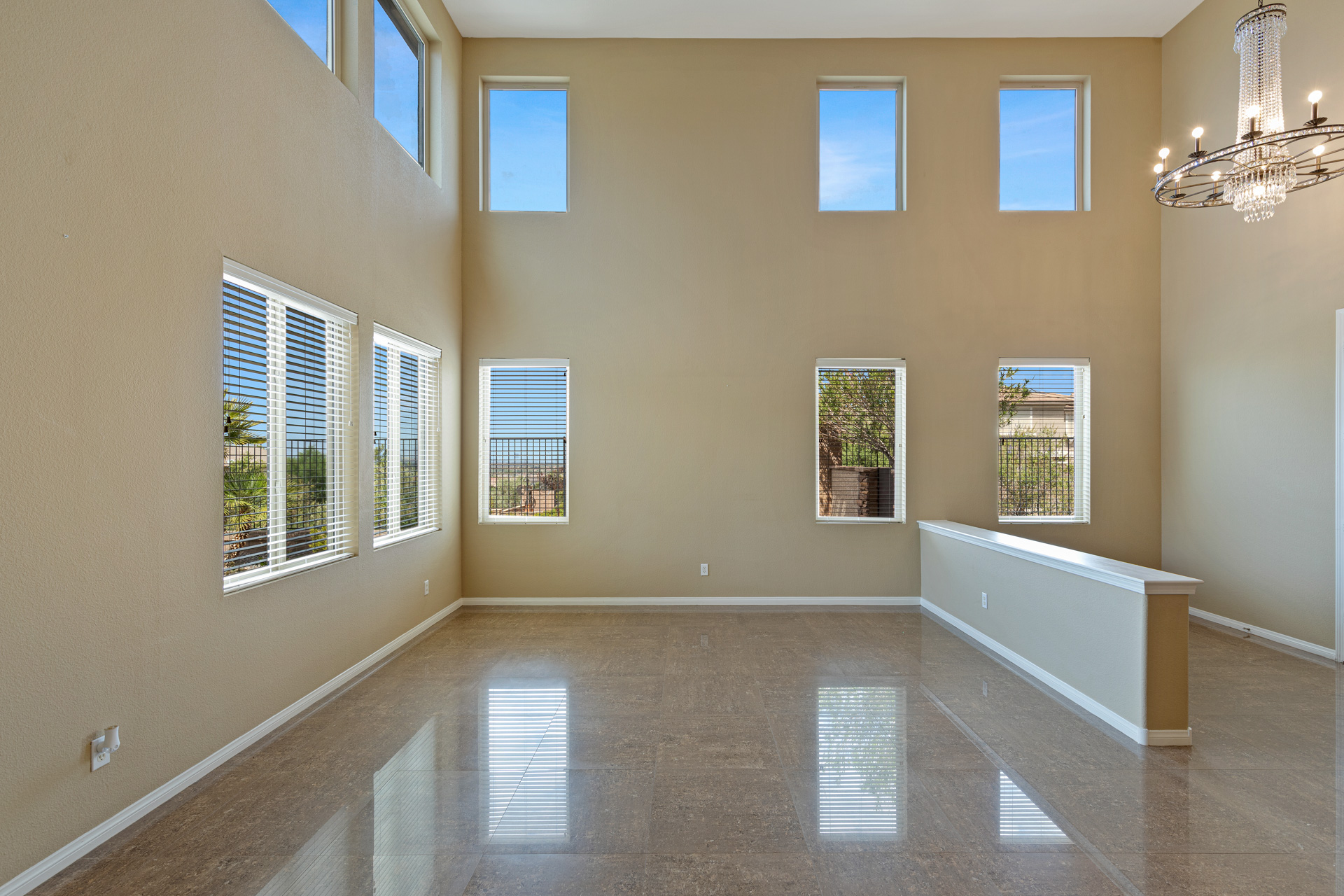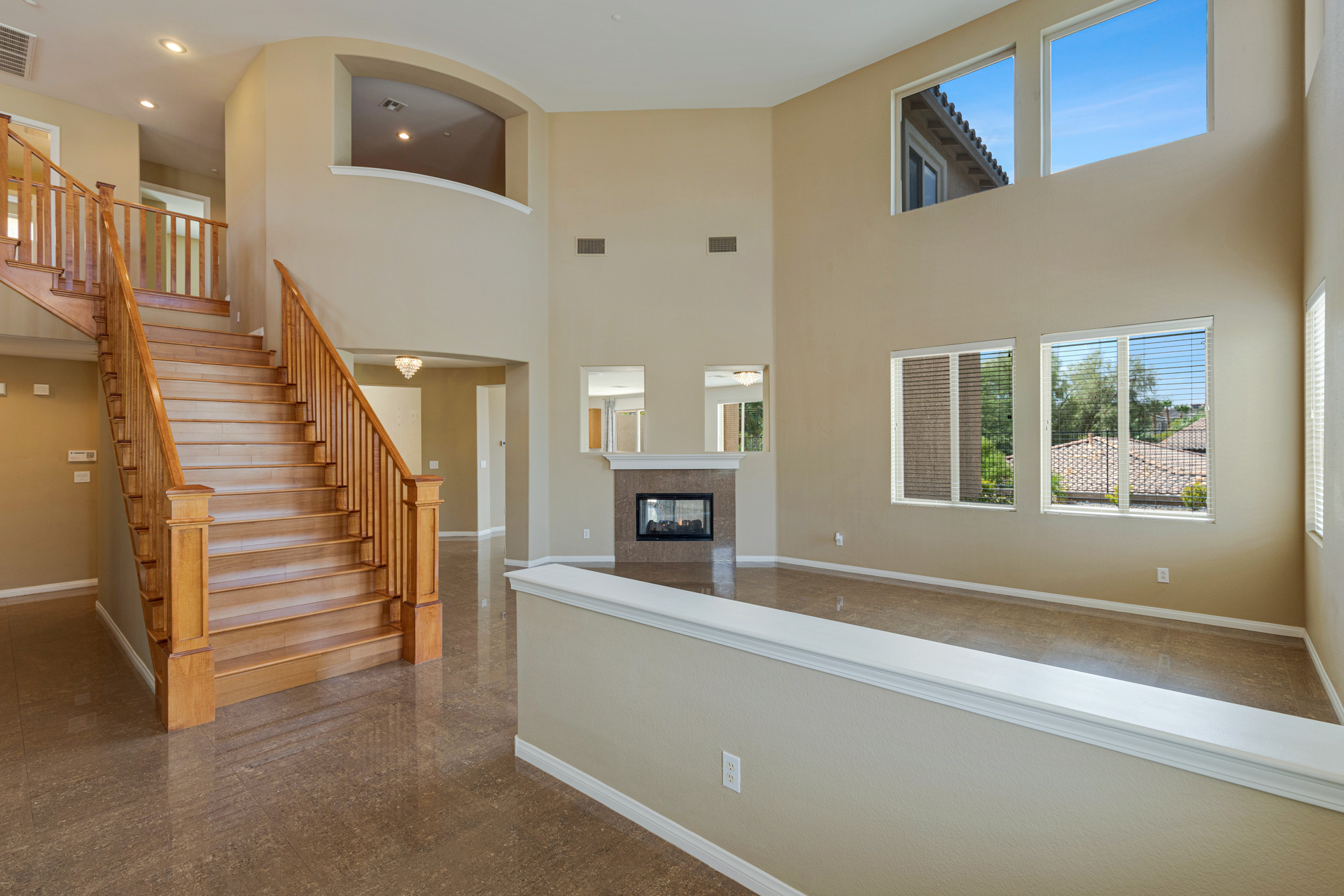Spectacular panoramic views of the Las Vegas Strip and the Valley, from the backyard, from balconies, and from several rooms. The home perched up on an elevated lot is in a quiet cul-de-sac within the Terrazzo gated community. A private gated courtyard leads inside the bright, open home with high ceilings, custom stone and real hardwood flooring, deluxe carpeting, and designer light fixtures.