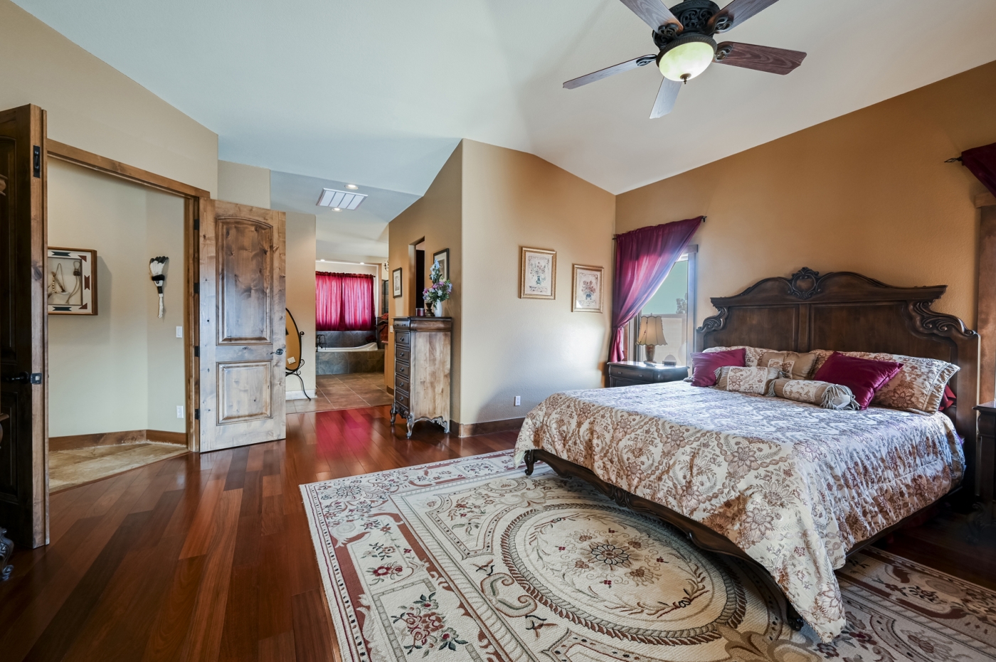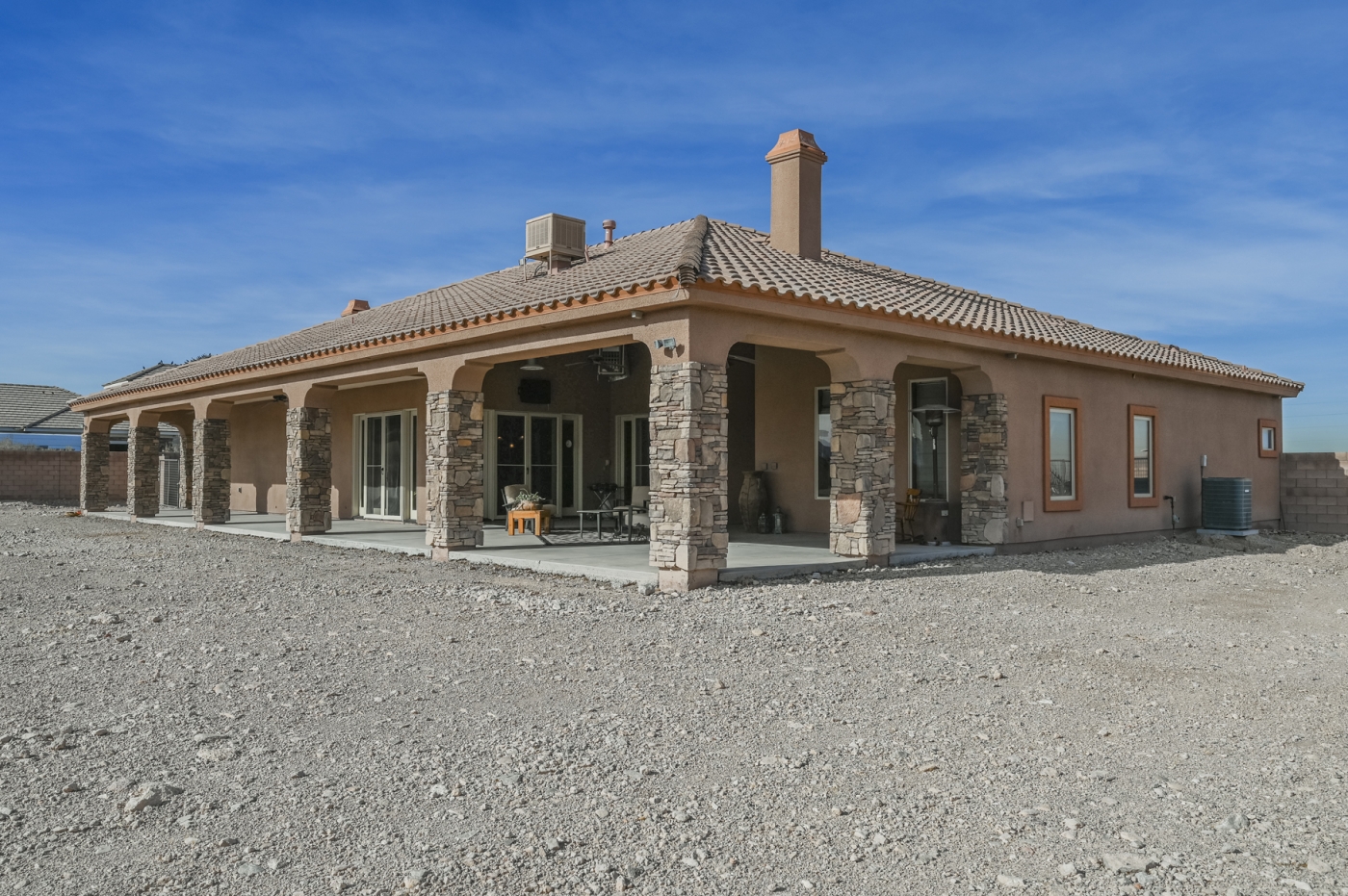 Distinctive custom home on 1.27 acres near the I-15 and not far from South Point Casino with its popular hotel and spa, awaits your personal touches. This is a unique property; located in the southwestern portion of the cosmopolitan Las Vegas area, and the zoning regulations allow horses and outbuildings, making it perfect as a multi-purpose retreat. Double gates to the property allow RV parking as well, for families that love their freedom and enjoy a variety of outdoor activities.