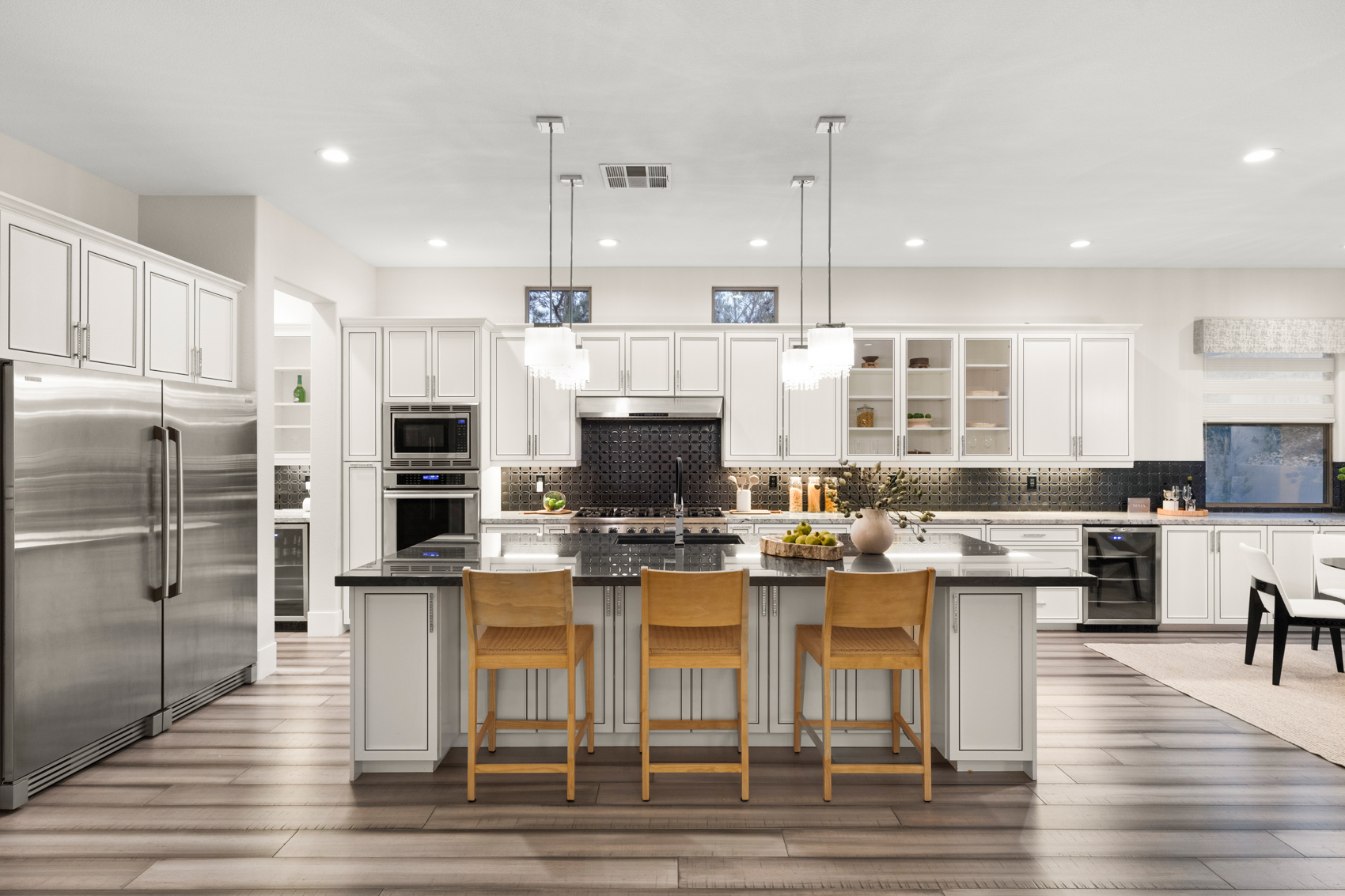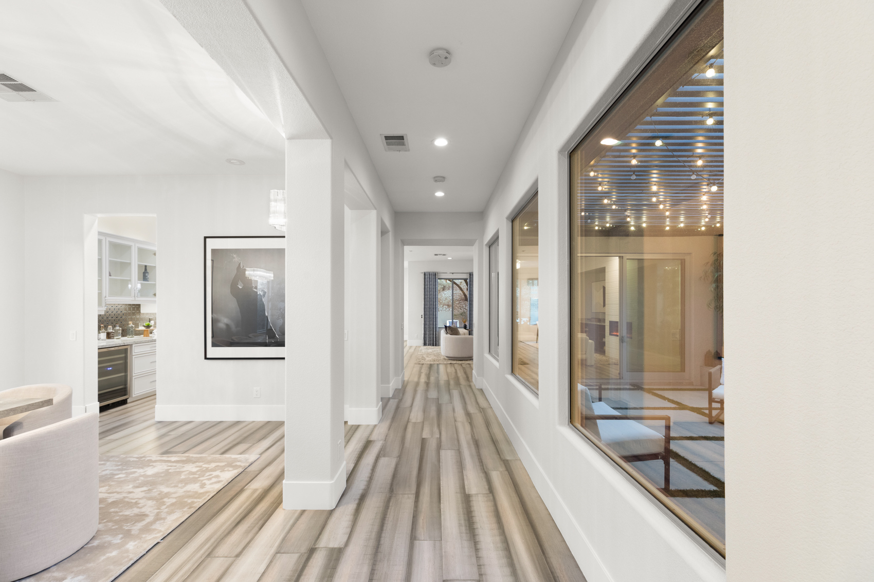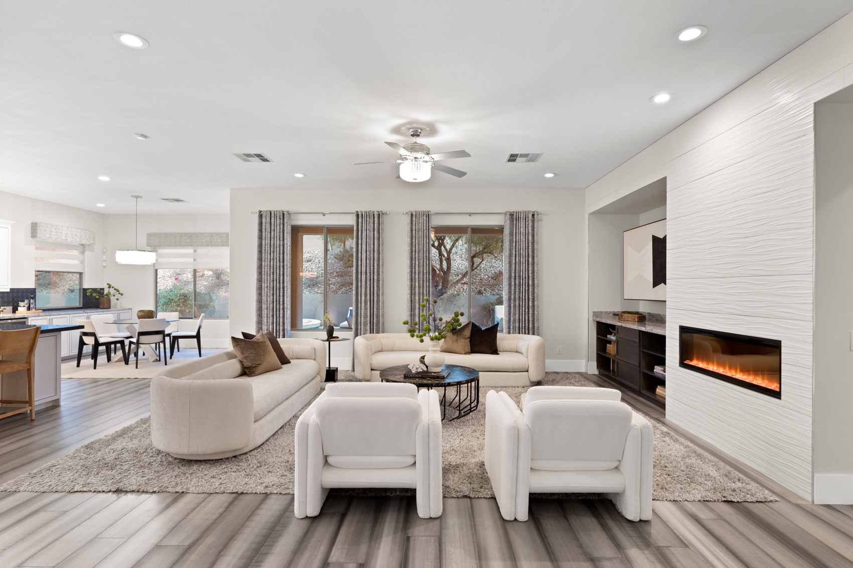 This recently renovated home, set on an elevated half-acre lot within the prestigious guard-gated Anthem Country Club, perfectly balances modern elegance with inviting warmth. At its heart is a striking atrium featuring a designer zen-living wall that brings a sense of serenity. Surrounding this tranquil centerpiece are formal dining and living spaces, a thoughtfully designed executive office with a 3/4 bathroom, and a gourmet kitchen built to impress.