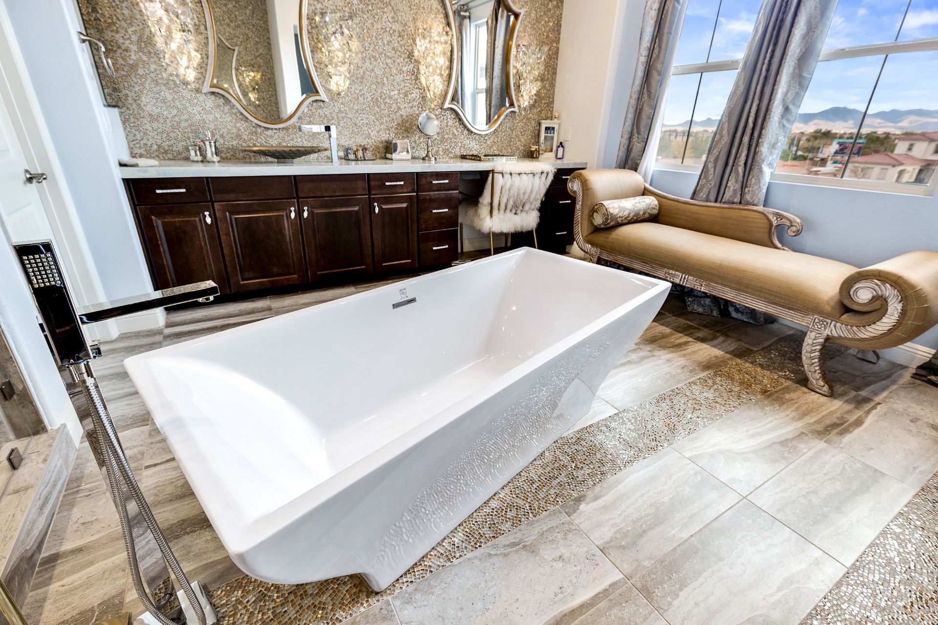 Exquisite highly customized home in Tuscan Cliffs at Southern Highlands. Artistic Design Filled with stunning, elegant finishes throughout, this four-bedroom, five-bathroom home with an office/den and a full bar is a perfect place to call home.