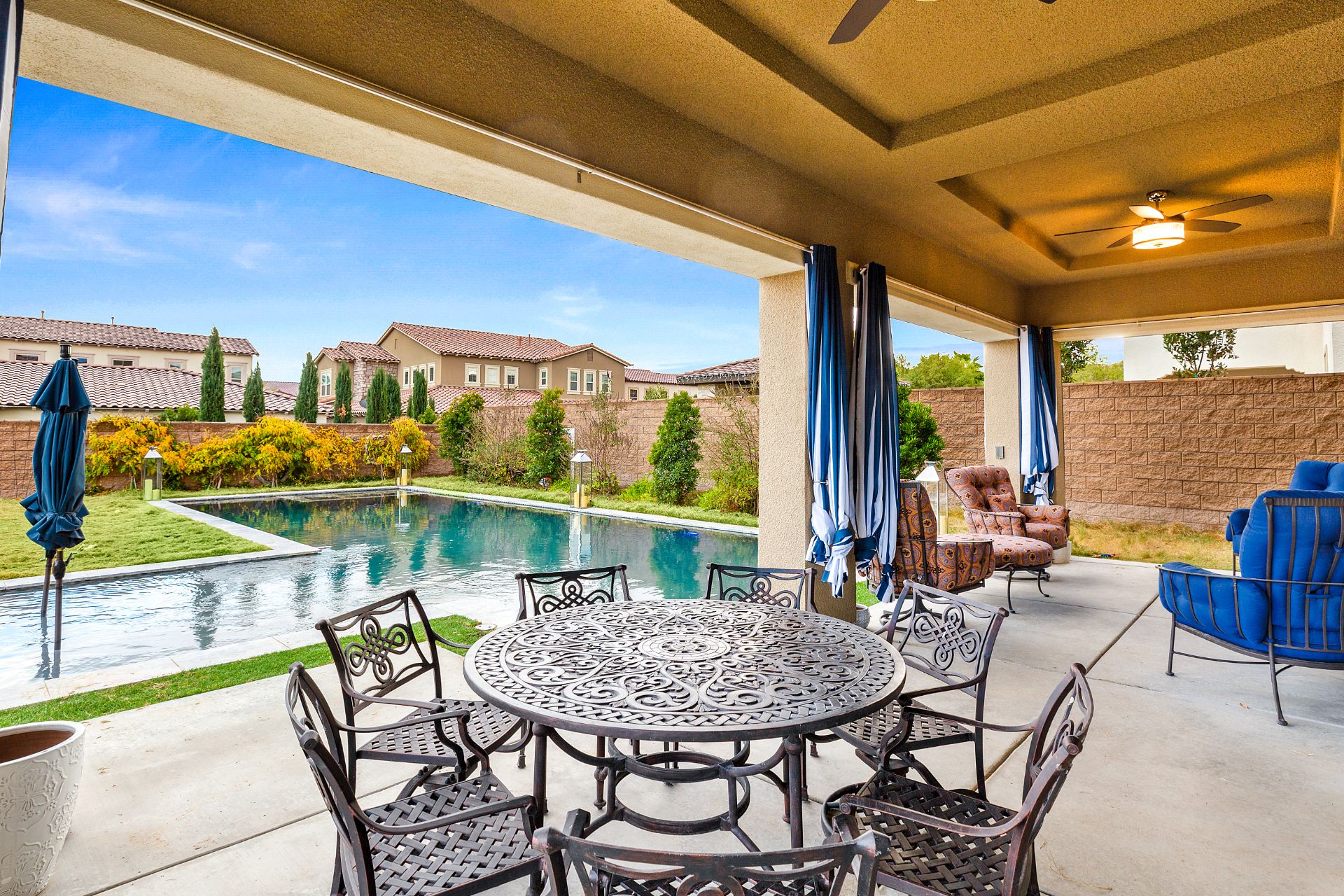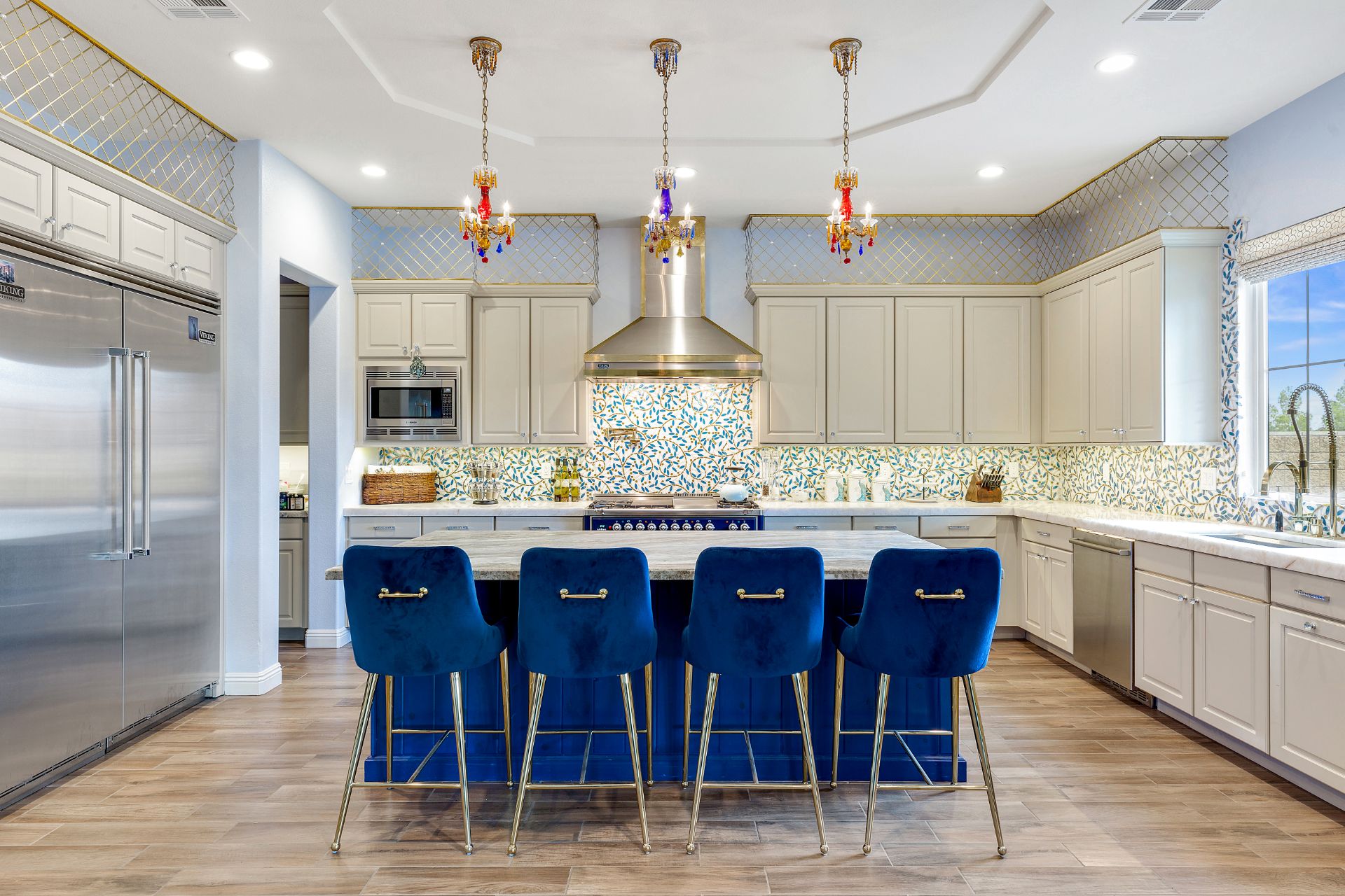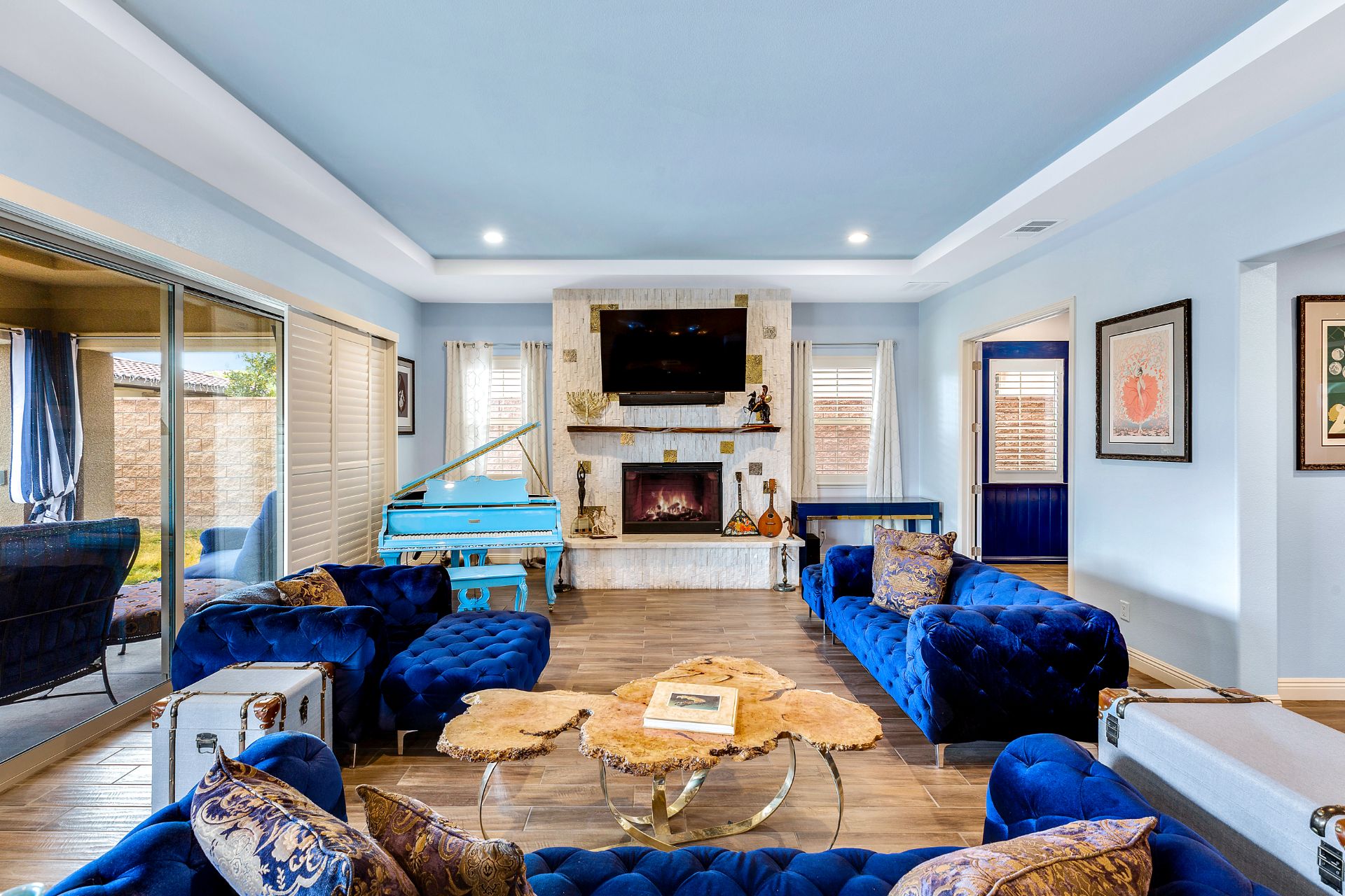 With an amazing large backyard with a functioning fireplace, a pool with a spa, gracious patio with a BBQ! Perfect for Las Vegas summers and entertaining. This home also features a designer kitchen with gourmet top-of-the-line appliances, with a pop of color, artistic light fixtures, and gorgeous tiling.