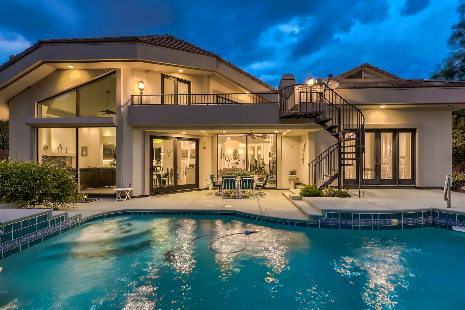 The resort like yard features a large waterfall, pool, spa, built in BBQ island, and spiral staircase leading to roof top deck for spectacular city views. A 3-car side loading garage with extra parking complete this outstanding floor plan. An exceptional lifestyle at an exceptional price.