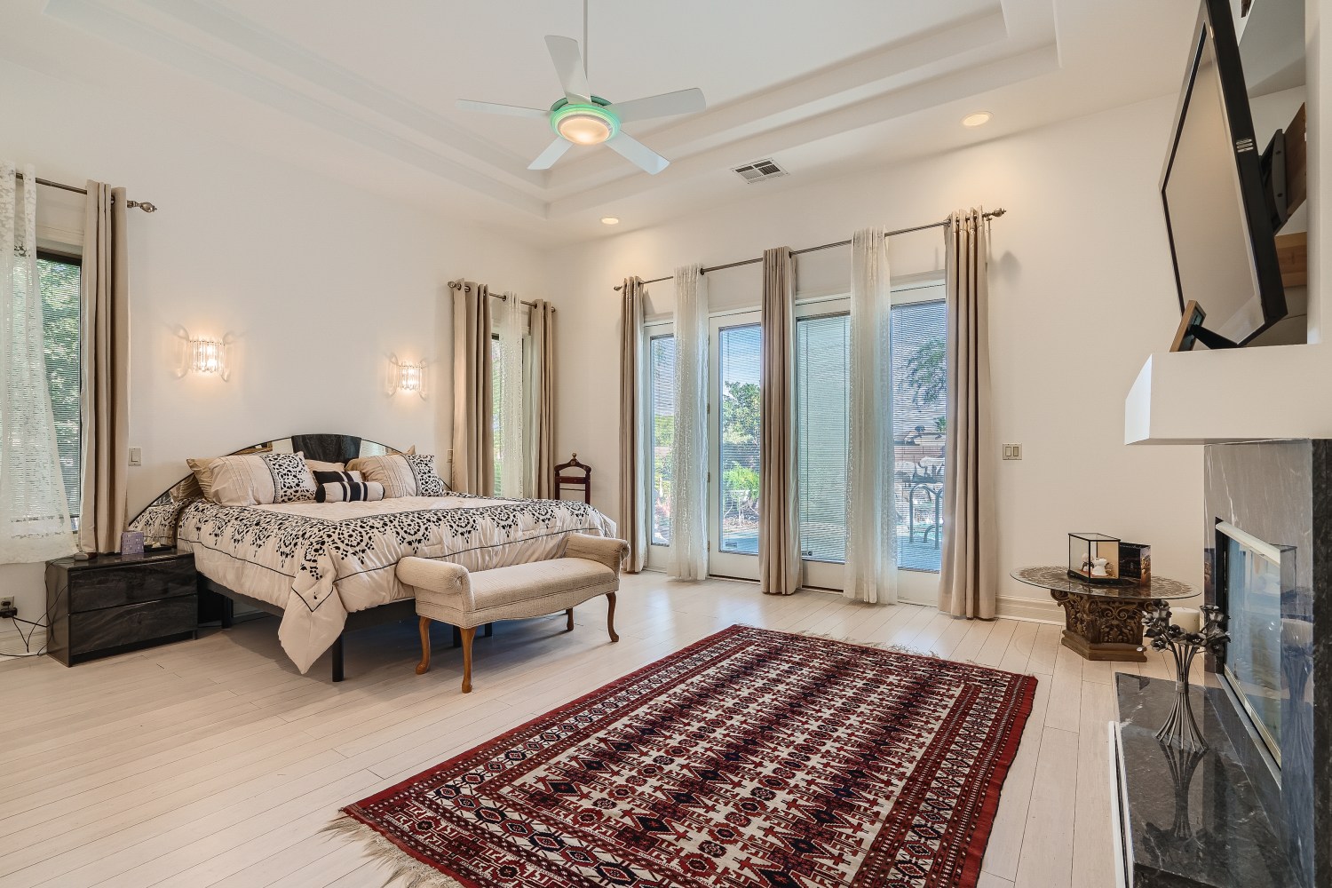 The spacious kitchen features granite counters, custom cabinets in sleek black, and gourmet stainless steel appliances. Built to the highest standards with R38 insulation, 2x6 construction, steel reinforced beams and columns. Other notable features include marble floors, Pella doors/windows, 3 fireplaces, and a flourishing garden with mature fruit and nut trees, herbs, and vegetables.