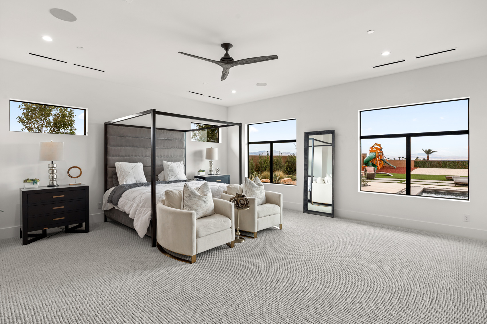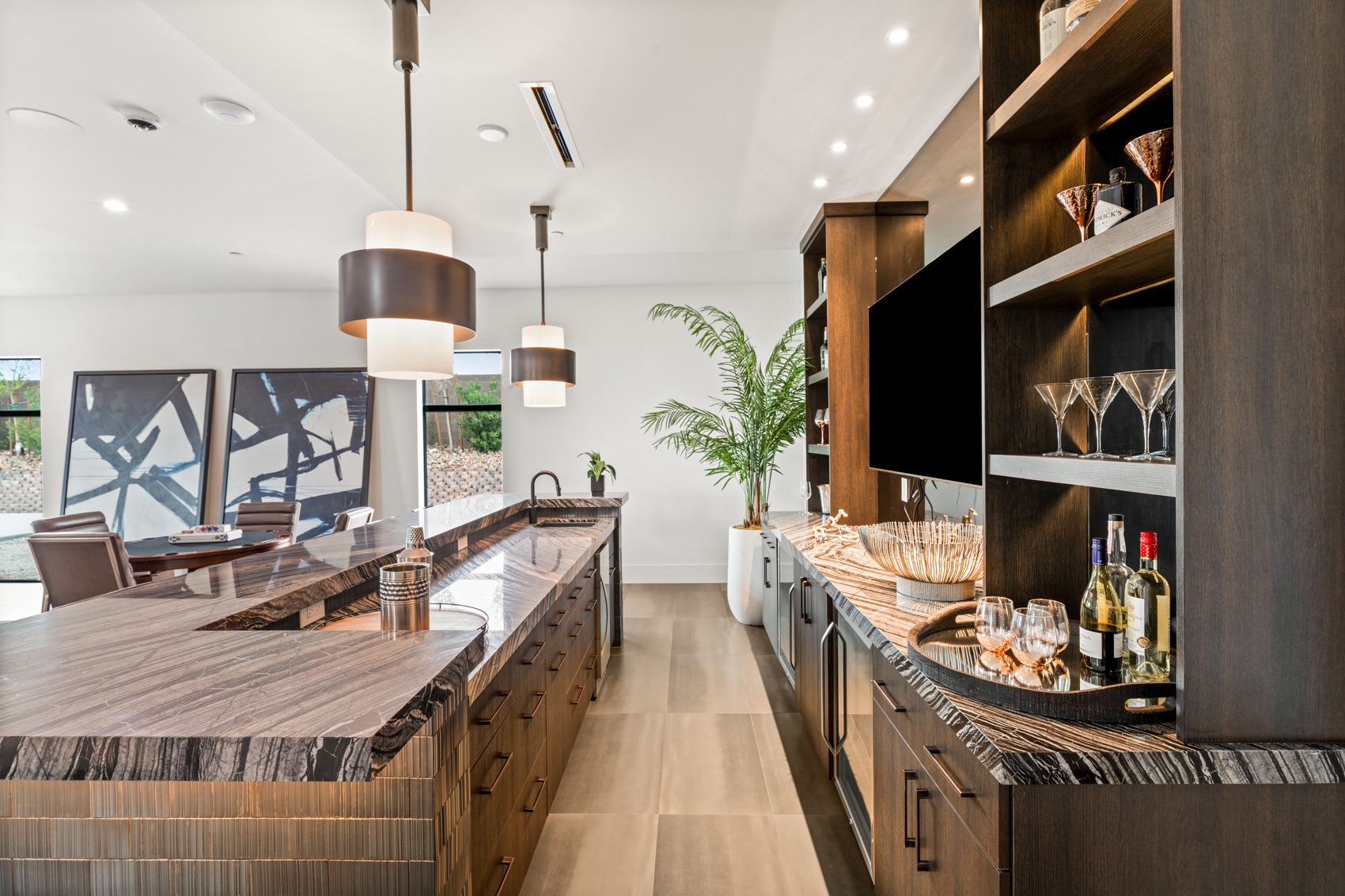 Welcome to an exquisite realm of luxury at 4180 North Jensen Street. This exceptional modern masterpiece unveils a harmonious convergence of style and functionality, revealing 8 bedrooms and 9 bathrooms on a sprawling 0.97-acre canvas within the prestigious enclave of Estates at Lone Mountain.
