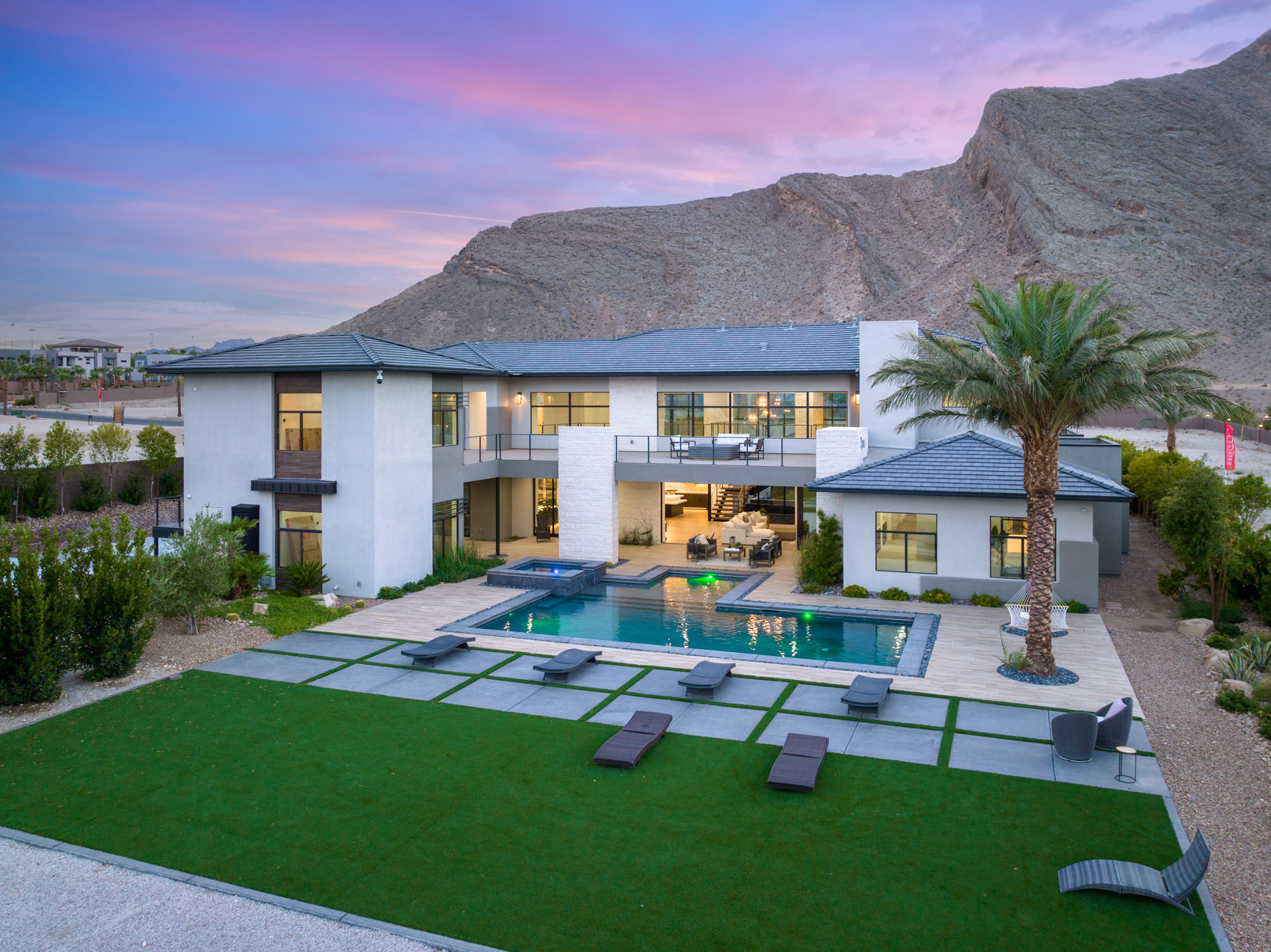 Catering to your passions, a 6-car garage stands ready, extending beyond mere storage to house your cherished collection with care. Adjacent, the RV hookup speaks to your adventurous spirit, making every journey an extension of your desires. Outside, a tapestry of leisure unfurls. A saltwater pool beckons, inviting you to indulge in its refreshing embrace, while the accompanying spa promises rejuvenation under the open sky. An outdoor shower adds a touch of lavish convenience, a harmonious blending of indulgence and practicality. The detached casita, a versatile space of your own, holds endless potentialāa sanctuary, a studio, a workspaceāthe canvas is yours to define. This residence isn't just about the present; it's about enhancing your daily experience. Seamlessly integrated home automation ensures that your environment effortlessly aligns with your needs, while security cameras stand vigilant, ensuring your peace of mind. A water filtration system adds a layer of comfort, offering the luxury of pure, pristine water. Step into nature's embrace with a flourishing fruit orchard, a testament to the harmonious relationship between design and the environment. Proximity to Lone Mountain and nearby parks further enriches your connection to the natural world, offering endless opportunities for outdoor adventures and exploration. As the sun gracefully sets over the tranquil landscape, your home transforms into a haven of indoor-outdoor living. Gather by the poolside, basking in the hues of the twilight, or retreat within where technology and design converge to create an atmosphere of effortless sophistication. This listing transcends the notion of mere propertyāit's a rare and fleeting opportunity to immerse yourself in a lifestyle that harmonizes innovation, elegance, and the magnetic allure of Lone Mountain. It's a chance to embrace the finer things in life, to weave your story into the fabric of this modern masterpiece, to cultivate your desires and aspirations in a space that is more than a dwellingāit's a canvas for your extraordinary life.