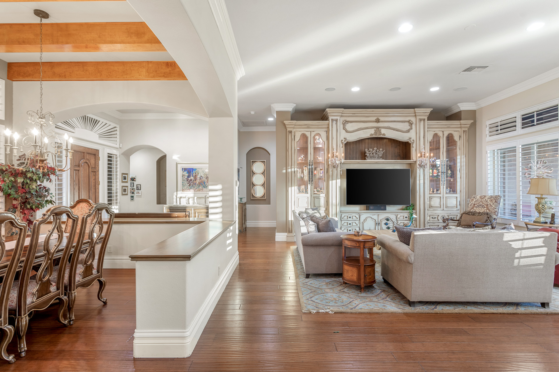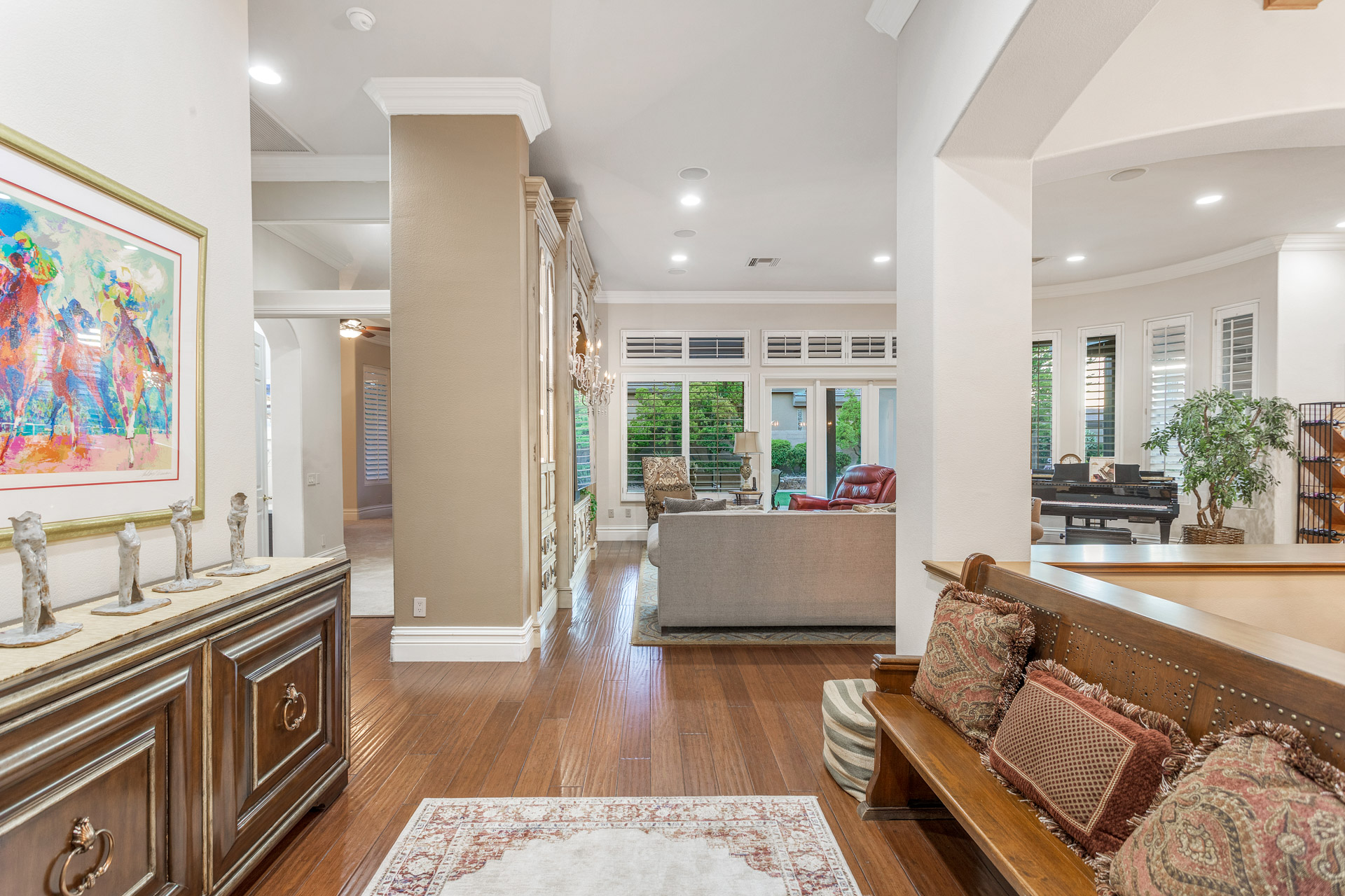 With over 3,800 square feet of living space, every inch of this home has recently been remodeled, with designer features throughout. With vaulted ceilings and an open floorplan, this airy home is incredibly invitingāperfect for entertaining guests! This spectacular home features brand-new bamboo floors, wooden beams, custom built-ins, and new windows. The exquisite French country kitchen features custom cabinetry, a white granite kitchen island, and top-tier appliances. This home has five bedrooms and five bathrooms. The primary suite features a luxurious ensuite with a walk-in shower, a garden tub, and dual vanities.