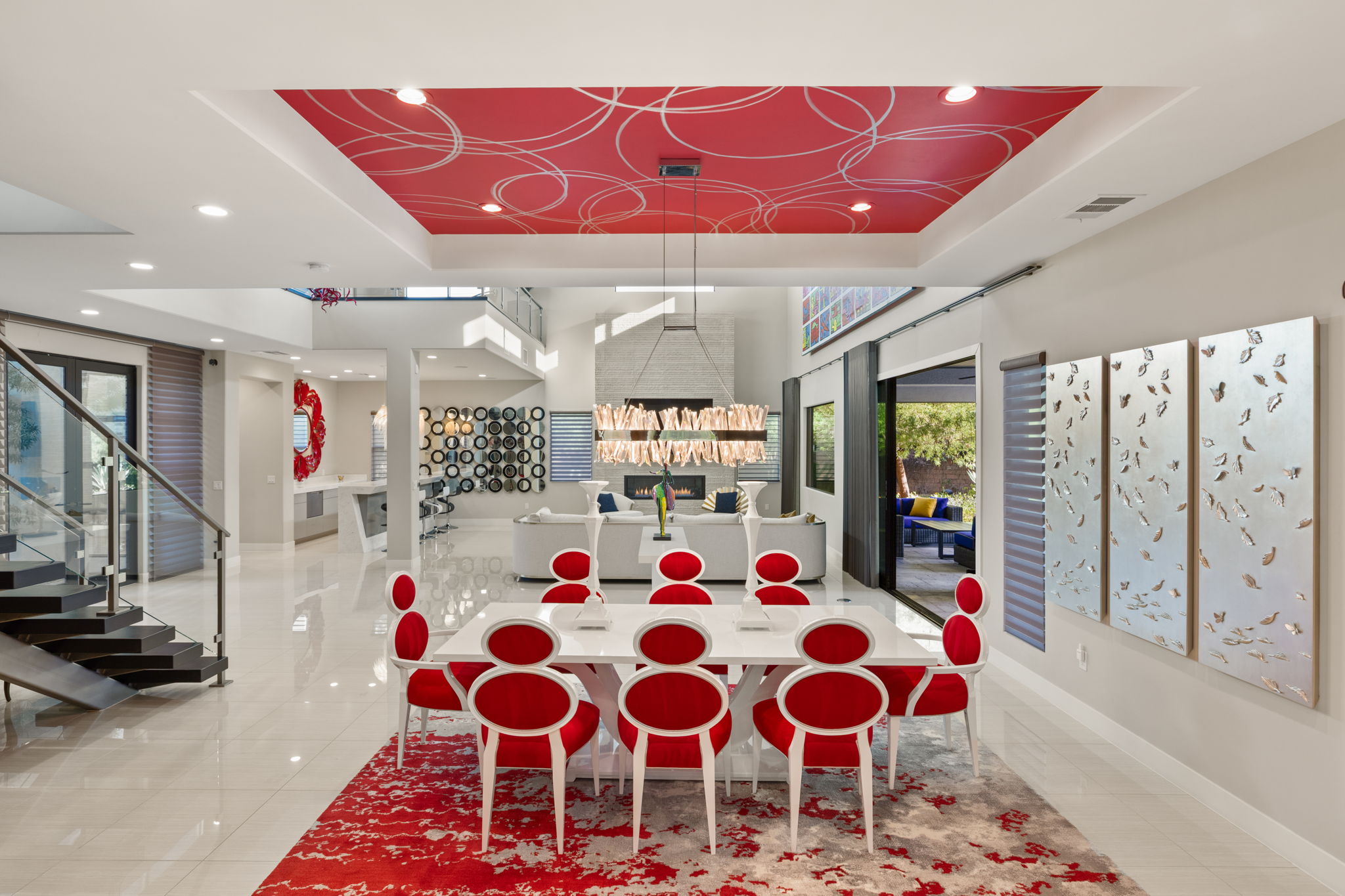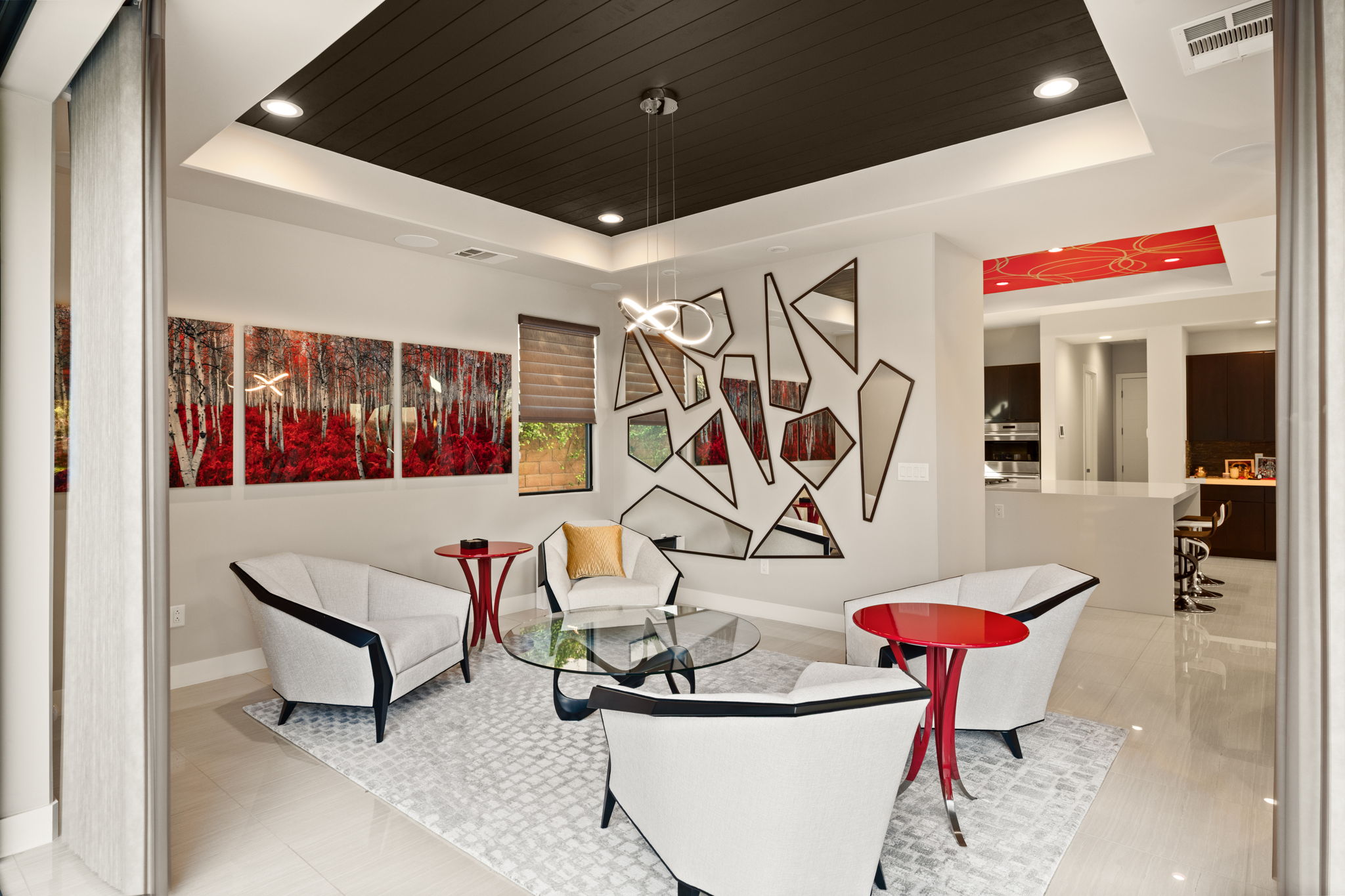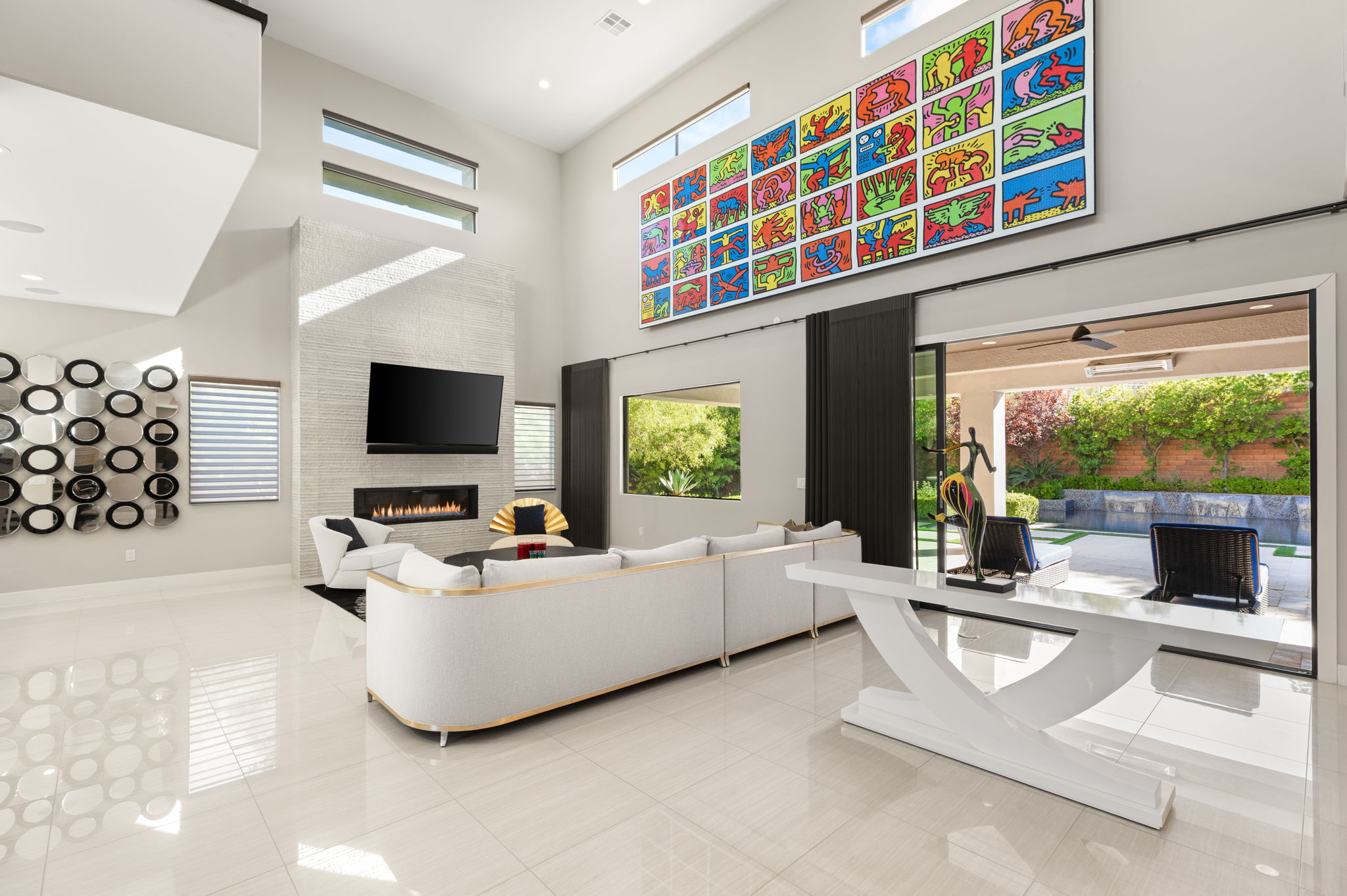 From the moment you arrive, architectural drama greets you. Clean modern lines are softened by warm materials, while expansive glass invites natural light to dance across every surface. The homeās orientation and abundance of windows ensure that light shifts artfully throughout the day, enhancing the open, airy feel of the interiors. At the heart of the home, the expansive great room is both a statement space and a sanctuary. Soaring ceilings create a sense of grandeur, while a sleek sitting area invites intimate conversation.