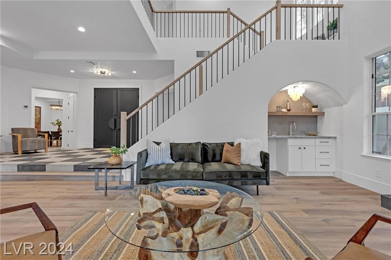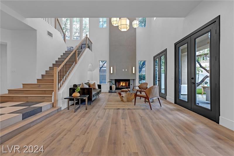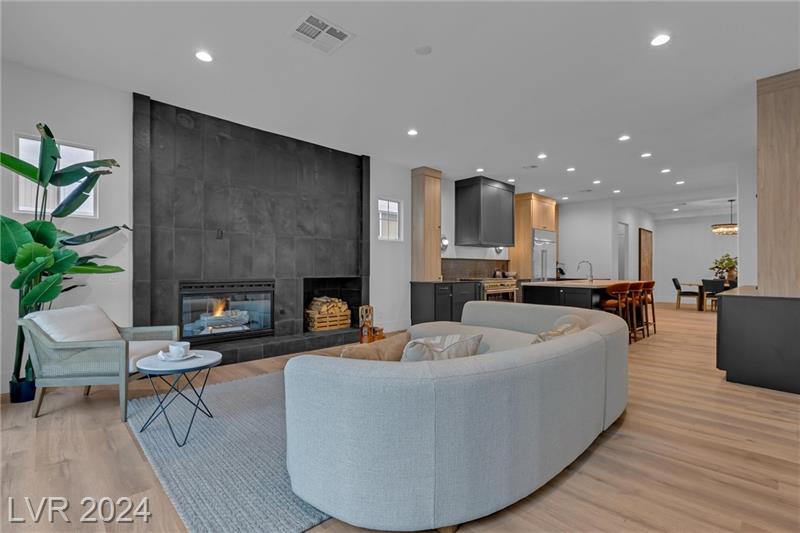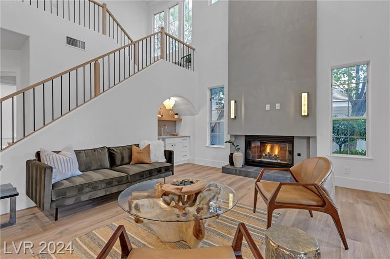 Discover refined living in the coveted Eagle Rock Community of Summerlin. This meticulously redesigned home harmonizes style and comfort, featuring 5 spacious bedrooms and 4 baths - ideal for both relaxation and functionality. Nearly every detail of this home has been thoughtfully updated including the addition of an added loft which brings the new total square footage to 4,362. The living room showcases a striking ceiling-height gas fireplace, offering an inviting and luxurious ambiance.