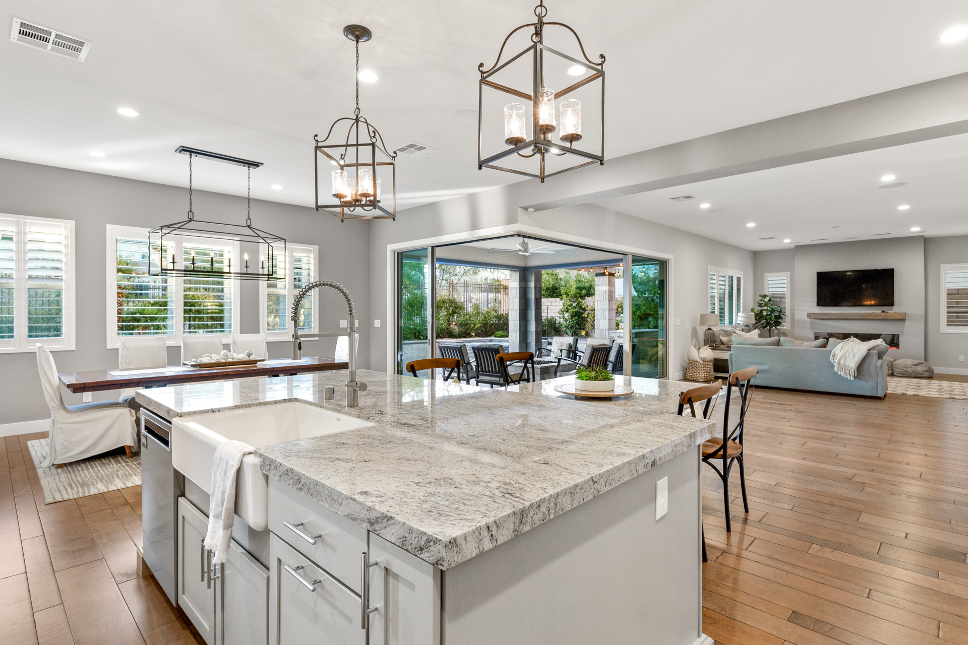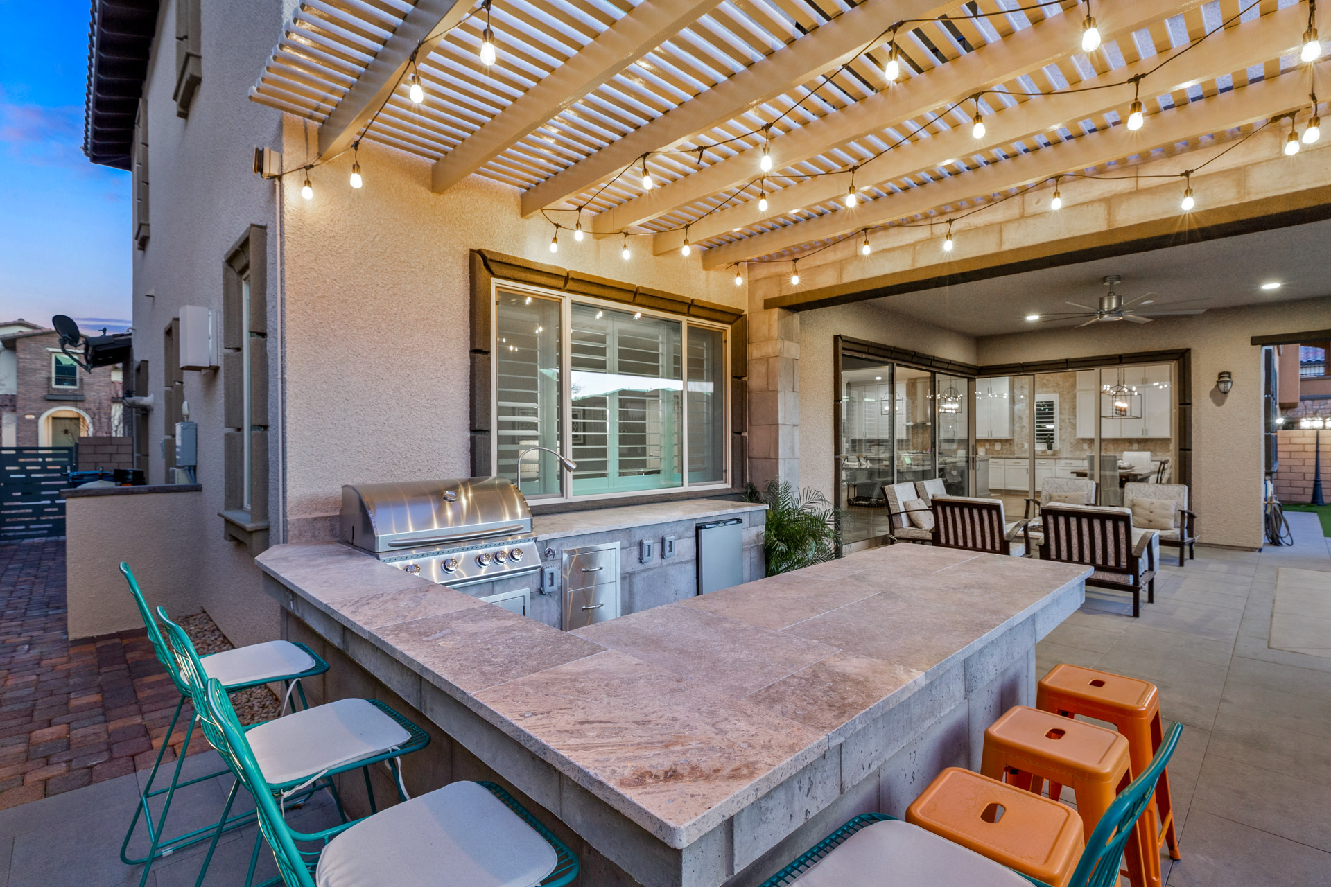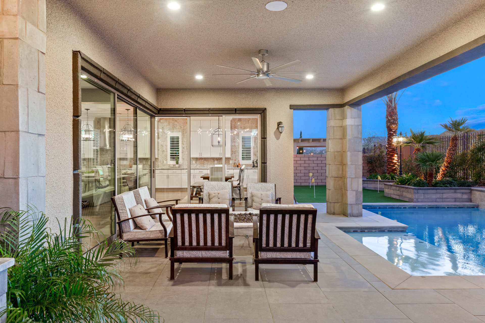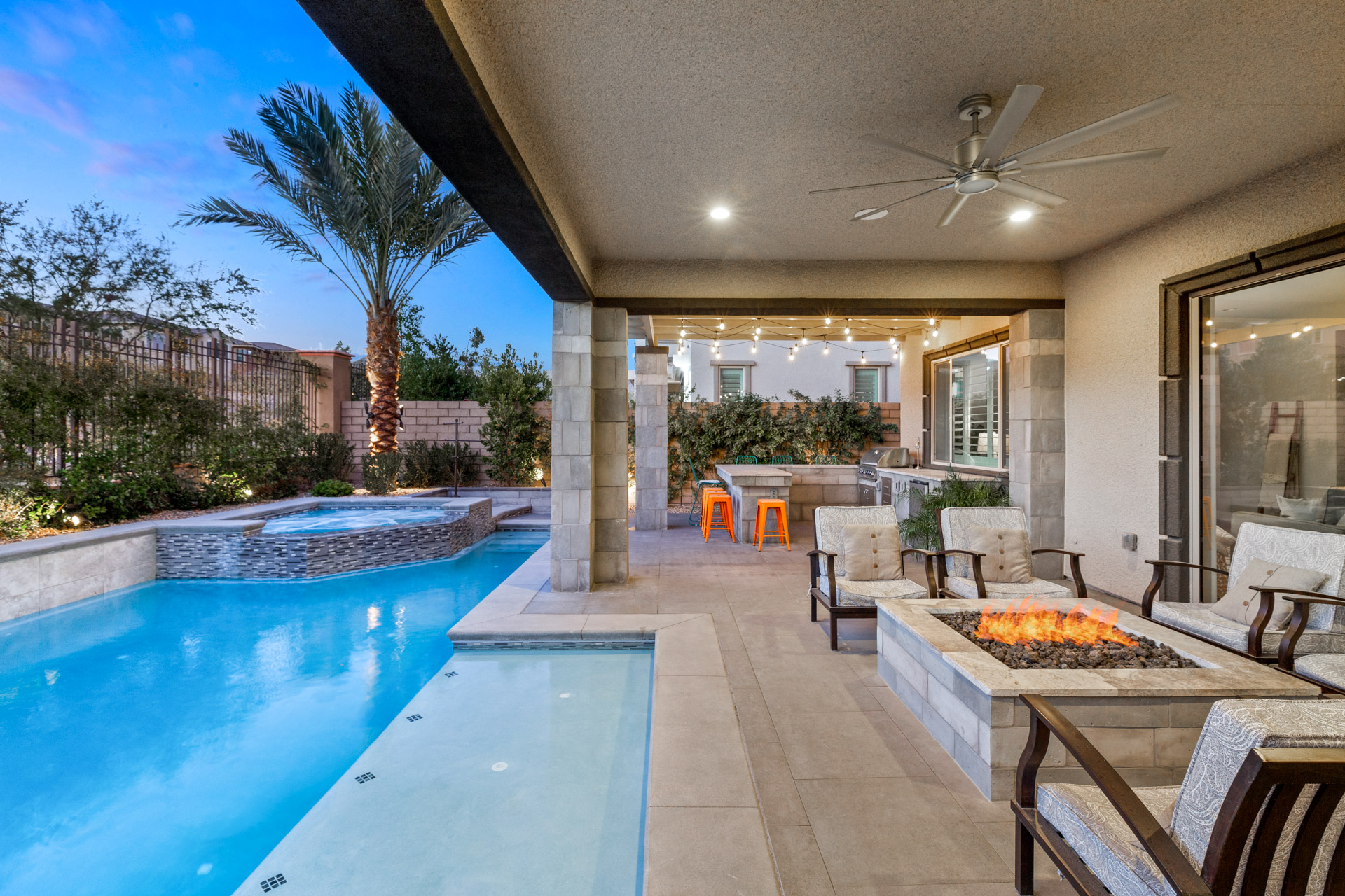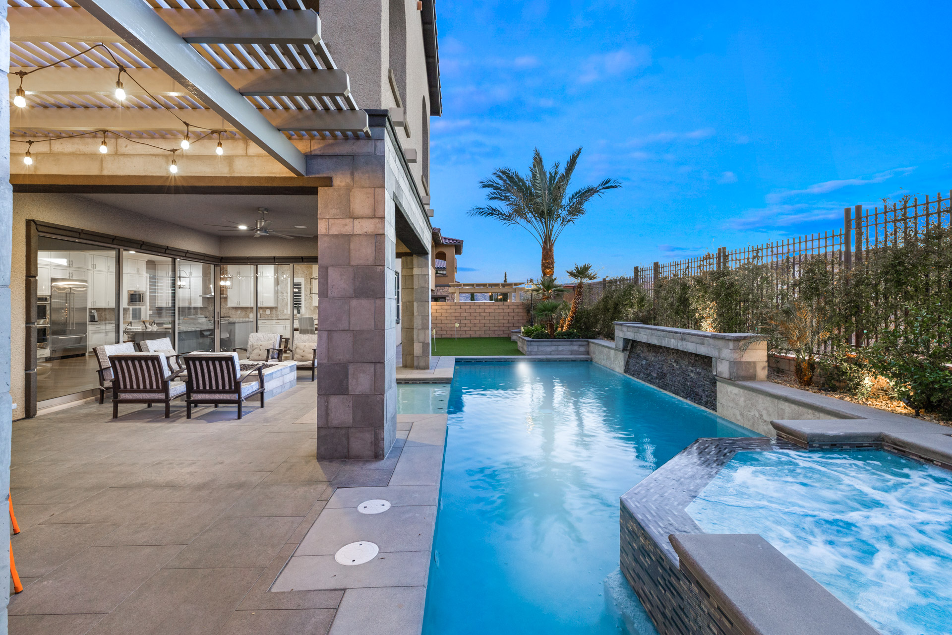 This delightfully charming beauty built by Toll Brothers features everything you need to create the ultimate entertaining experienceā¦Mountain Views, sparkling pool, cozy spa, putting greens, built in barbecue and towering palm trees.