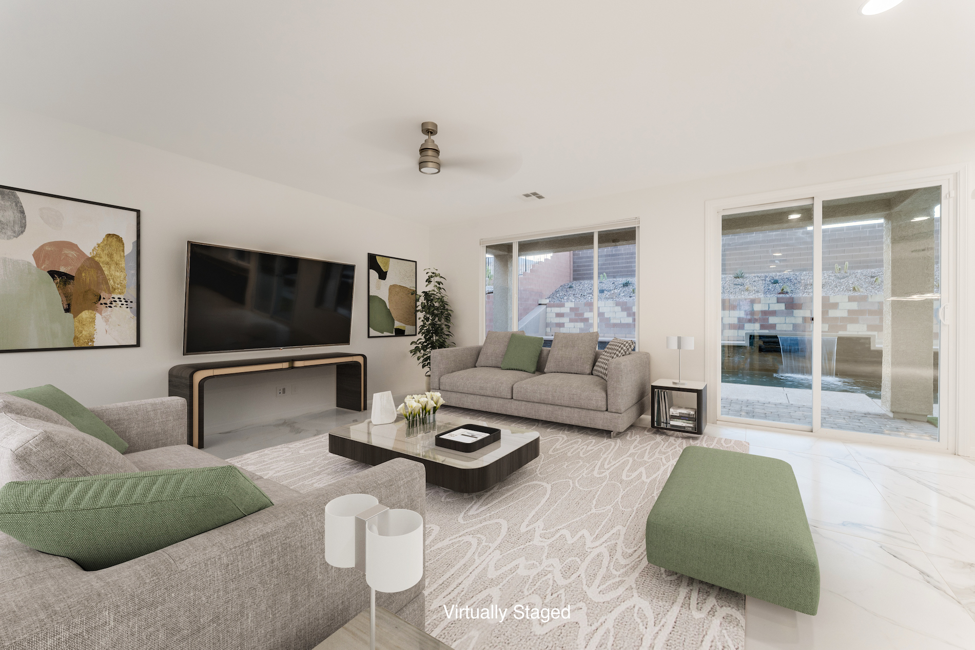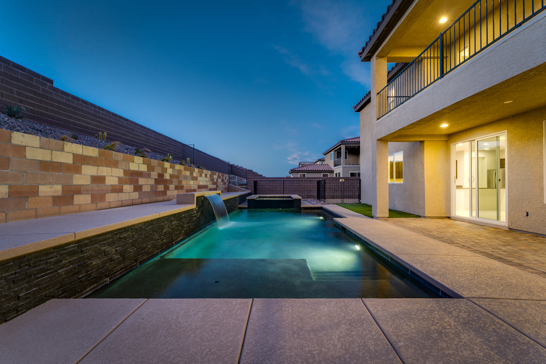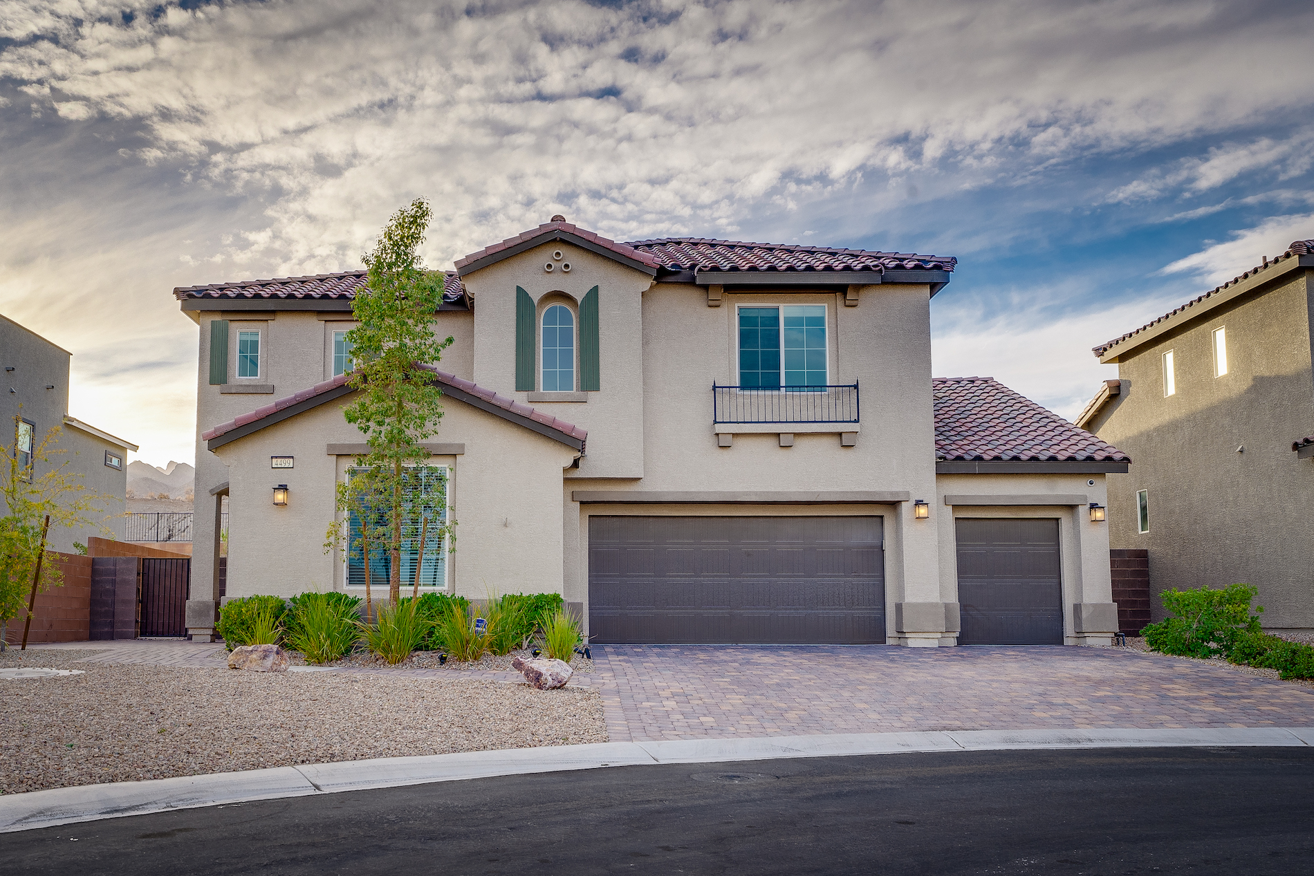 Sparkling pool and spa to soak up the beautiful weather, a bright and open floorplan - one of the most popular in the subdivision, with 4 bedrooms, a large loft with movie projector, a courtyard, and a spacious primary with two walk-in closets, luxurious bath, and a balcony to enjoy the serenity of the Spring Mountain Range. You can have all of this in one of the most peaceful locations, still close to all the amenities you need for convenience. 3rd garage for storage or your outdoor toys, fresh paint, and sparkling clean. Don't miss this opportunity!