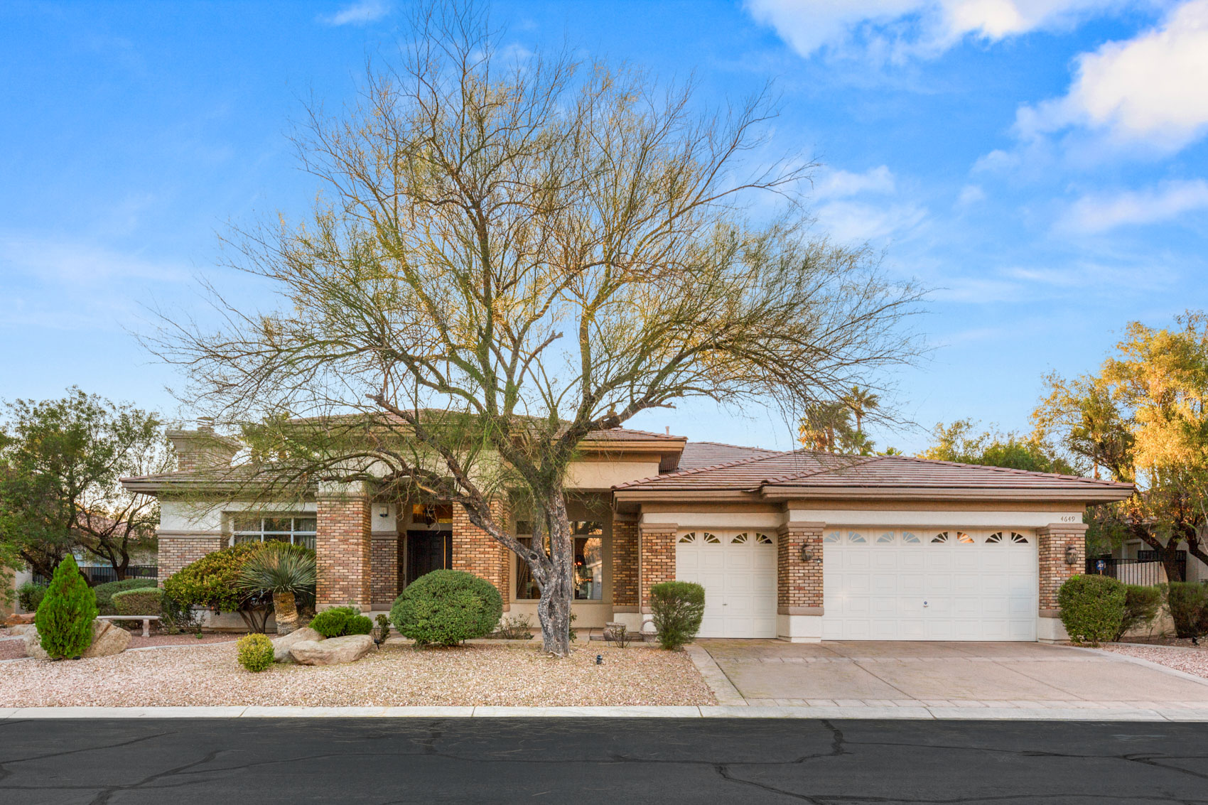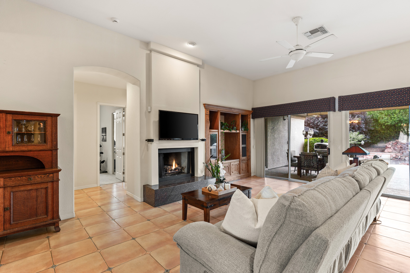 Step into luxury living! This spacious gated single-story 4 bedroom home spans over 3,300sf with a 3 car garage. Elegant double doors, a large formal living and dining room. The inviting great room has a fireplace and connects to the functional gourmet kitchen. The kitchen has granite counters, island with casual dining, breakfast nook, and ample storage. The expansive owner's suite, separate from the other bedrooms, includes a sitting area, a two-sided fireplace, and access to the lush backyard.