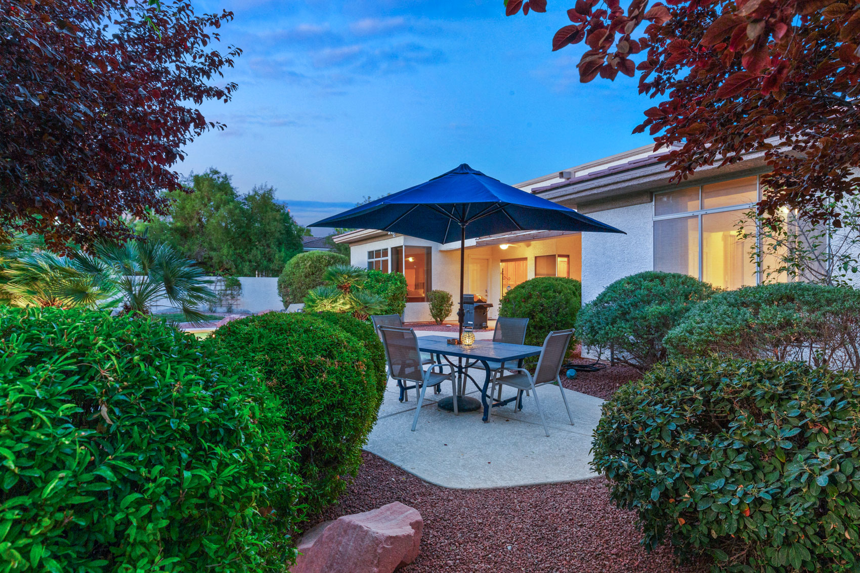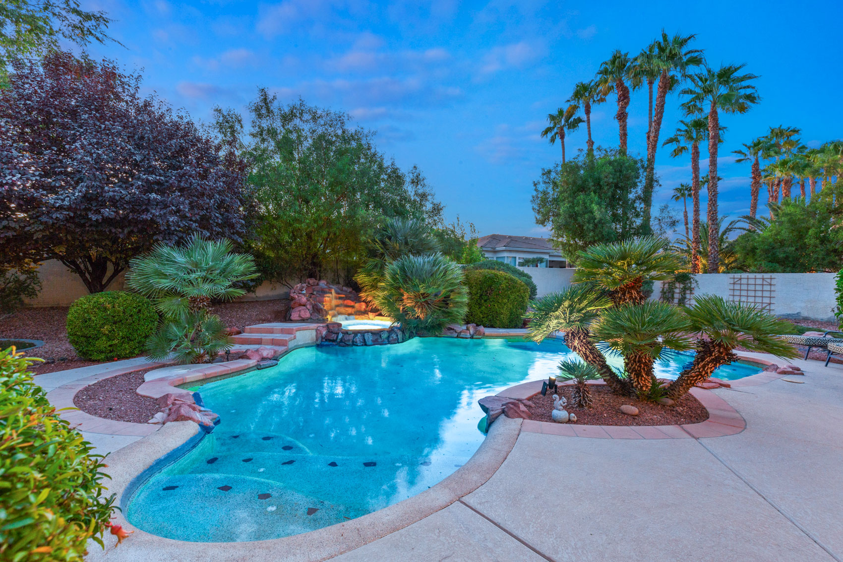 The generous primary bathroom has dual sides, vanity, jetted tub and fireplace, large double-sided shower, and an incredible walk-in closet. The backyard is a private oasis surrounded by mature landscaping, features a pool, spa, waterfall and covered patio. Architectural details such as arched doorways, a bricked exterior, and extended ceiling height add character to the home. Proximity to schools, shopping, dining options, and parks. It's rare for a home to become available in this community!
