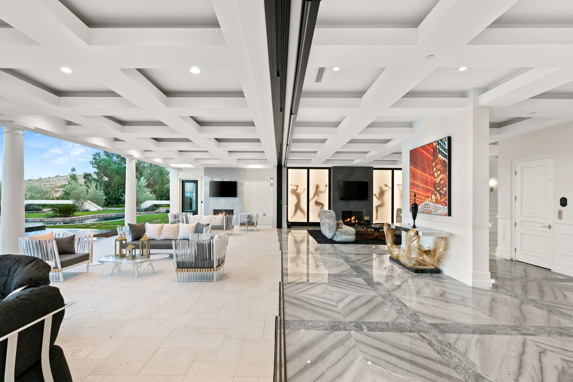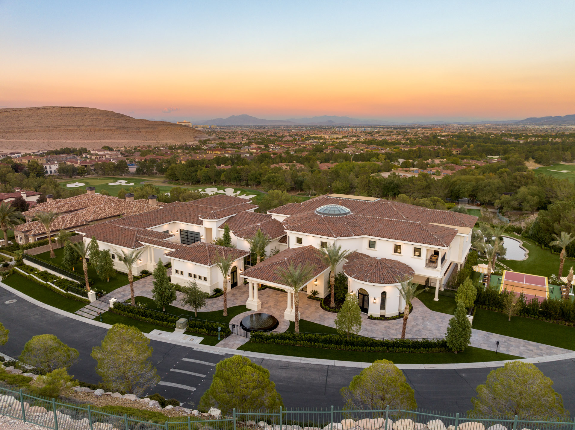 Step across the threshold and find yourself transported into a domain of unparalleled grandeur and refinement. Spanning an astounding 18,210 square feet, this estate is a sanctuary of extravagance, meticulously designed to satisfy the most discerning tastes. Eight expansive bedrooms each with stunning ensuite bathrooms, totaling an impressive thirteen bathrooms for an abundance of space for both family and esteemed guests. Beyond the incredible bedroom suites, the property boasts a sprawling six-car garage with an expansive motor court, ensuring a distinguished abode for your esteemed automobile collection. An elevator, a casita, a guesthouse, and a porte cochere further enhance the convenience and opulence of this singular property. Within these walls, a plethora of entertainment options awaits. The dining room features a wine room, and the lower-level area complete with theatre, karaoke room, bar, salon, and gym/spa create havens for relaxation, celebration, and leisure. The outdoor oasis centers around a resort-style pool adorned with extended water features, weaving through the landscape like a celestial river. A spa and water slide contribute to the ambiance of a perpetual vacation. Seven strategically placed fireplaces cast a warm glow, crafting unforgettable evenings beneath the celestial canopy. For the active connoisseur, an outdoor pickleball court and fully-equipped gym beckon. When serenity is sought, a day spa awaits. No detail has been overlooked in creating a comprehensive and unparalleled living experience. The heart of the residence unveils the epitome of luxury living. An office, a movie theater, and a poker room stand among the lavish amenities awaiting your indulgence. Natural light cascades through a skylight at the grand entry, illuminating the exquisite designer touches throughout. Coffered ceilings add an air of sophistication, while multiple balconies present unobstructed vistas of the adjacent golf course and the captivating Southern Highlands landscape. The architectural style seamlessly marries Santa Barbara elegance with modern sophistication, blending timeless design elements with cutting-edge features. Pocket sliding doors facilitate a seamless transition between indoor and outdoor spaces. The central focus of the home, the opulent kitchen, complete with a separate prep kitchen, is a testament to culinary indulgence. A private beauty salon caters to those who revel in pampering themselves. 48 Augusta Canyon Way transcends mere residency; it is a lifestyle, a statement, and a homage to architectural innovation and the relentless pursuit of excellence. This residence is a masterpiece, presenting its proprietors with a canvas upon which to paint their own narrative, memories, and experiences. Situated in on the golf course in Southern Highlands Golf Club, a masterfully planned community showcasing the splendor and luxury of Southern Nevada, this enclave offers a harmonious blend of natural beauty and urban convenience. Lush parks, tranquil walking trails, and the esteemed community define this locale. Shopping, dining, and entertainment abound, courtesy of the nearby Southern Highlands Marketplace and the prestigious Raiders practice facility just moments away. For those seeking the allure of the Las Vegas Strip, a brief drive separates it from the sanctuary of your private retreat. Now, consider the unparalleled opportunity at hand. Residences like 48 Augusta Canyon Way seldom grace the market. It transcends conventions, redefines luxury, and beckons its new owner to revel in the splendor of the extraordinary. This is not just a residence; it is a legacy, a symbol of triumph, and a testament to the extraordinary. 48 Augusta Canyon Way stands as a proclamation of grandeur, a haven of luxury, and an embodiment of the extraordinary. This is your chance to step into a world where every desire is fulfilled, every whim is catered to, and every moment is imbued with unparalleled beauty and comfort. It is not merely a home; it is a lifestyle, a masterwork, and an iconic address destined to endure the passage of time.