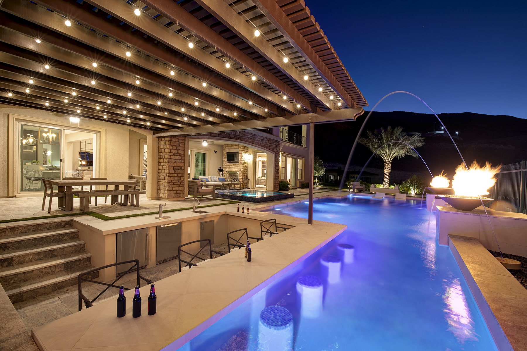 Custom Lighting, Downstairs Luxurious Master Suite/Bath/walk-in Closet, Spacious Guest Suites, Multi-Purpose/Media/Game Loft Area, Resort Style Backyard with Pool/Spa/Water & Fire Features/Party Lights/Mist System/Swim up Bar/Putting Green & Sand Traps/Artificial Turf/Green Garden/Lemon, Lime, Orange Fruit Trees, over 380 Plants/Bushes/Trees...