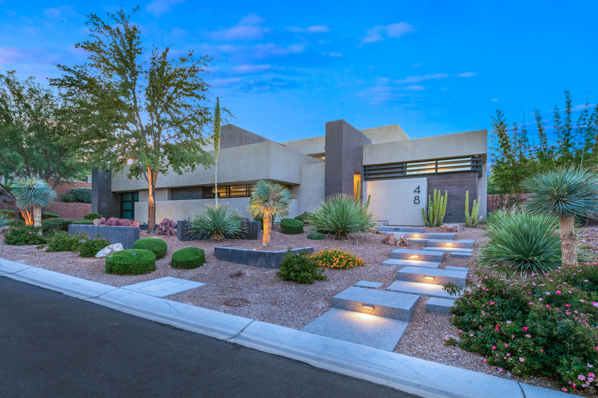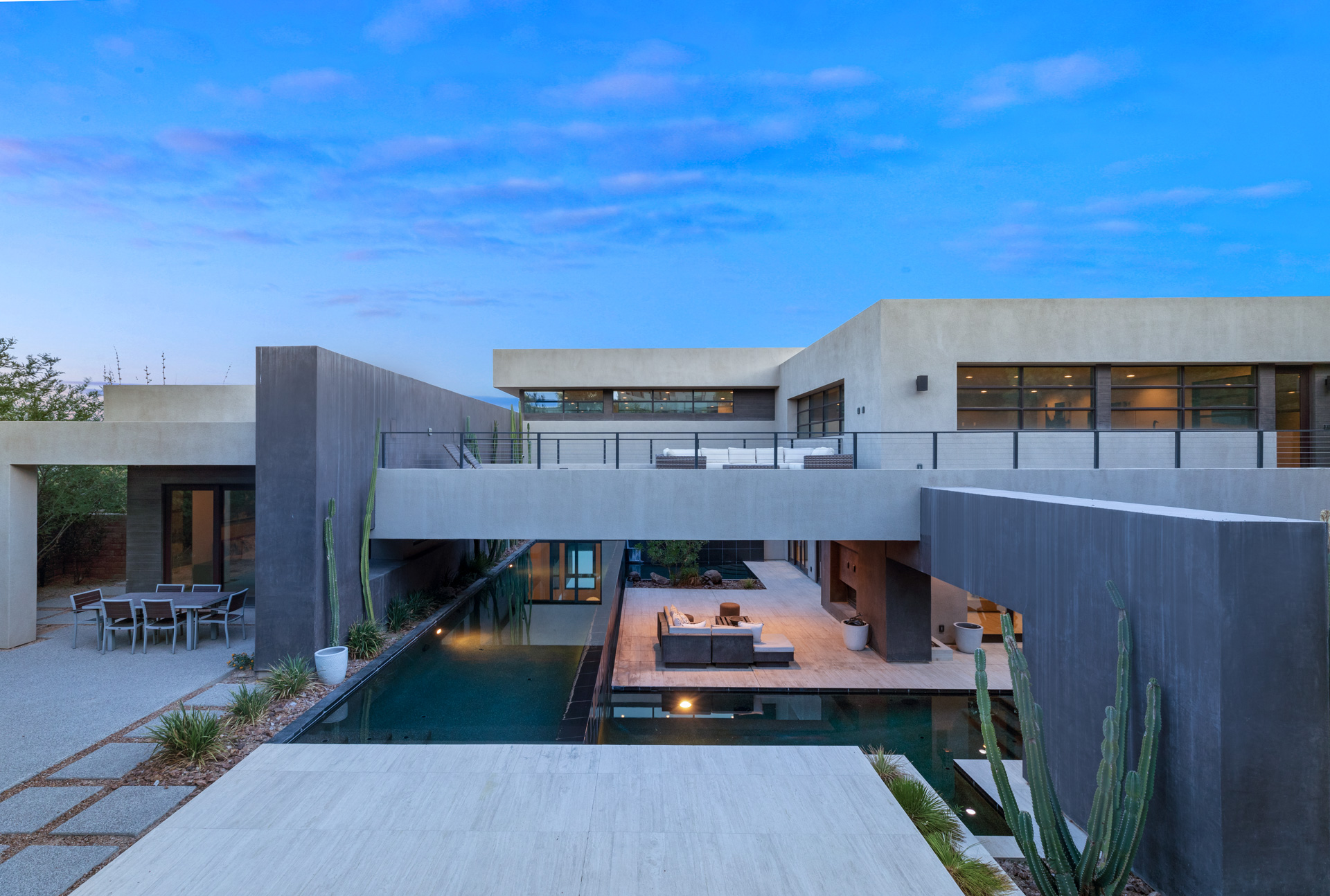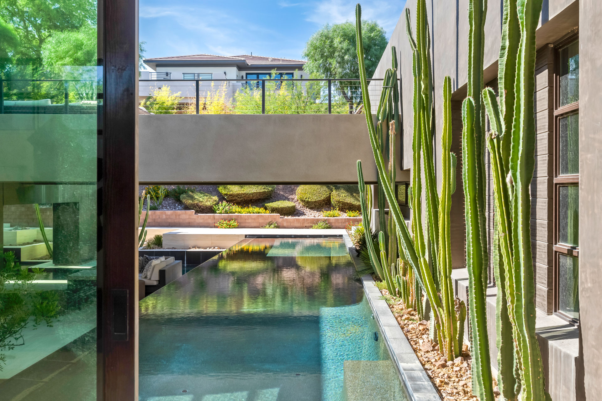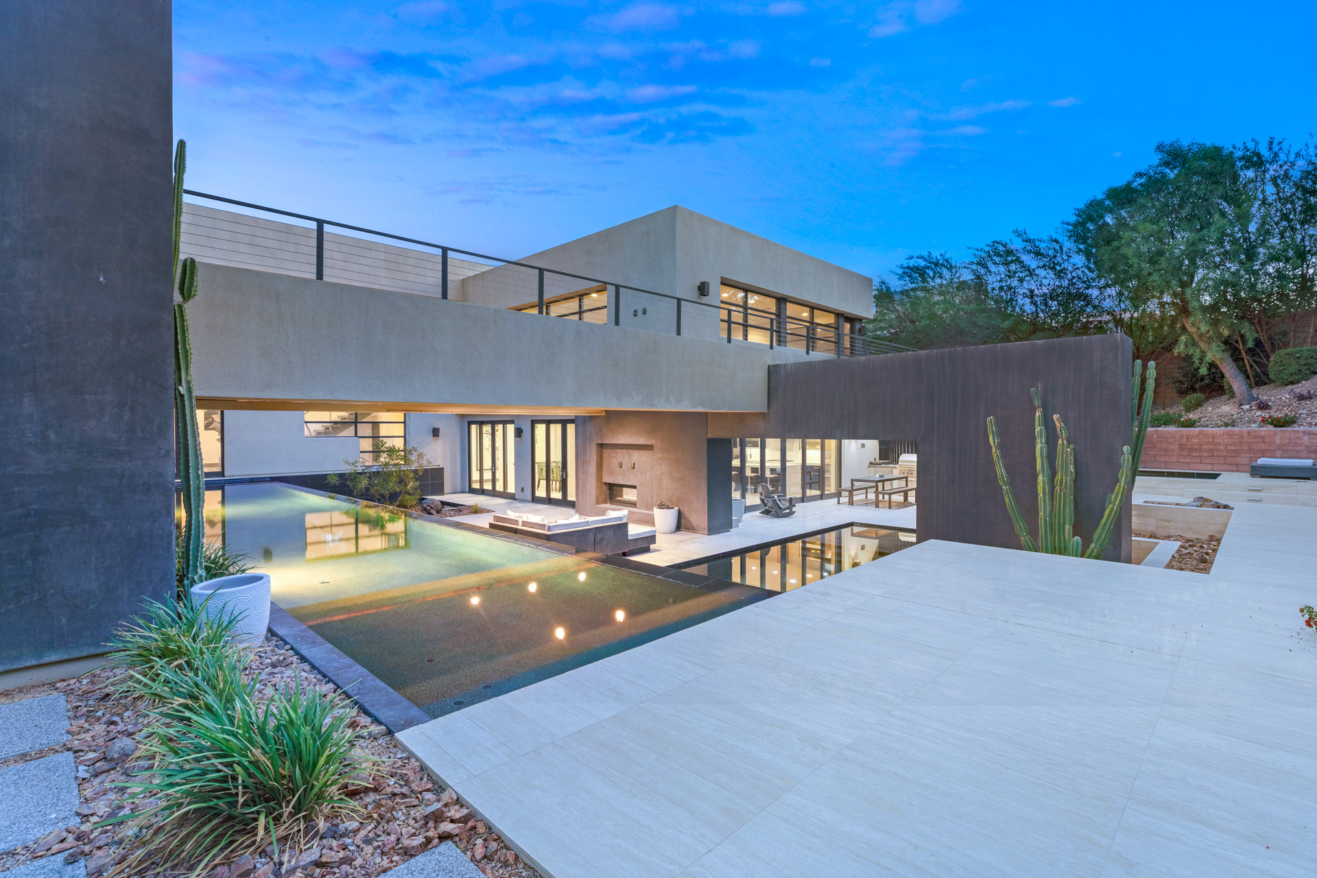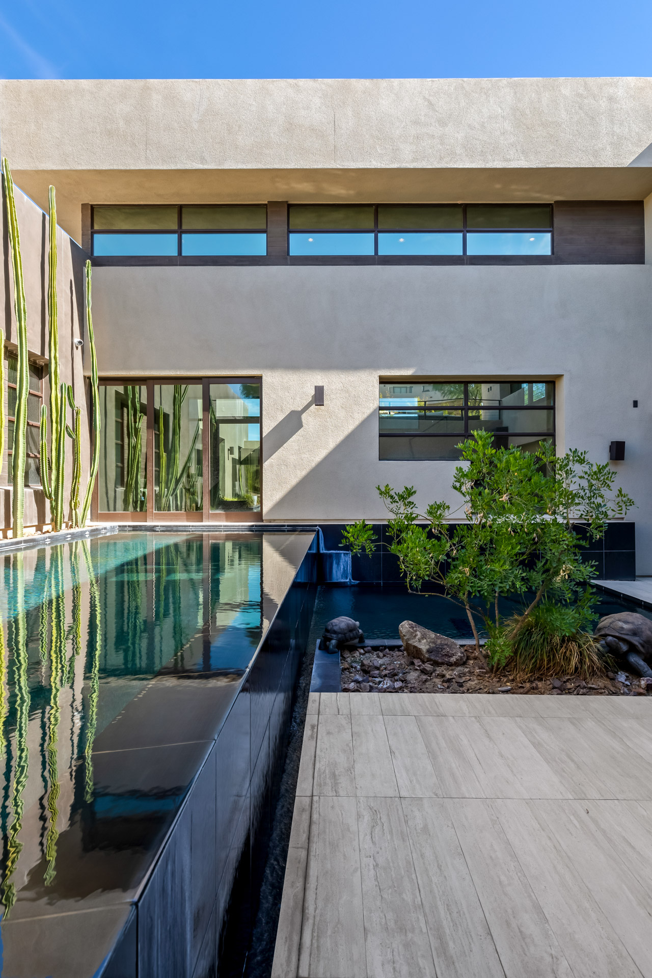 Situated on a private cul-de-sac in the double guard-gated premier community Falcon Ridge in The Ridges, this contemporary five-bedroom Blue Heron home leaves nothing to be desired. Open and modern with grand covered outdoor living areas, and private with immaculate desert-inspired landscaping, multiple courtyards, casita, firepits, reflection pools and water features, a second level balcony and roof-top deck, this home is the quintessential in Las Vegas living.