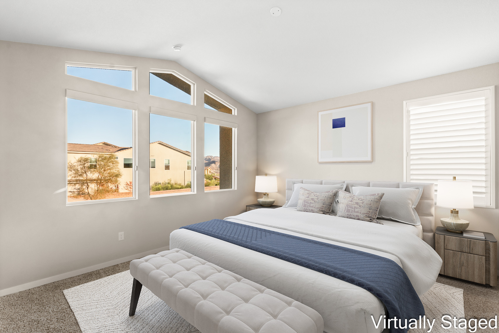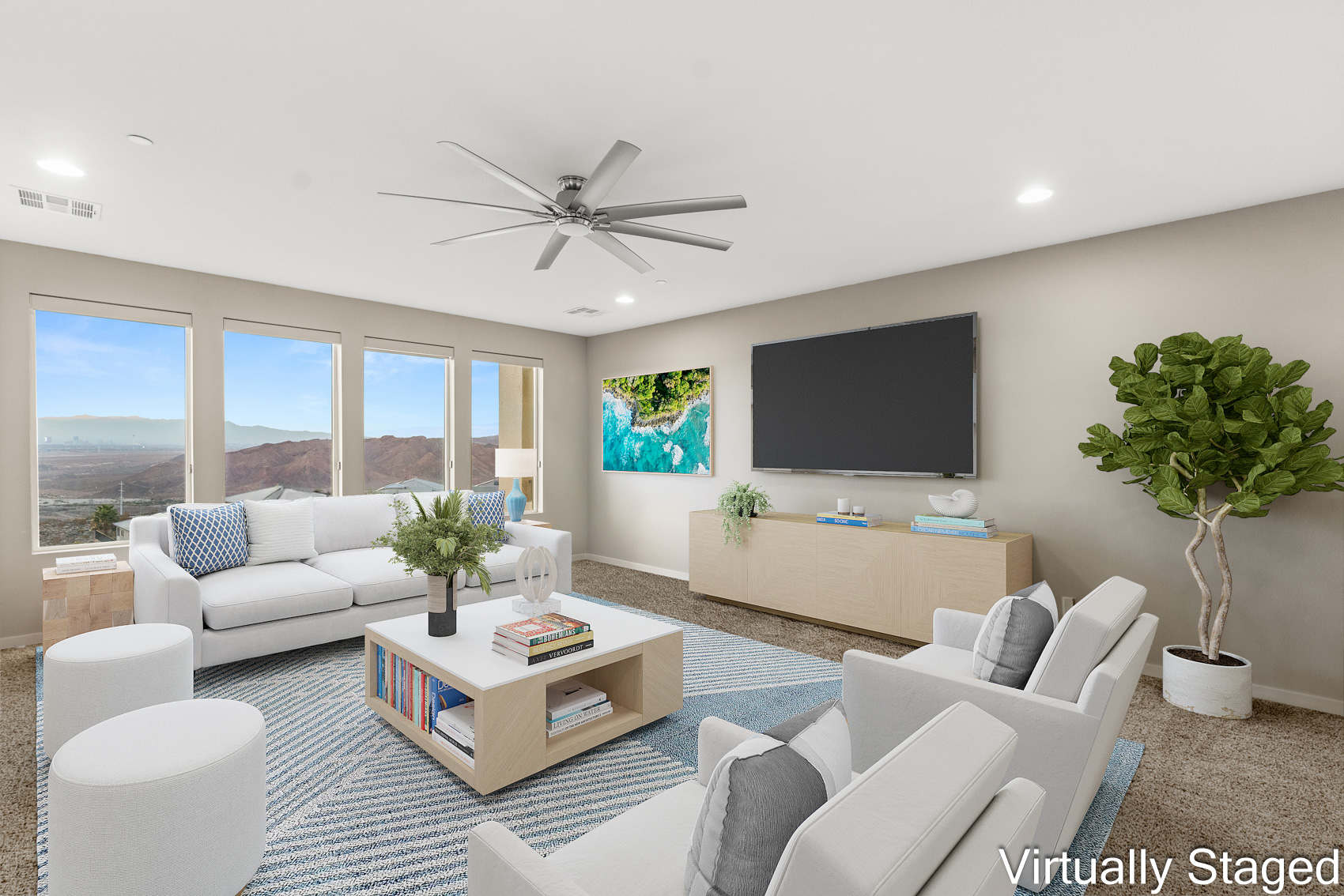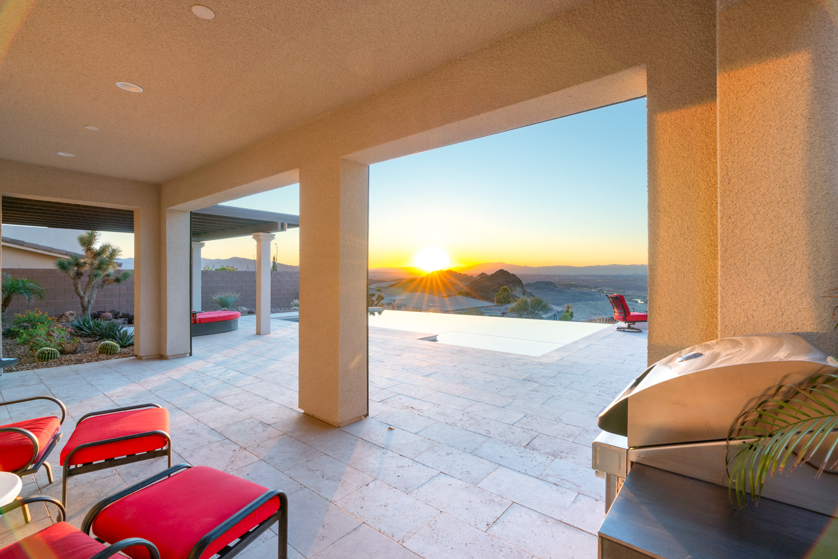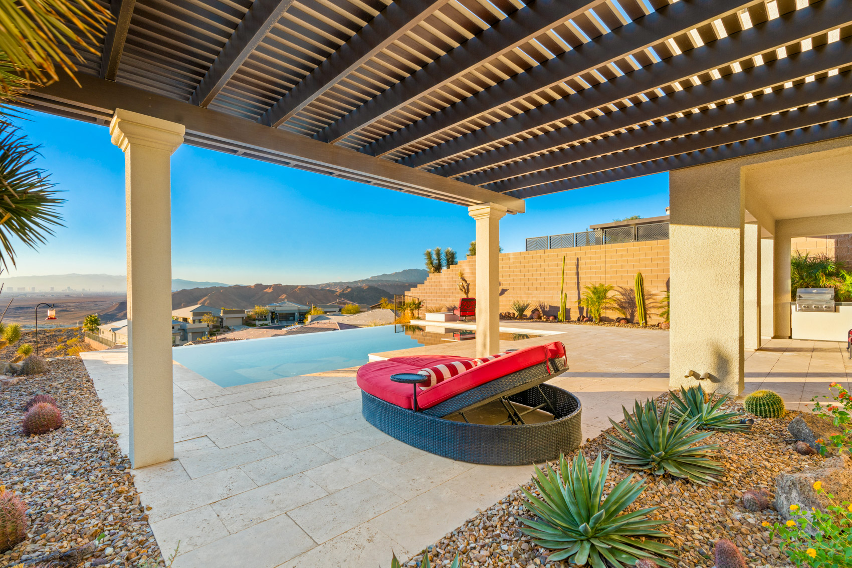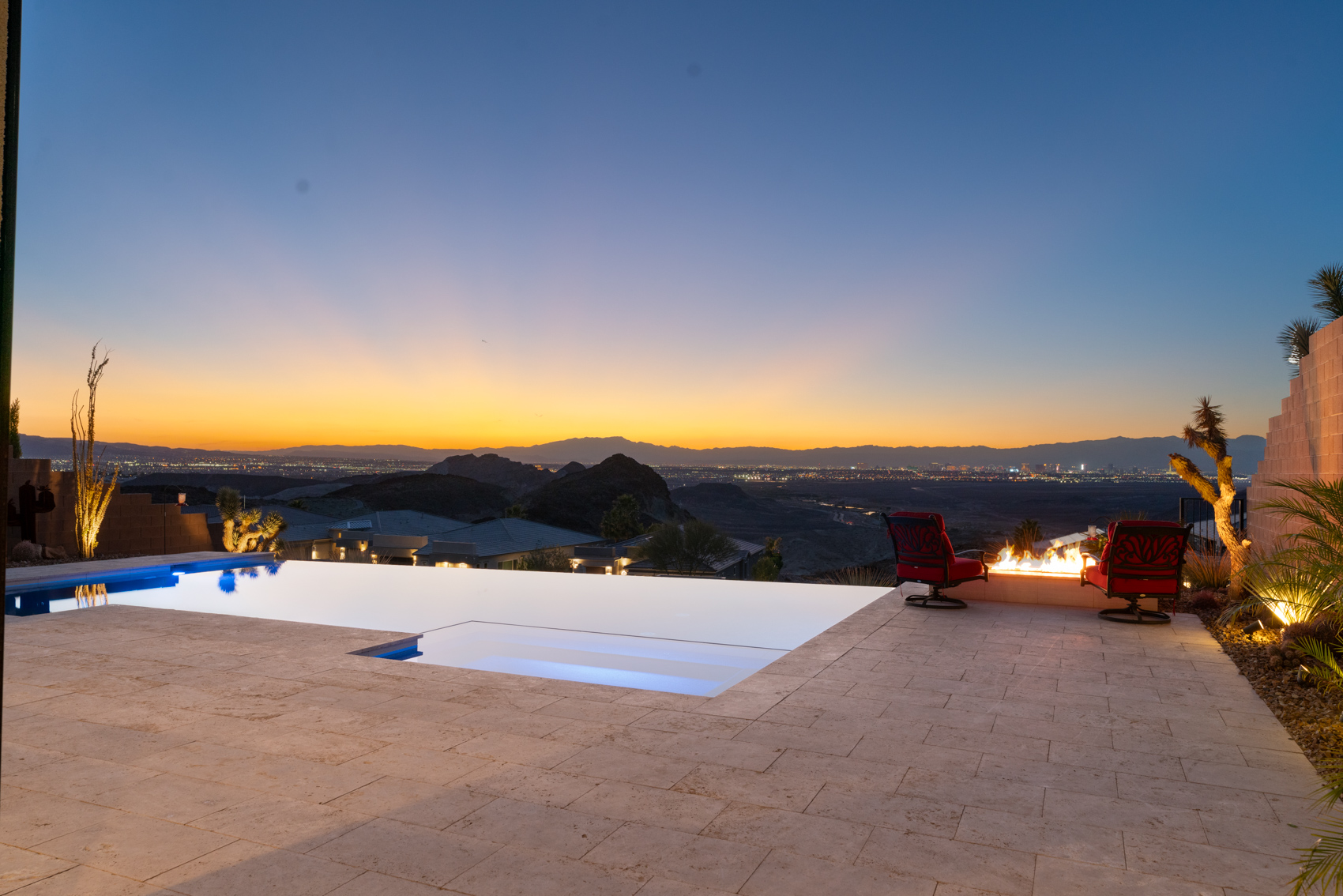 The great room is anchored by a stunning stone-accented fireplace, creating a warm and welcoming atmosphere with dramatic outside views. There is an ensuite bedroom downstairs, which offers guests their privacy and a separate powder room for convenience. Upon entertaining the second floor you are greeted with a loft area, a perfect spot for an office. There is also a bonus room with incredible views of the Strip, City and Mountains. This room offers so much flexibility. There are two additional ensuite bedrooms, thoughtfully designed ensuring privacy and comfort. The primary bedroom is a true sanctuary with an expansive private balcony to view the unobstructed views of the Strip and city lights and rugged mountain peaks. The primary bathroom offers double vanities, a dedicated make-up vanity, large shower and a bathtub. There is an abundance of natural light throughout. A second floor laundry room enhances efficiency with plenty of work area and a sink. The home also features "paid-off" solar panels! Outside, this property transforms into an entertainer's paradise. The backyard has the most stunning and dramatic views of the Strip, City and Mountains. The infinity edge pool is amazing! The fence is thoughtfully placed far down on the property so you feel you can swim "over the edge", a truly beautiful pool and Spa. A built-in BBQ, gas fire pit and travertine flooring enhance the outdoor living space, while the low-maintenance desert landscaping ensures more time to enjoy the unparalleled setting. A custom covered patio and ample seating areas make this the perfect space of hosting gatherings or simply relaxing while taking in the stunning Vistas. The Peaks offers a gated boutique enclave of homes, while the Lake Las Vegas community offers an unparalleled lifestyle. Nested around a 320-freshwater lake, residents enjoy work-class amenities, including championship golf courses, fine dining, boutique shopping, and outdoor recreation opportunities. There is a Sports Club conveniently located nearby with fantastic amenities.Whether you are boating on the lake, hiking nearby trails, or simply soaking in the beauty of the desert oasis, life at Lake Las Vegas is extraordinary. Harry Reid airport is 14 miles away, along with 10 minutes and you arrive at Lake Mead. Homes with this particular view and location rarely come on the market making 49 Vista Outlook Street a unique opportunity. Schedule your private showing today to experience the beauty, luxury and lifestyle this property has to offer.