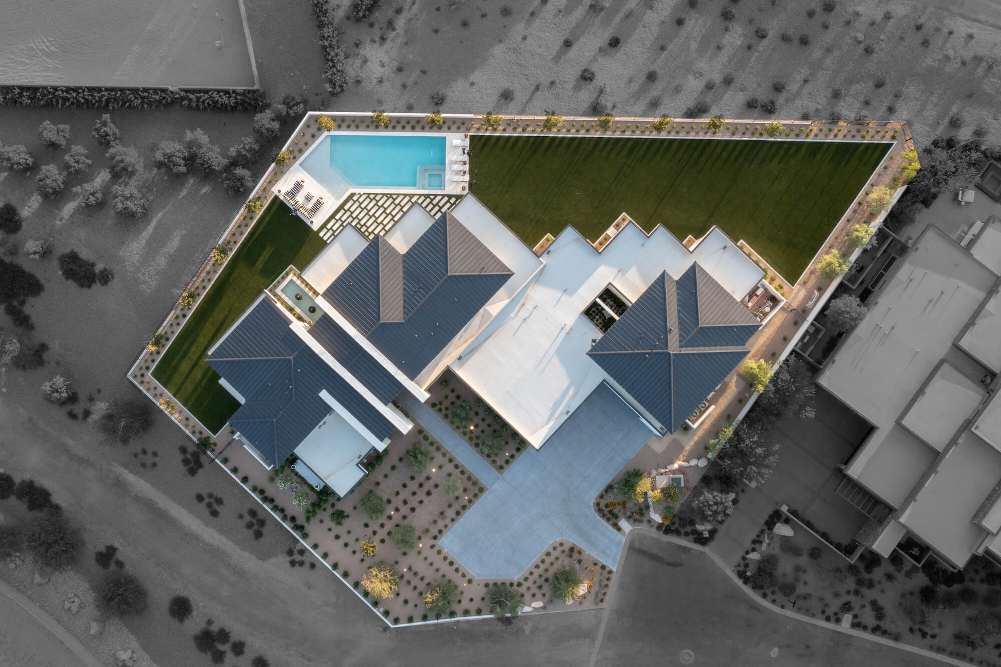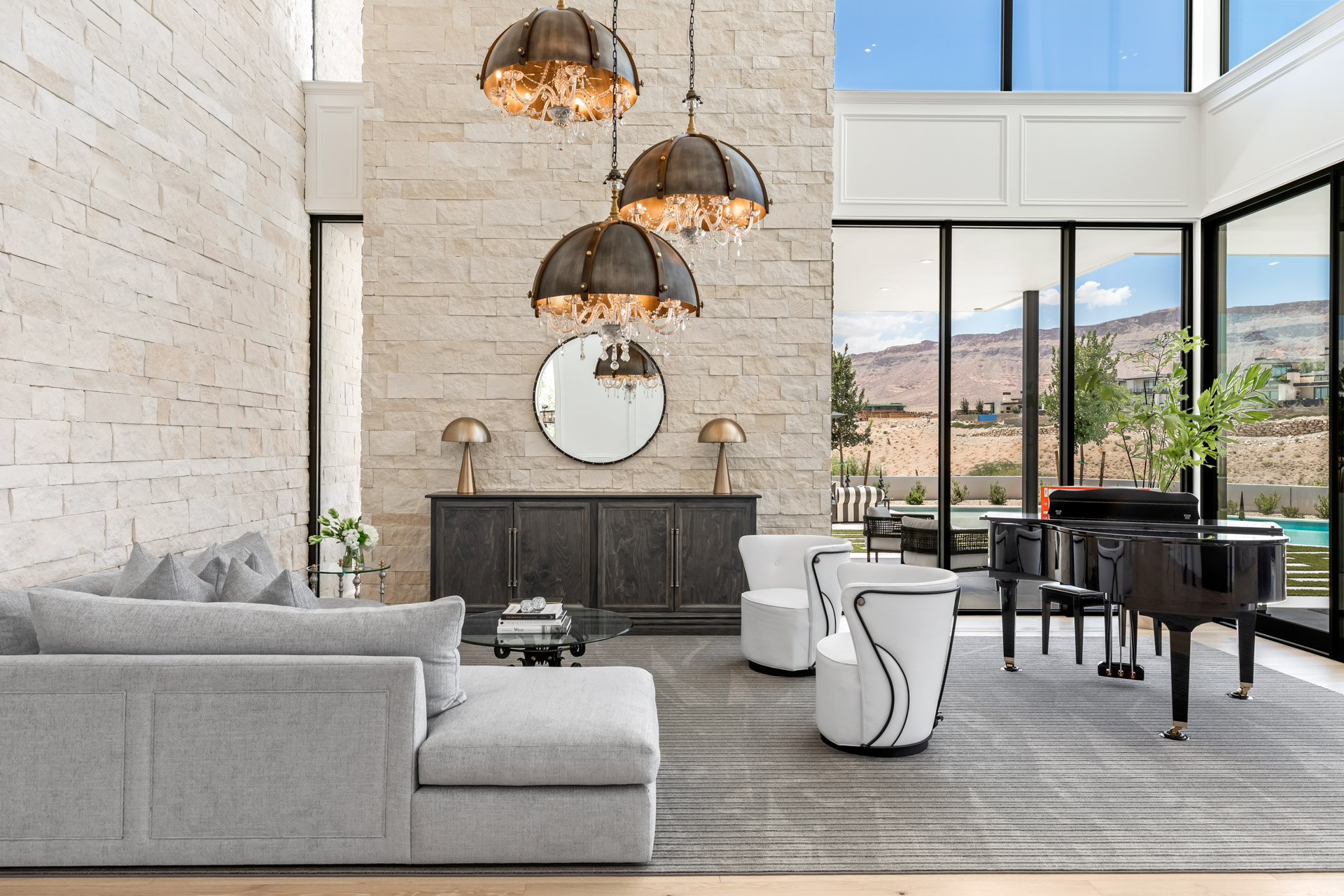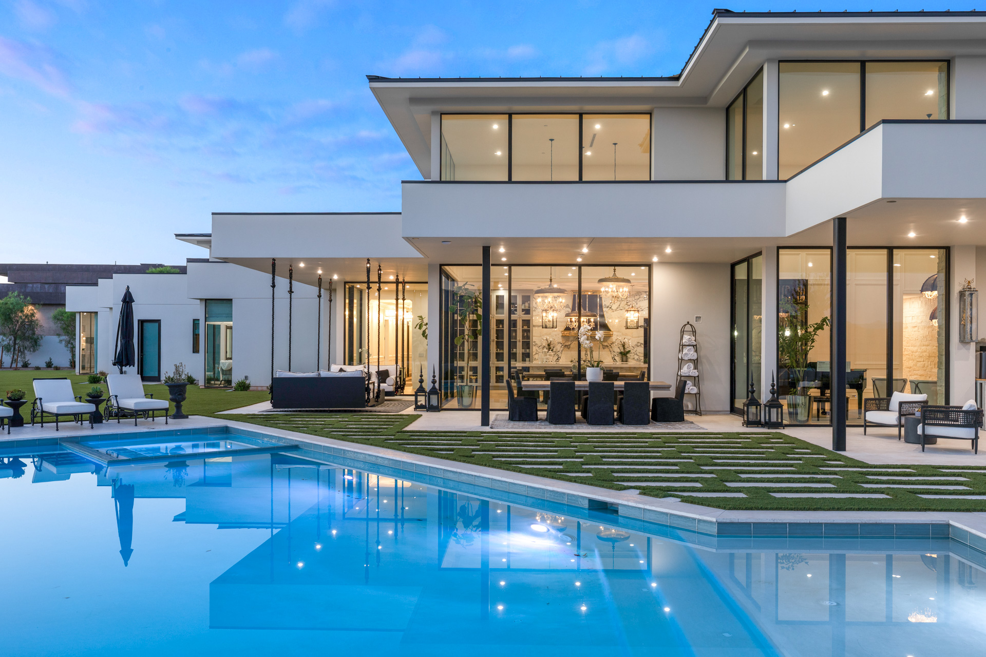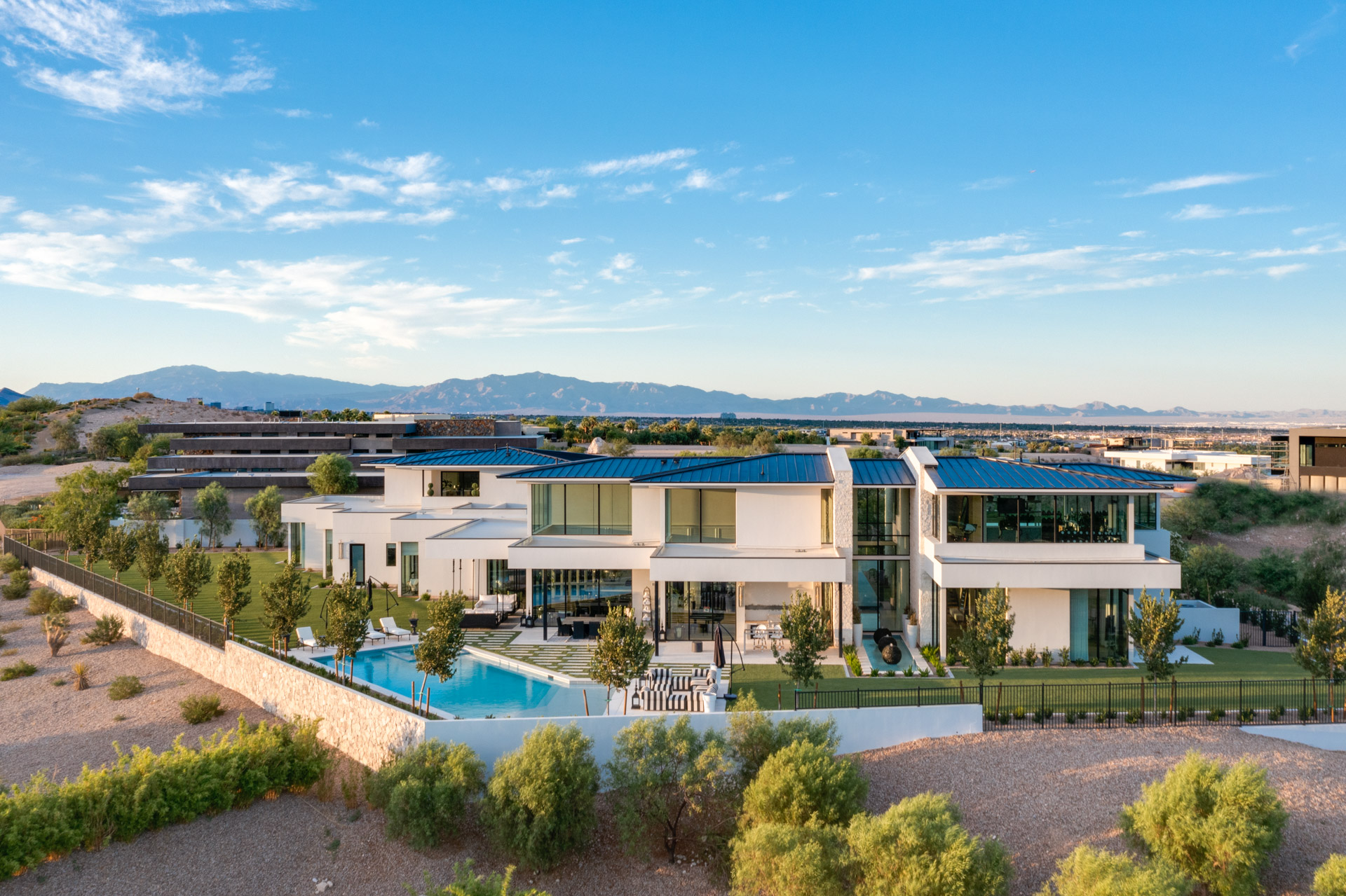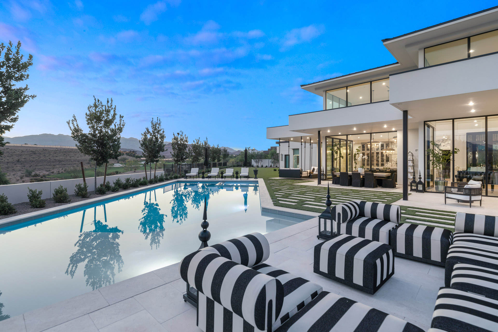 With its floor-to-ceiling windows, pocket glass doors, hidden courtyards, extensive shaded patios, pool deck, and balcony, it truly is a resort unto itself. Epitomizing the essence of the serene beauty of Nevada, the extensive grounds, with pool, greens, and immaculate desert-inspired landscaping, enable you to savor every moment.