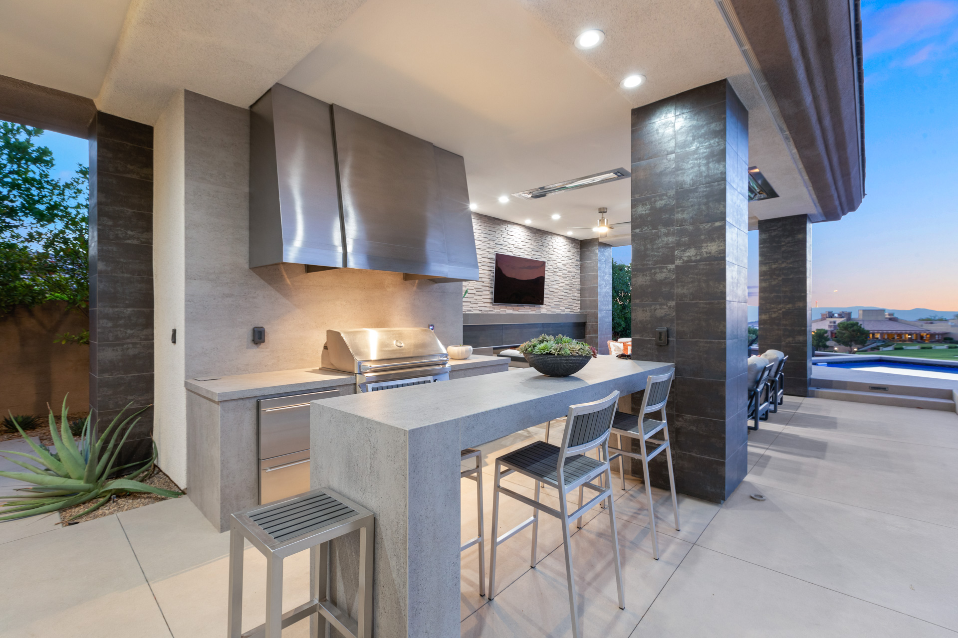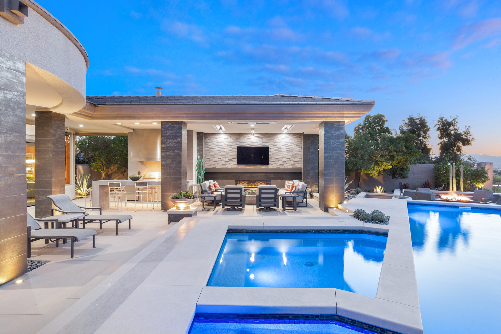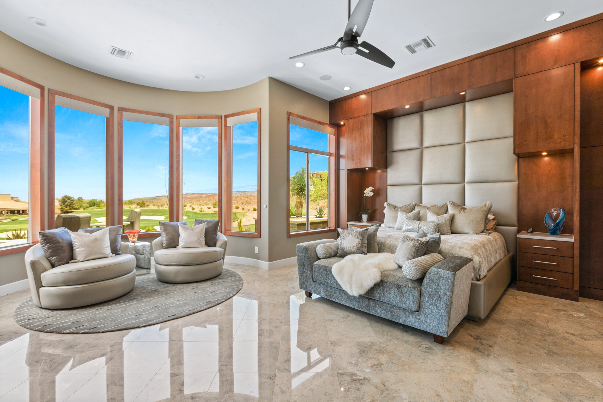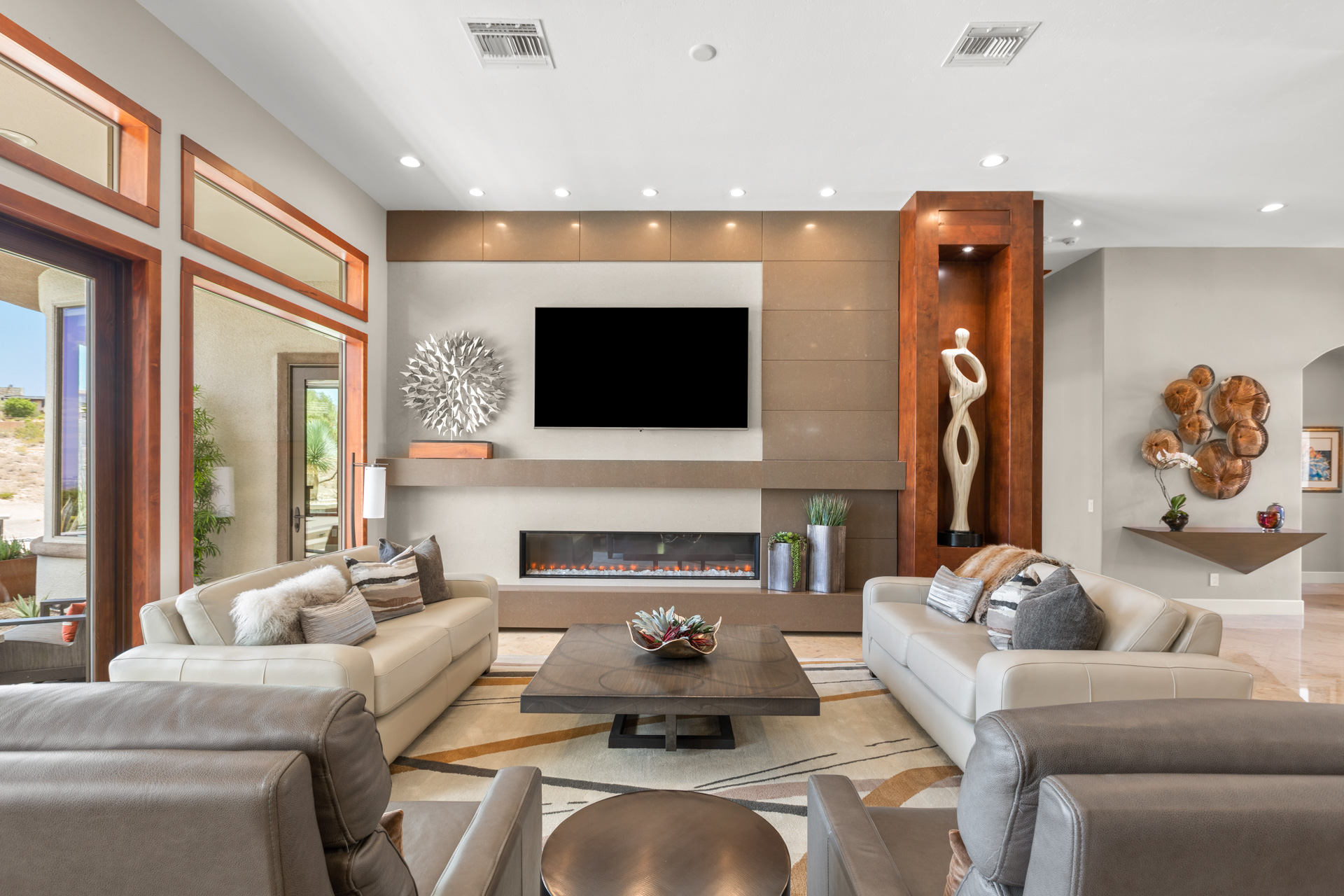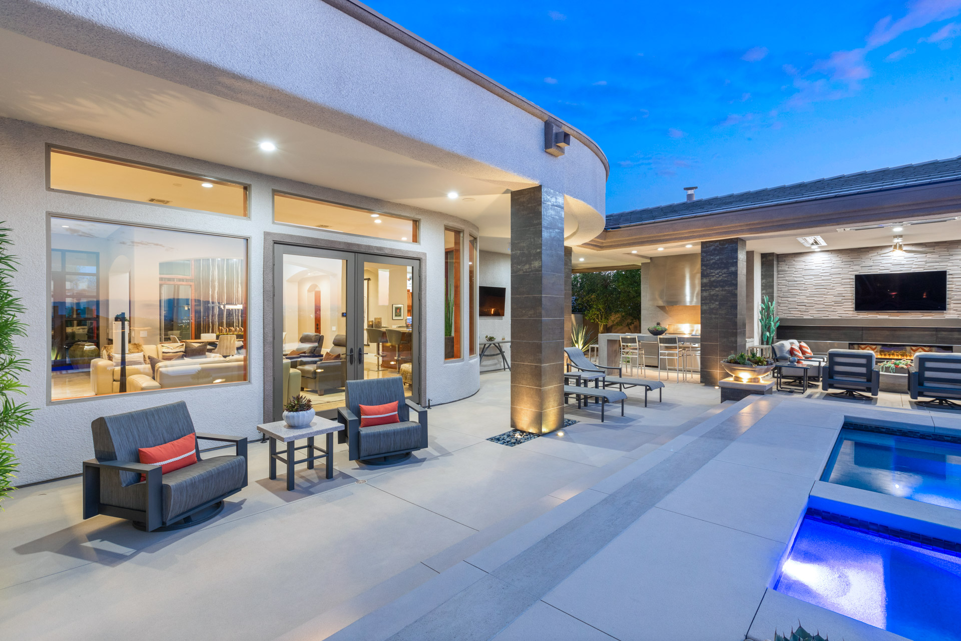 Incomparable style, design and craftsmanship characterize this single-story home with immense appeal in the guard-gated Anthem Country Club community of Henderson. Perched high above the city with exquisite Strip, golf course and mountain views, this three-bedroom, four-bath home boasts private guest quarters with a fireplace, wet bar and kitchenette.