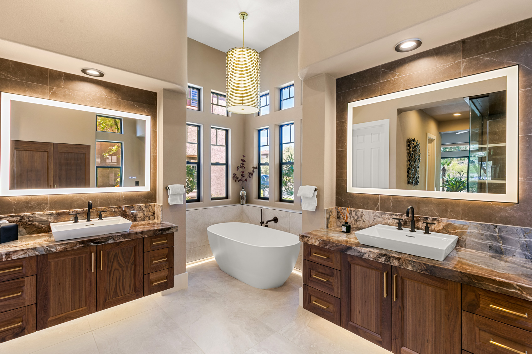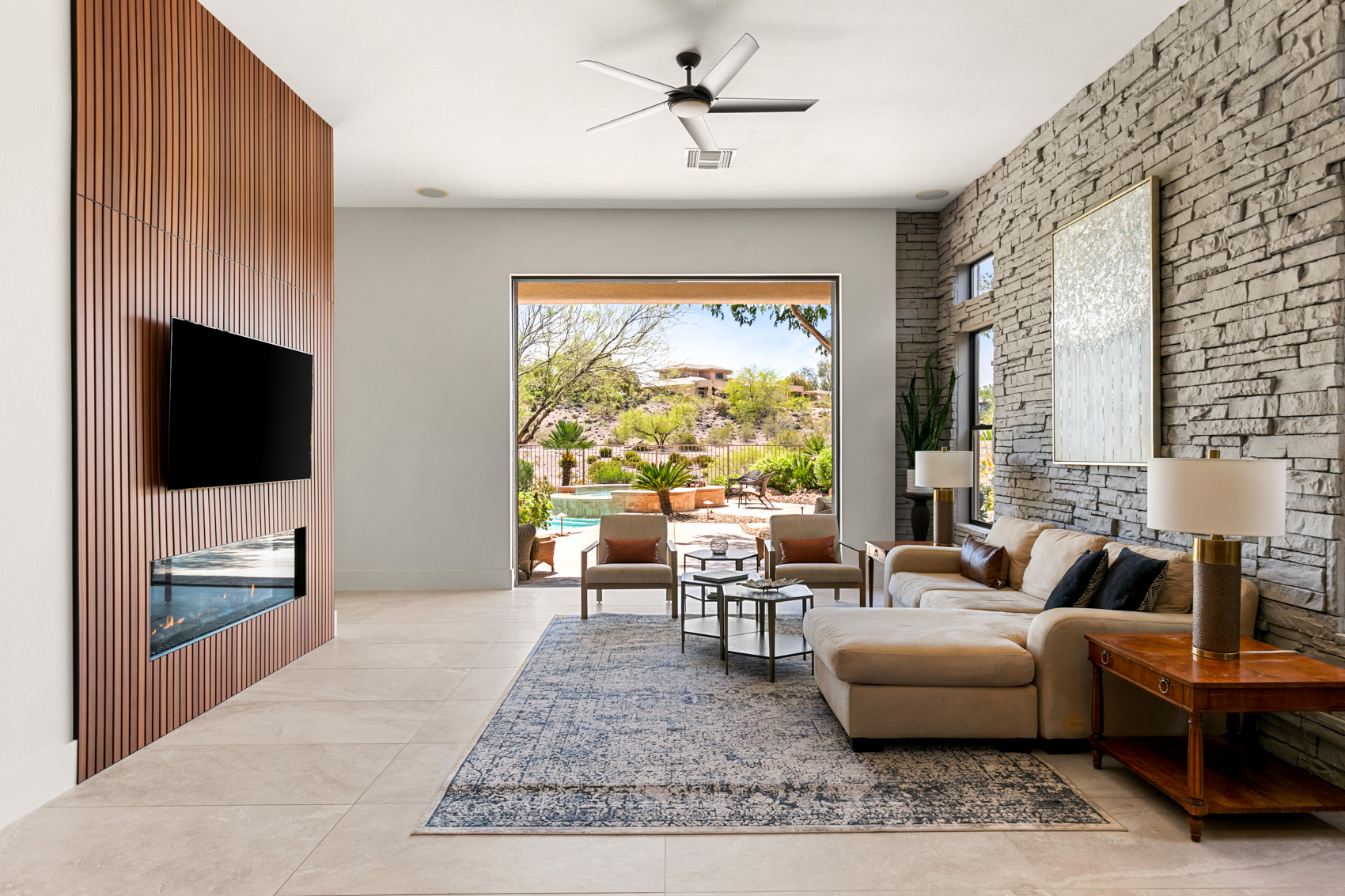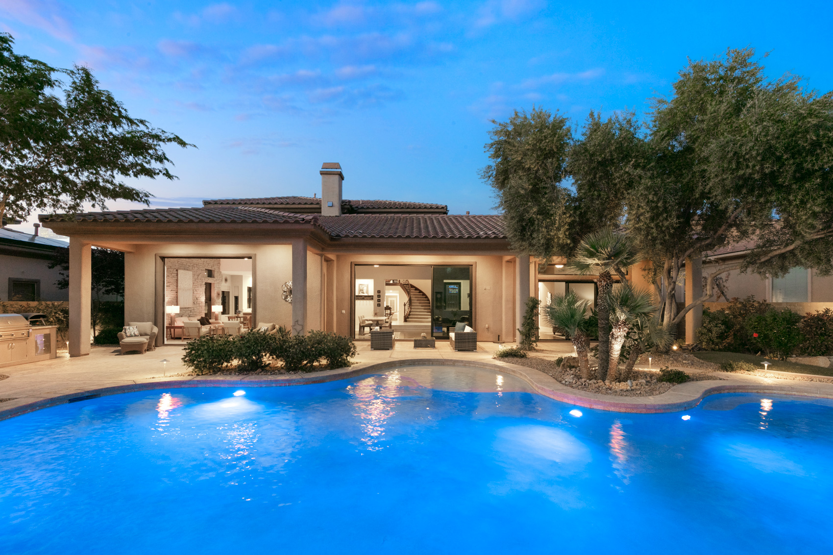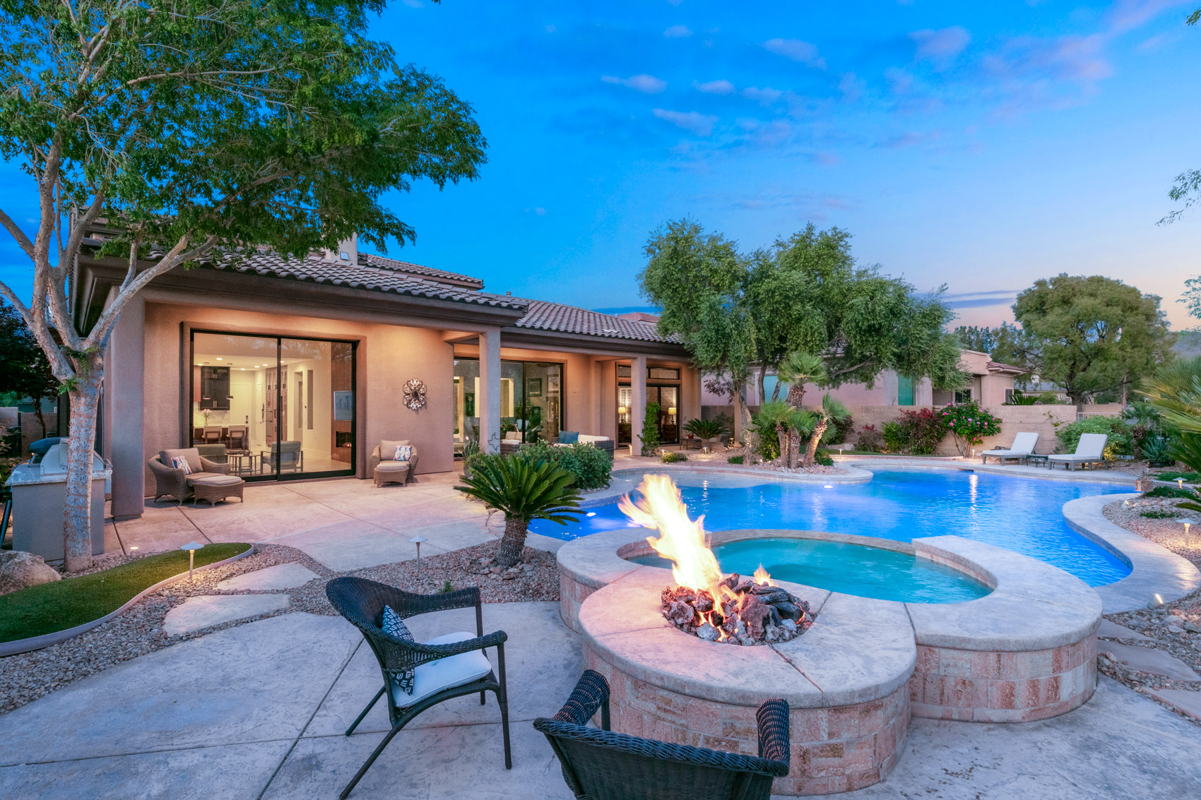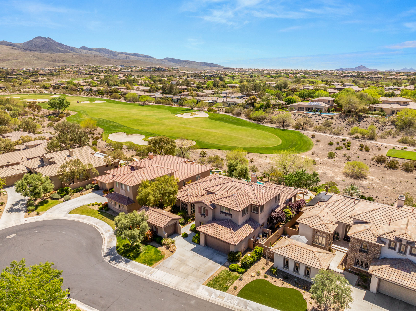 This luxurious two-story home with a stunning golf course view is located in the desirable guard-gated Anthem Country Club. The house has a single-story feel and has been extensively and expensively renovated.