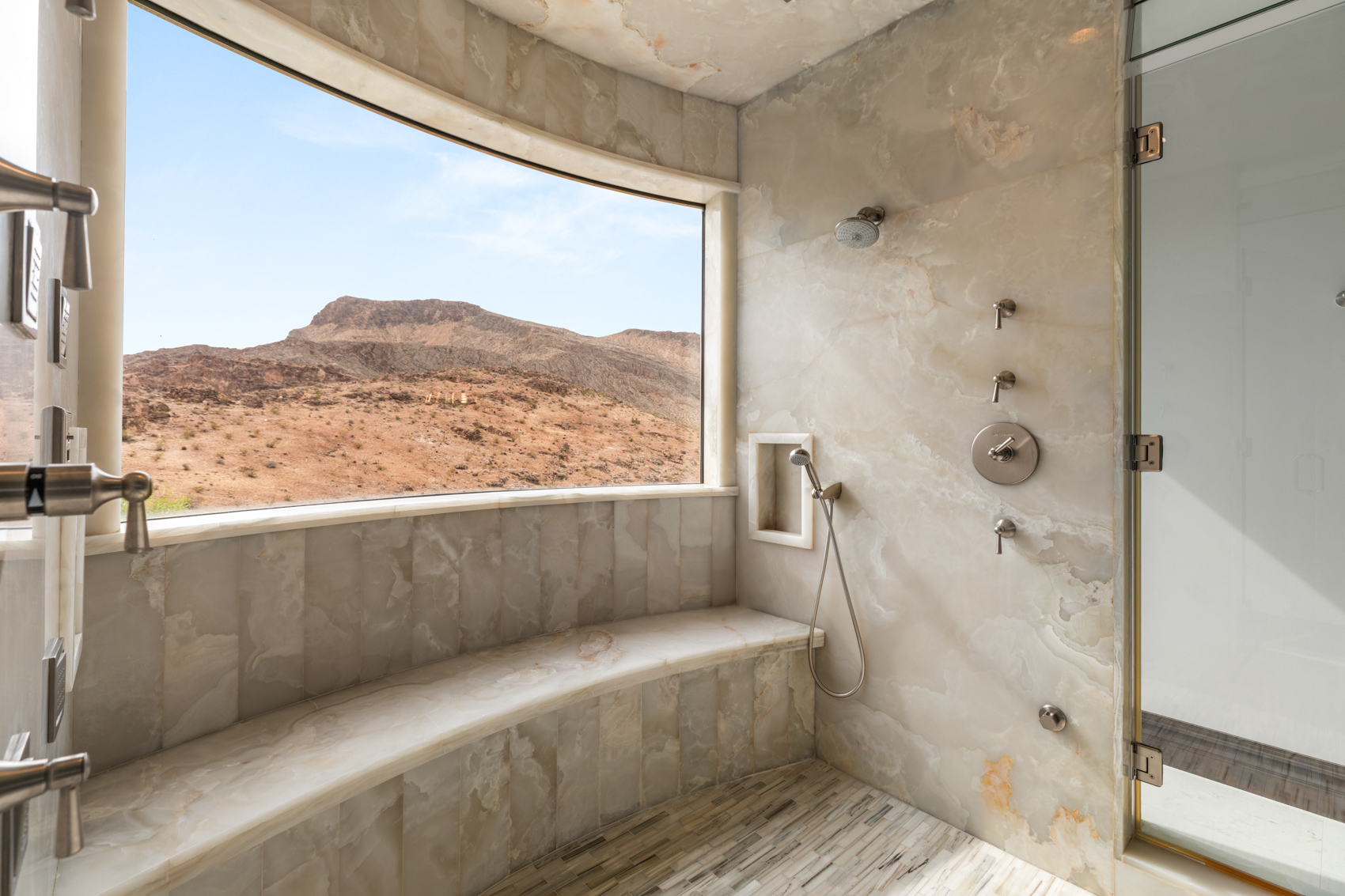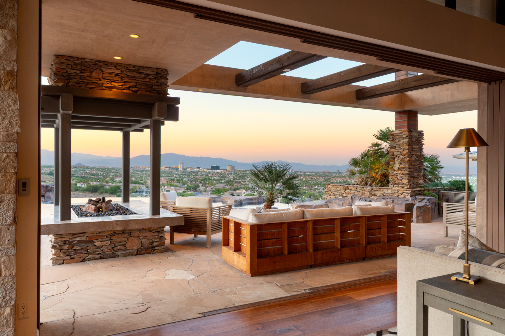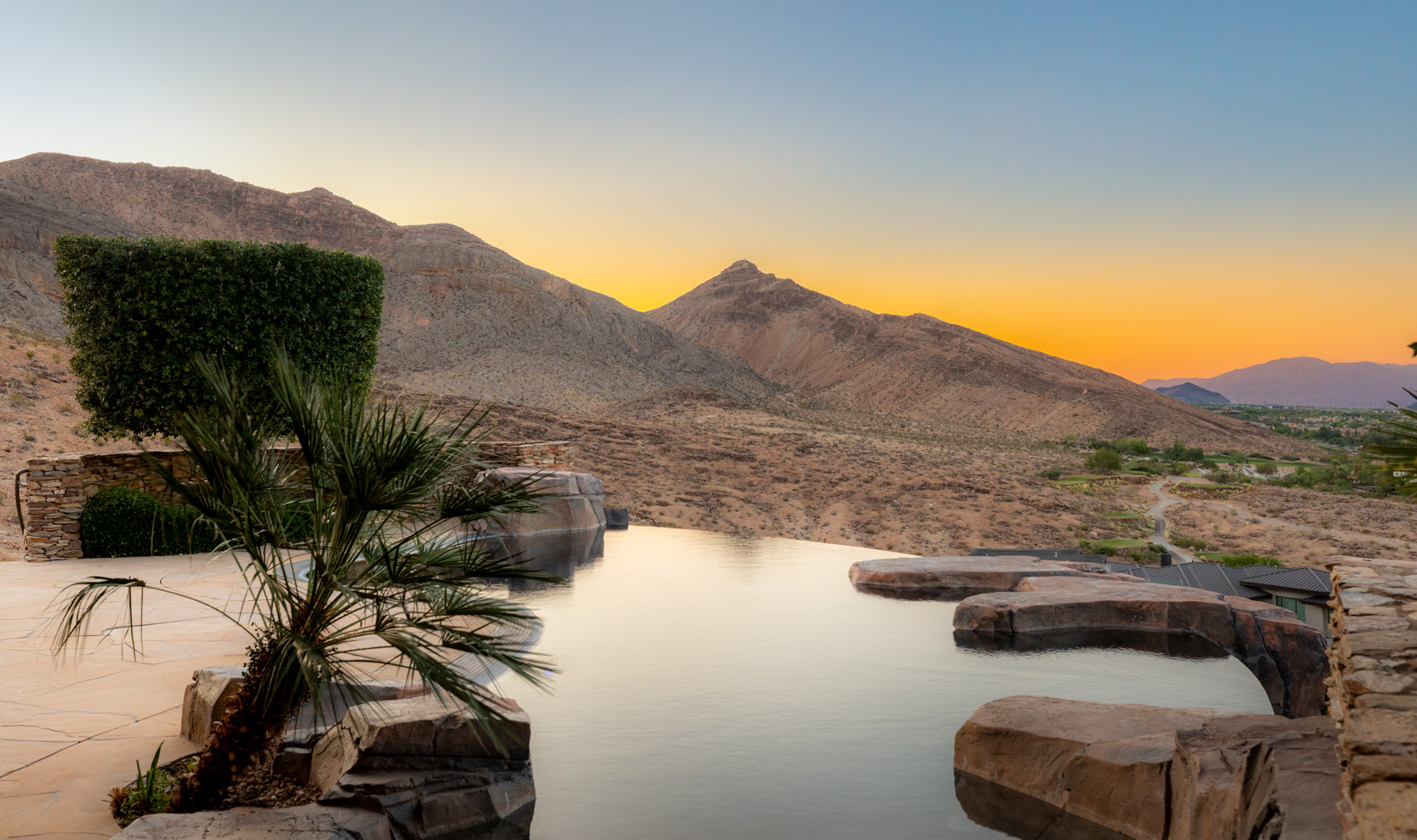 The heart of the home is a chefās dream kitchen adorned with dual backlit onyx islands, three ovens, a commercial-grade refrigerator and freezer, and integrated steamer and fryerāideal for everyday living and elevated entertaining alike. Oversized disappearing pocket doors blur the boundaries between interior and exterior spaces, opening to an expansive resort-style outdoor oasis featuring a negative-edge pool, spa, custom fire features, and a fully equipped outdoor kitchen. This estate boasts five spacious ensuite bedrooms and eight bathrooms, each designed with exceptional materials and finishes. The primary suite is a serene private retreat, complete with a spa-inspired bath, dual walk-in closets, a cozy lounge area, and a private mountain-view balconyāperfect for morning coffee or evening stargazing. An elevator connects all levels, ensuring effortless access to every amenity, including a private theater, game and media room, 480-bottle temperature-controlled wine cellar, massage room, steam room, and dry sauna. For the ultimate convenience, the home is equipped with Crestron smart home technology and Lutron lighting systems, delivering intuitive control over lighting, entertainment, climate, and security. Car enthusiasts will appreciate the six-car garage, providing generous space for a collectorās fleet or everyday luxury vehicles, with additional room for storage and hobbies. Located in The Ridges, Las Vegas' most prestigious guard-gated community, Promontory Pointe is known for its ultra-private, limited collection of custom estates and panoramic vistas. Residents enjoy proximity to world-class golf at Bearās Best, scenic trails, tennis, and the community clubhouse, all while being just minutes from the heart of the city and the Strip. Rarely does a property of this scale, stature, and setting come to market. 5 Promontory Pointe is more than a homeāit is a landmark estate where design, comfort, and location converge, offering a once-in-a-lifetime opportunity to own one of Las Vegasā most iconic hilltop residences.