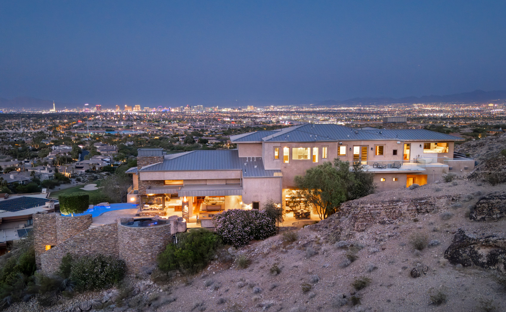 Perched atop the highest elevation in Las Vegas within the triple-gated enclave of Promontory Pointe, this extraordinary estate redefines luxury living in The Ridgesā most exclusive hilltop setting. Positioned on over one full acre, the property delivers unparalleled 360-degree viewsāfrom the dazzling Las Vegas Strip and city lights to the majestic Red Rock Canyon and surrounding mountains.