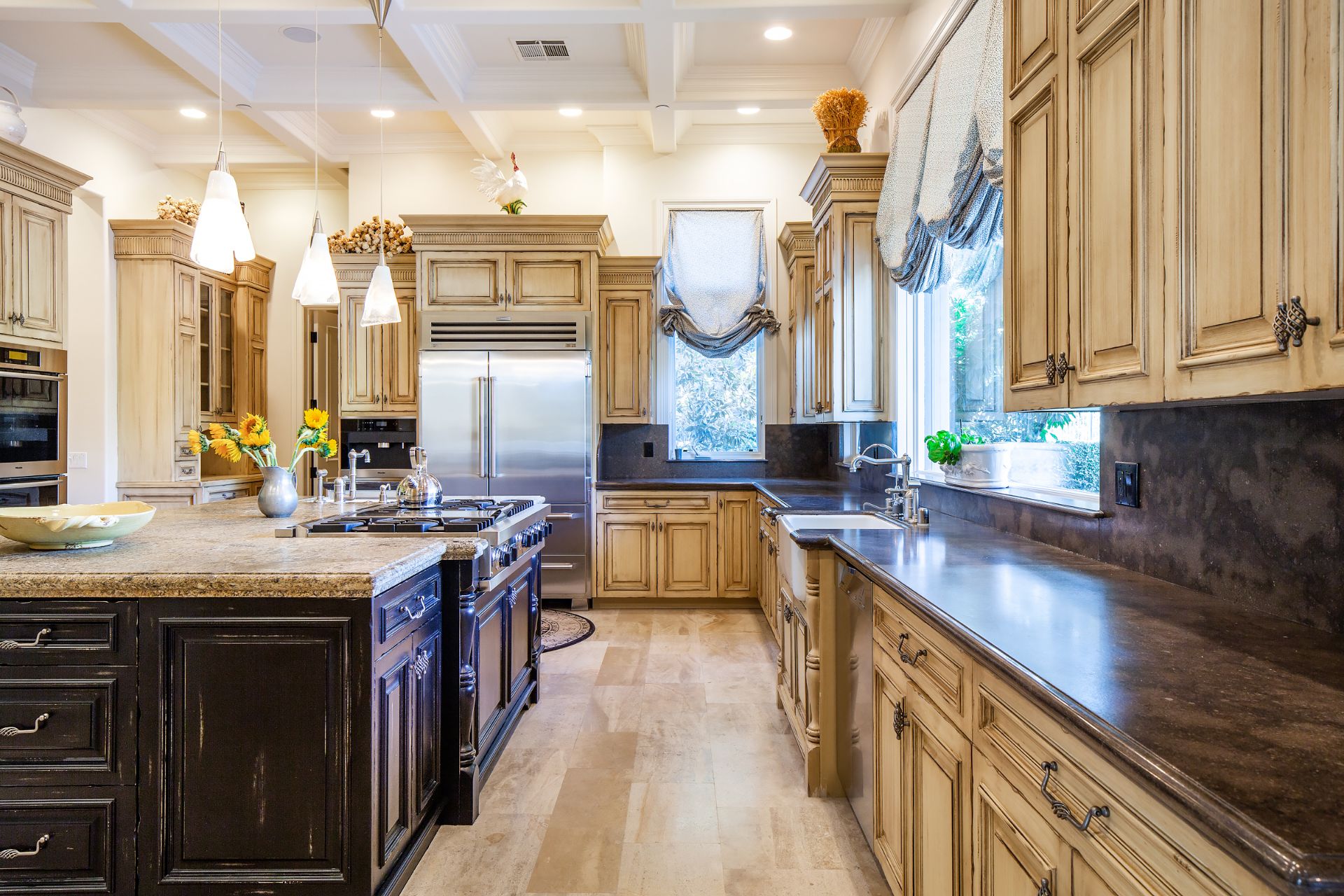 All bedrooms are on the second level, which has convenient elevator access. There are two expansive primary suites with dual full baths, huge walk-in closets with customized storage, and private balconies. The two secondary bedrooms also have private ensuite baths. There are a total of 10 baths in the home. In addition to a formal entry foyer with a curved marble staircase, formal living, and dining rooms, the main floor holds a dramatic chef's kitchen with European-inspired custom cabinetry, natural stone counters, state-of-the-art appliances, and a center island with stunning pendant lighting. There is also a butler's pantry, adjoining casual dining space, and an expansive family room with a wet bar, massive ceiling beams, and a built-in television cabinet. A paneled office/den, dedicated theatre/media room, and spectacular wine cellar. The home also has automatic leak detection that will shut the water off in case of a leak. Most rooms on the main floor have direct access to the outdoors.