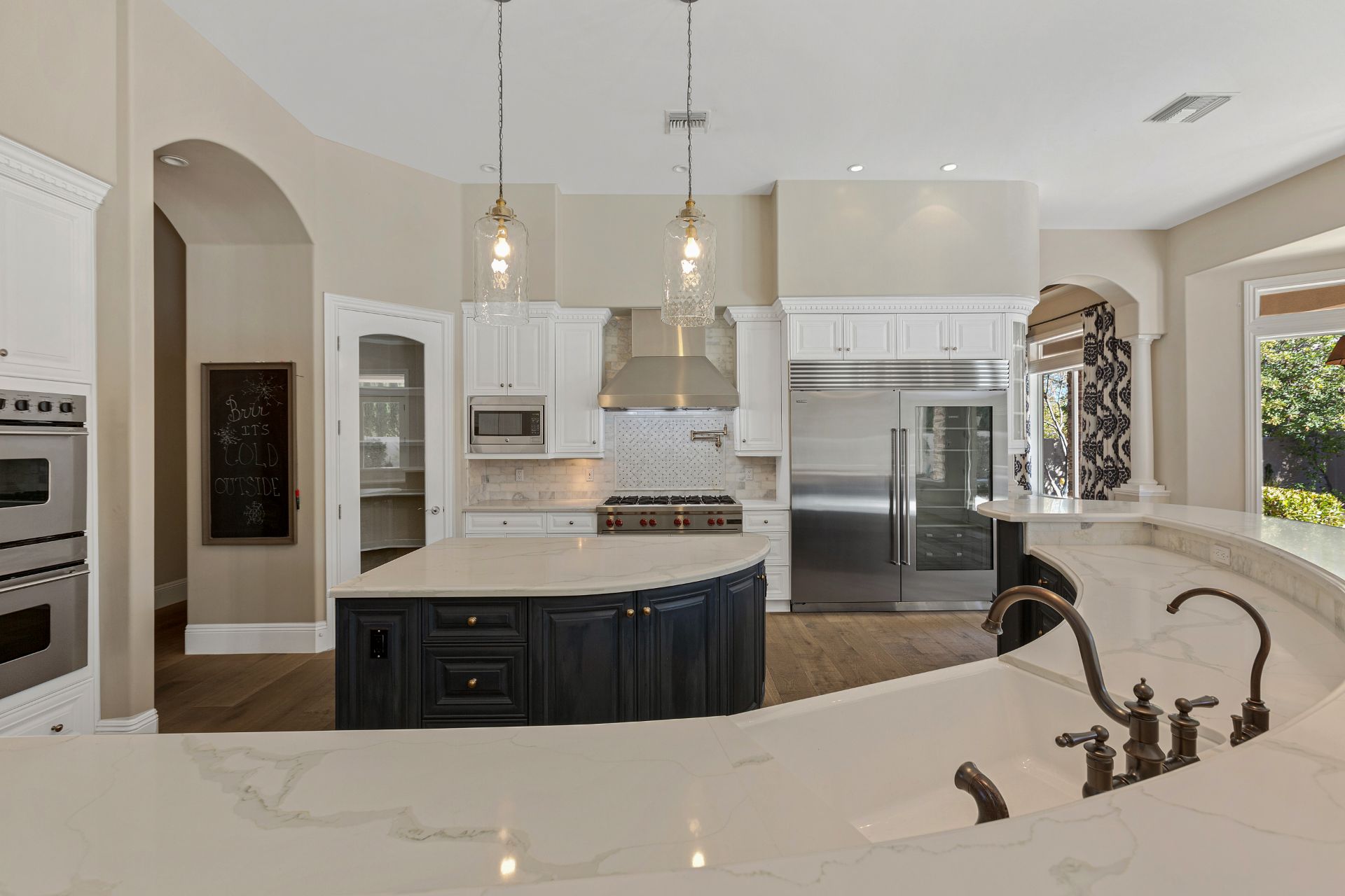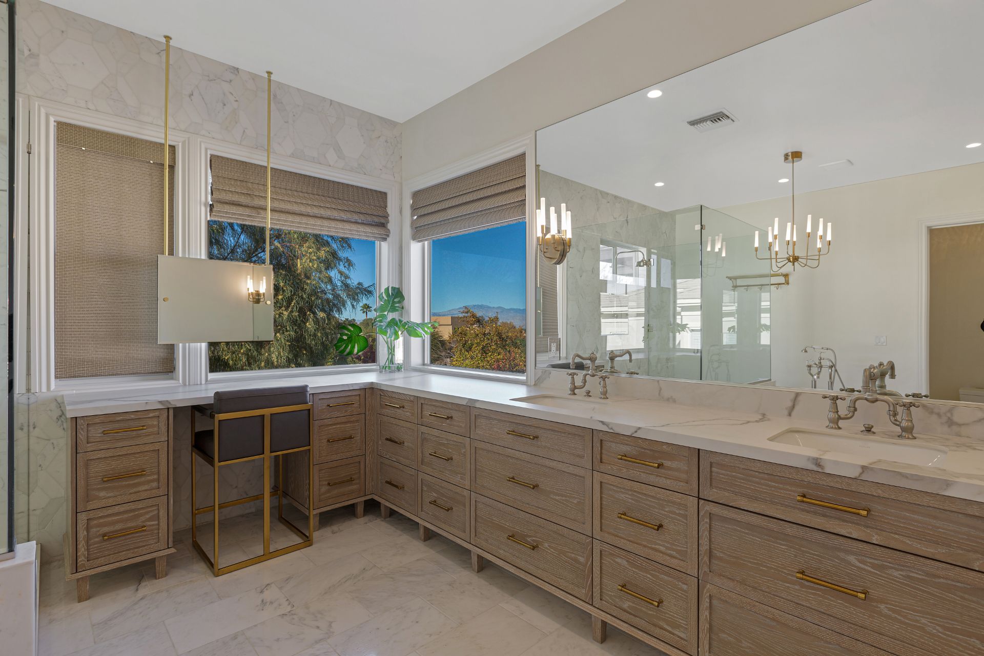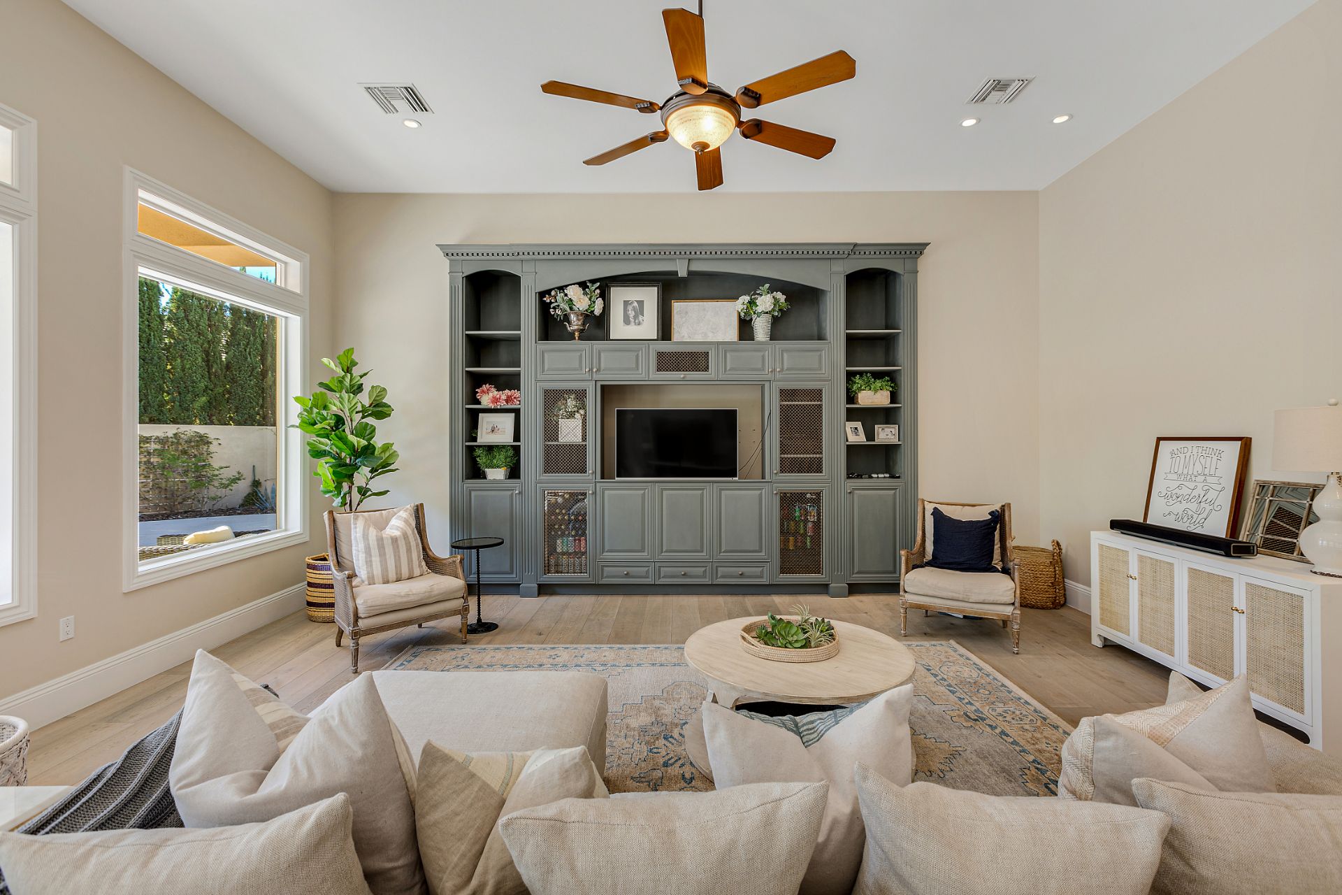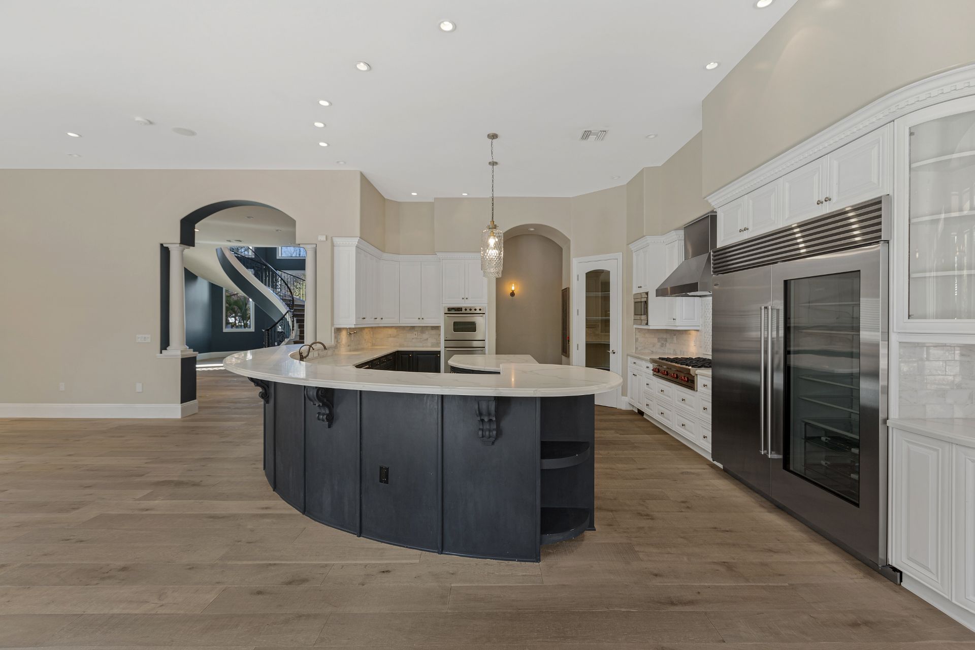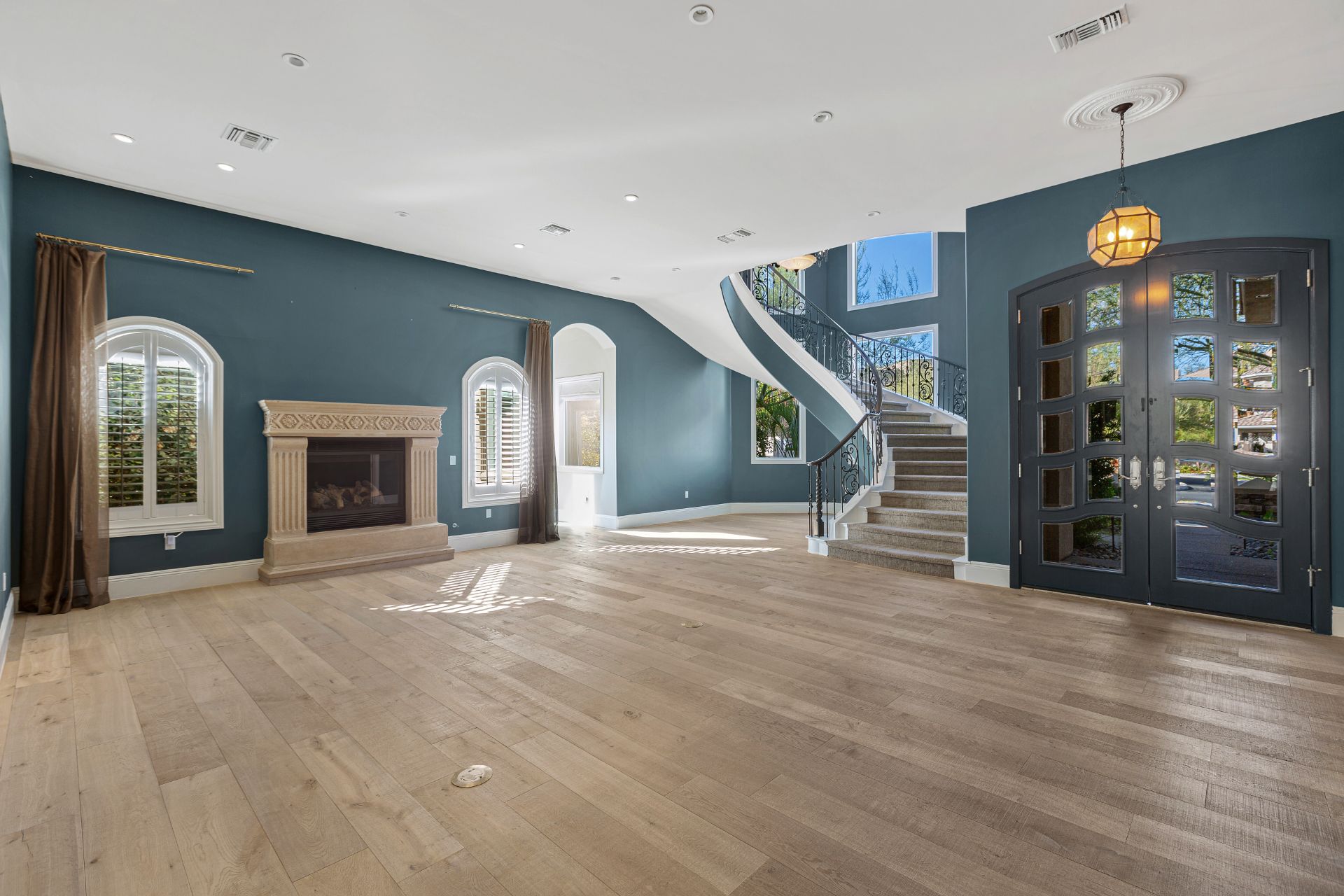 From the exquisitely-appointed interior to the park-like ambience of the outdoors, a new owner will luxuriate in the good life of Las Vegas. The residence features a unique floor plan with more than 5,500 square feet of space. A dramatic entry foyer staircase leads to the private second floor. Contrasting contemporary lines, large walls of glass and designer lighting are balanced by distinctive details, including traditional accents and interior columns to delineate the different spaces.