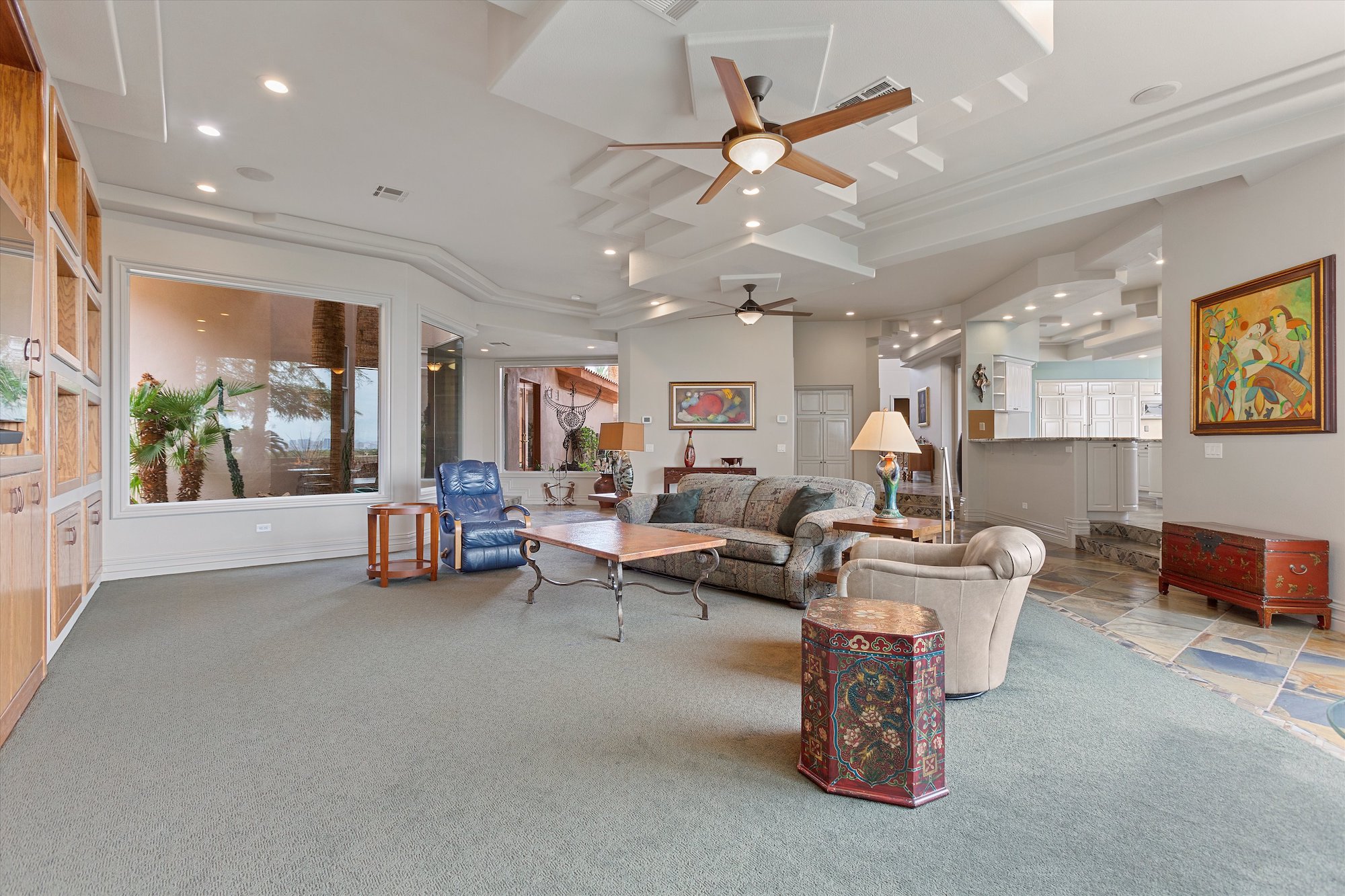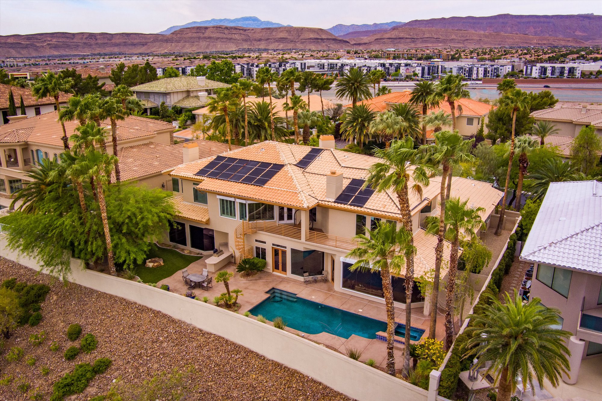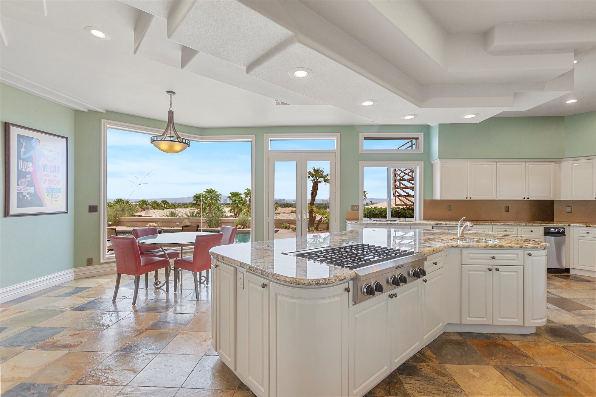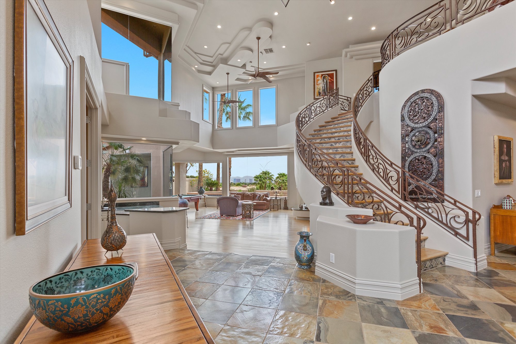 Distinctive slate tiles pave interior main floor rooms of this two-story home in Spanish Hills. It serves as a natural counterpoint to the light interiors and modern style of the distinctive clay-tile-roofed home. With five bedrooms, five baths, a three-car garage and nearly 7,200 square feet of living space, this is a home that has fresh appeal.