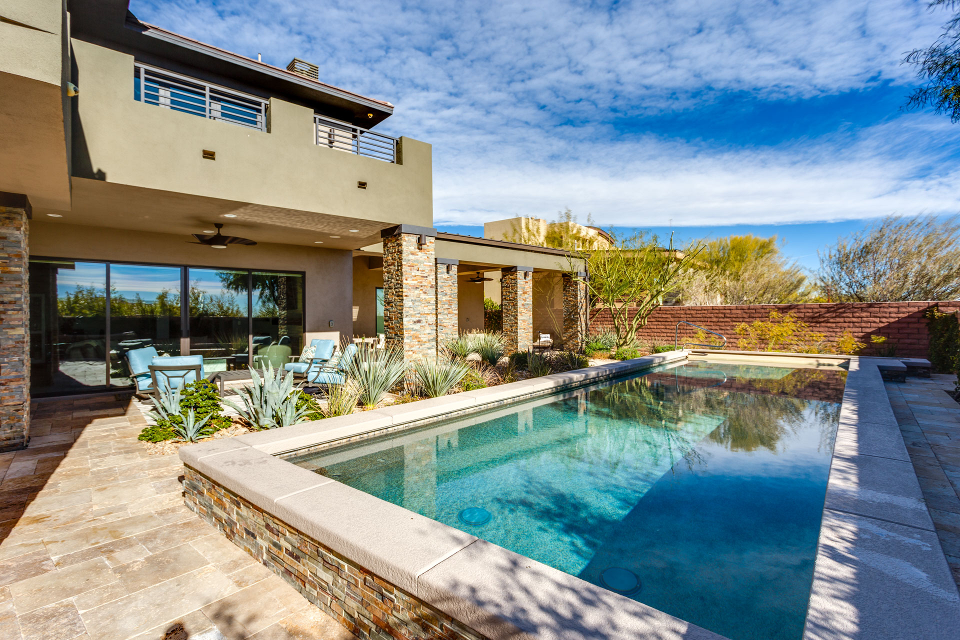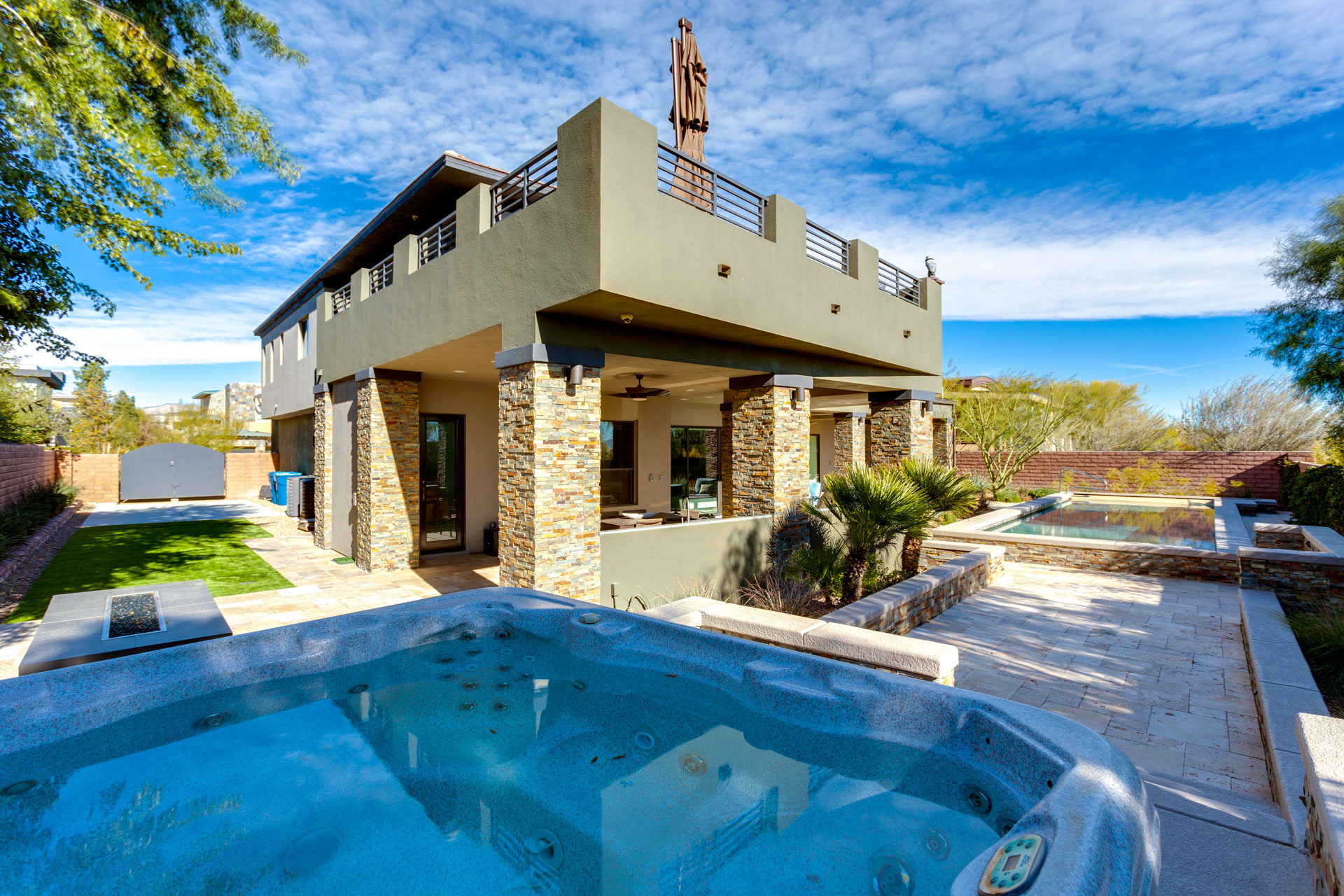 The upstairs master has a resort-feel with its own two-way fireplace and living area. There is also an expanded loft with a family room on the second level that can easily function as a multi-purpose room. Retreat out to the large observation deck for the panoramic city and mountain views. This oversized outdoor space is great for lounging and dining with the unobstructed Las Vegas Strip as your backdrop.
