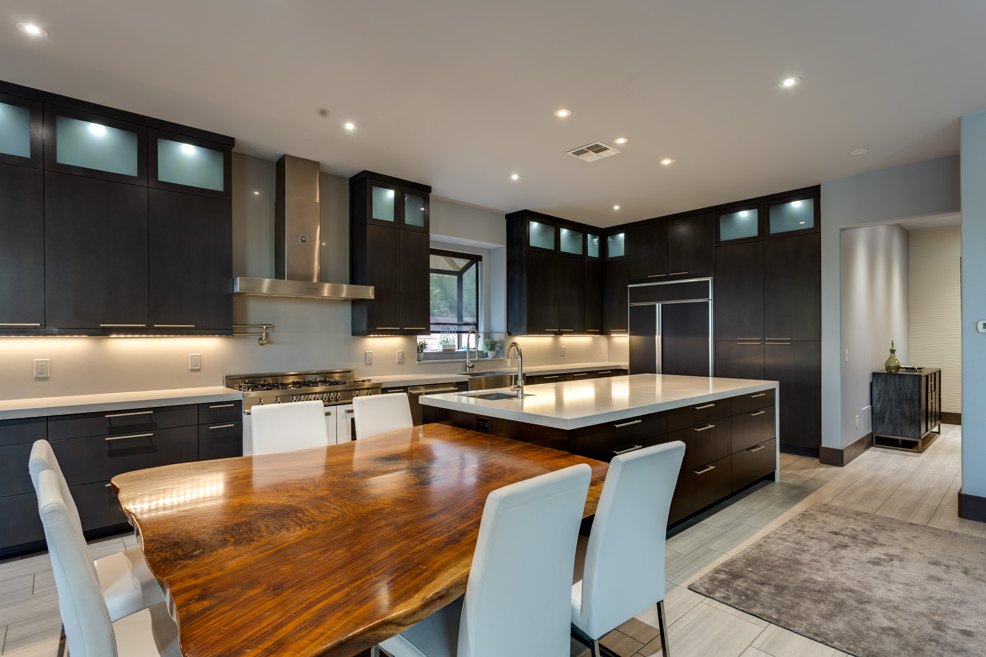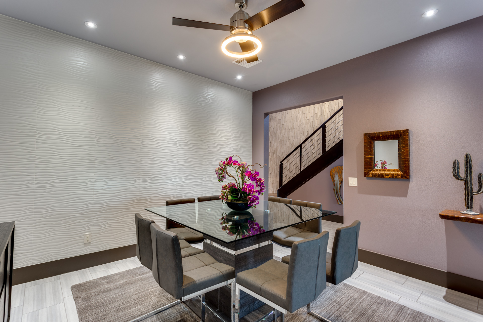 Exceptional Ridgesā designer home with highly upgraded contemporary finishes and an ideal-livable floor plan. The gorgeous eat-in kitchen seamlessly opens to the main living and dining space, perfect for keeping everyone together and hosting any occasion. Sleek espresso cabinets, white slab granite, stainless steel appliances and hardware, textured accent walls, and understated elegance is beautifully showcased.