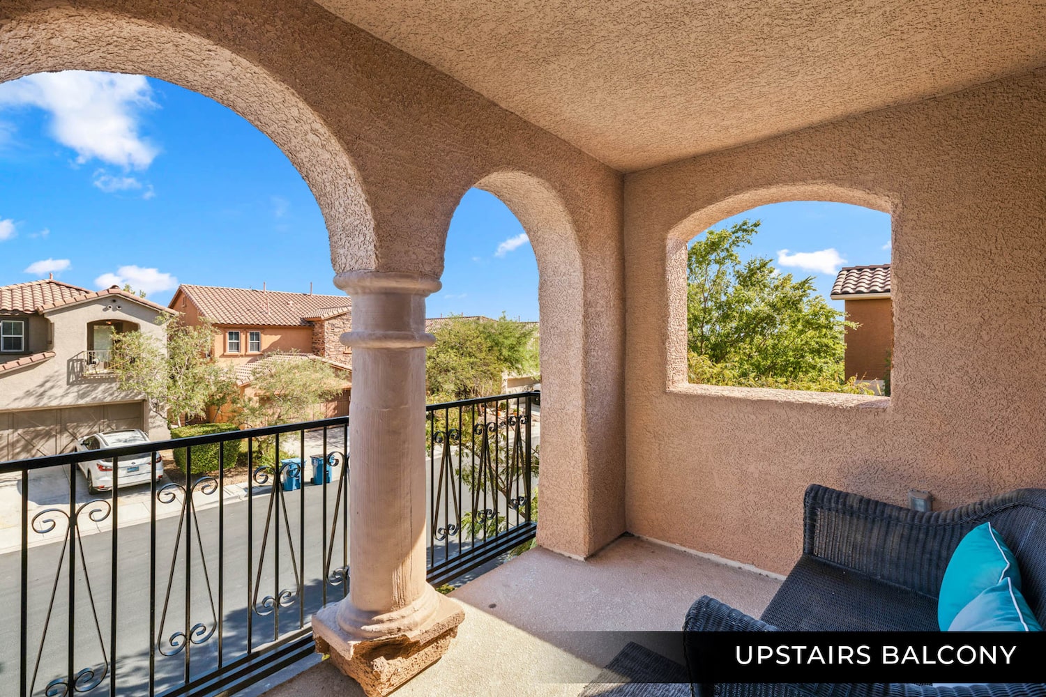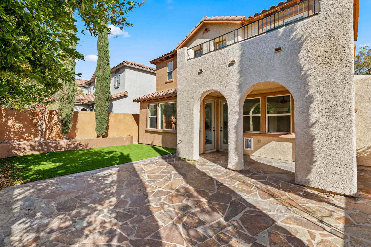 All bedrooms are located on the second floor with a bonus loft area. The primary bedroom is spacious featuring: a walk-in closet, balcony, and bathroom w/a separate tub and shower. The backyard includes a covered patio and brand-new low-maintenance turf. Living here you can take advantage of all the surrounding Summerlin amenities like parks and pools. Enjoy this great location w/ easy freeway access.
