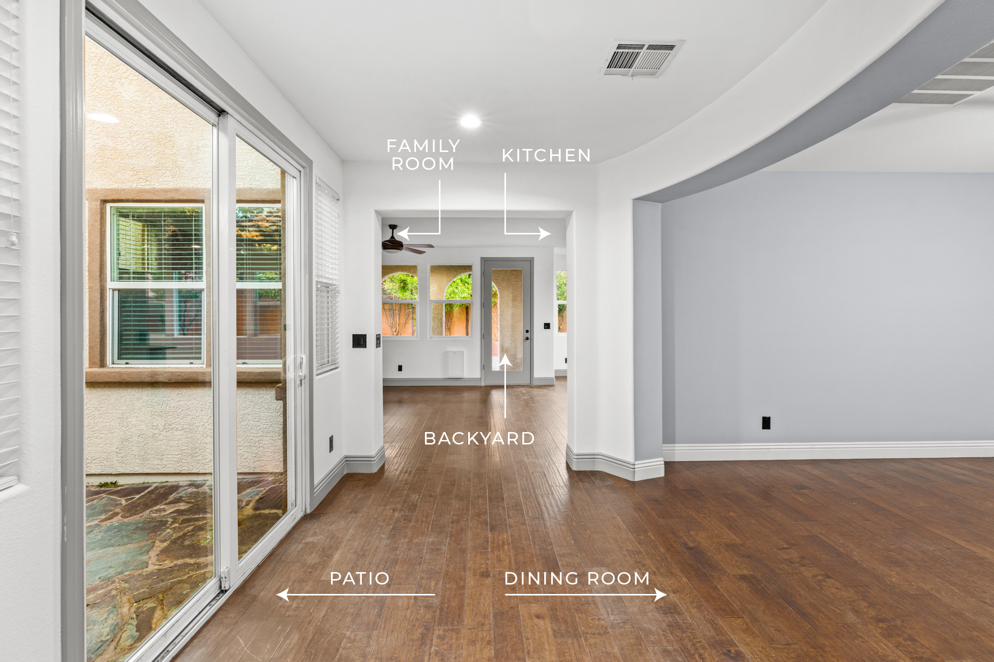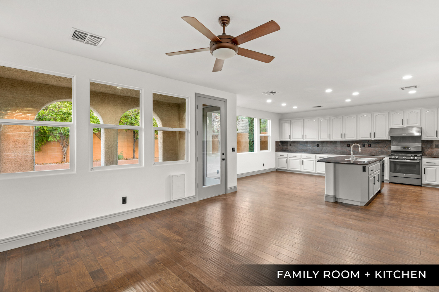 Fantastic home in the gated community Mariposa at The Paseos, Summerlin. This home has been recently refreshed with new paint throughout, engineered wood flooring and stunning stone floor-to-ceiling wall surrounds the family room fireplace. The kitchen includes the upgraded cabinets & countertops, stainless steel appliances, pantry and a spacious island.