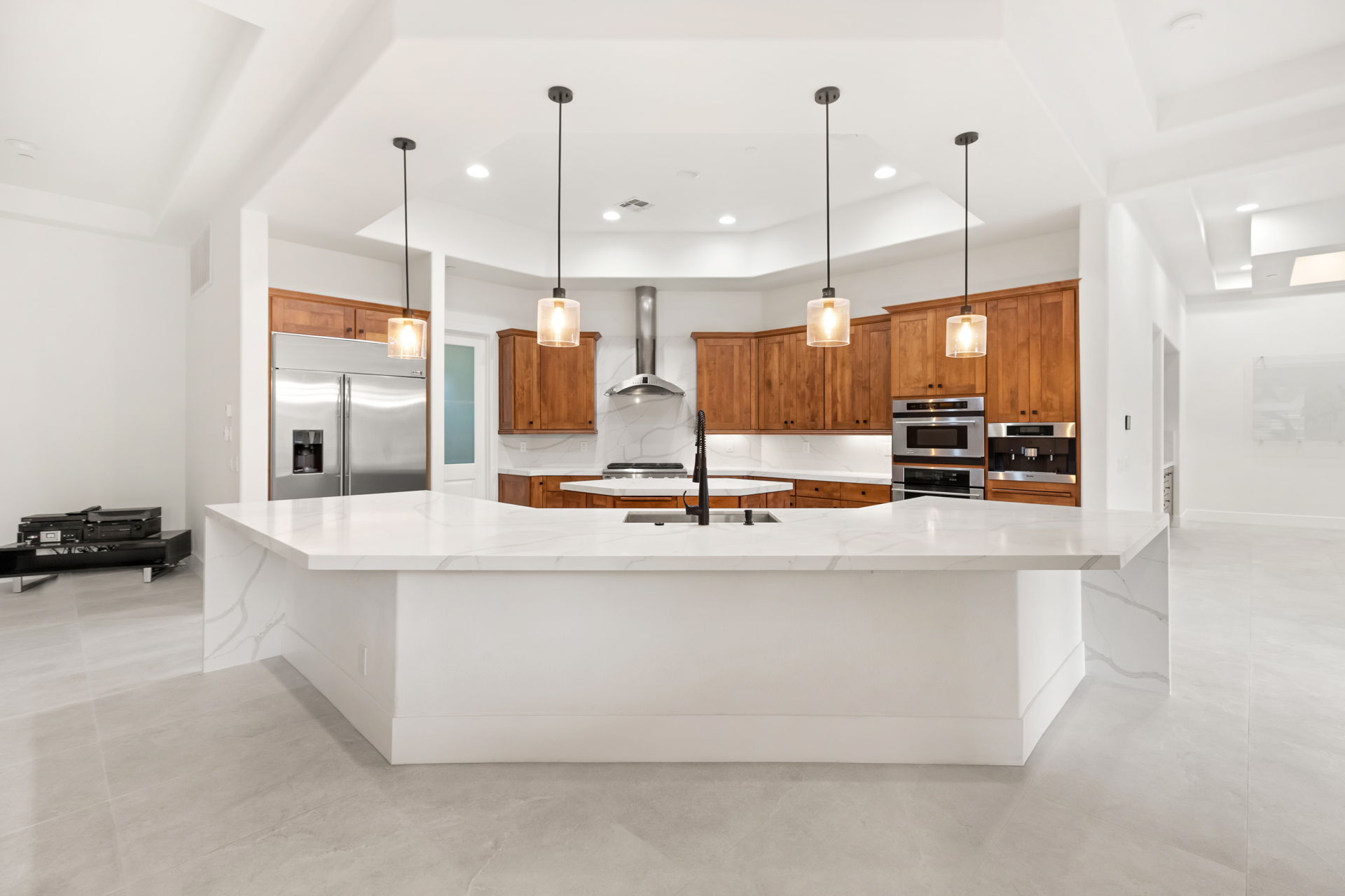 The expansive open floor plan flows seamlessly with multi-slide pocket doors connecting to a resort-style backyard with pool, waterfall, spa, fire pit, built-in BBQ, and rooftop deck with panoramic views. The serene primary suite is a private sanctuary with a fireplace, spa-like bath, soaking tub, and oversized multi-head steam shower. Formal living and dining areas offer space to entertain in style, and an oversized three-car garage provides generous storage. This beautifully remodeled estate offers elevated living for those with the most discerning taste.