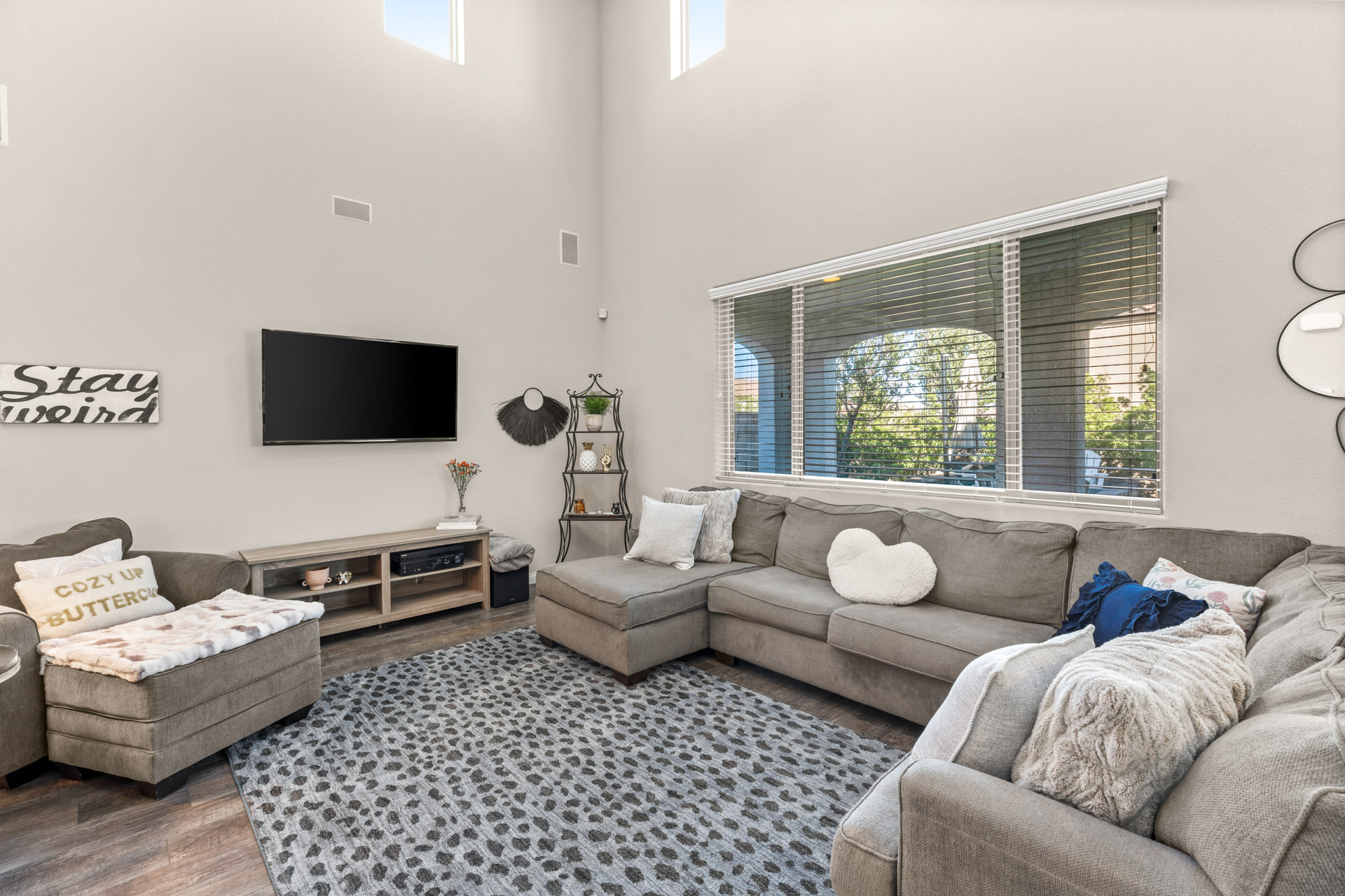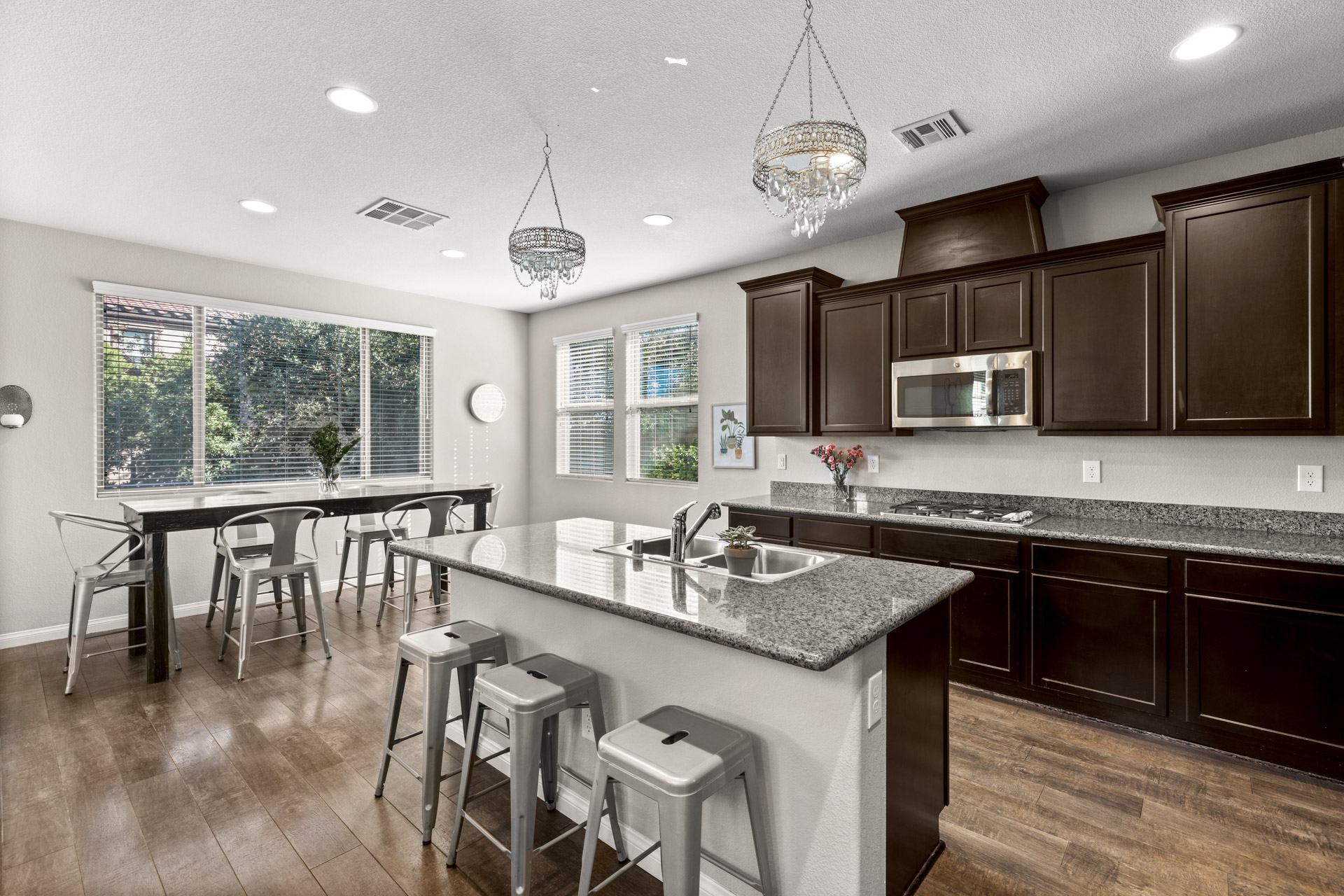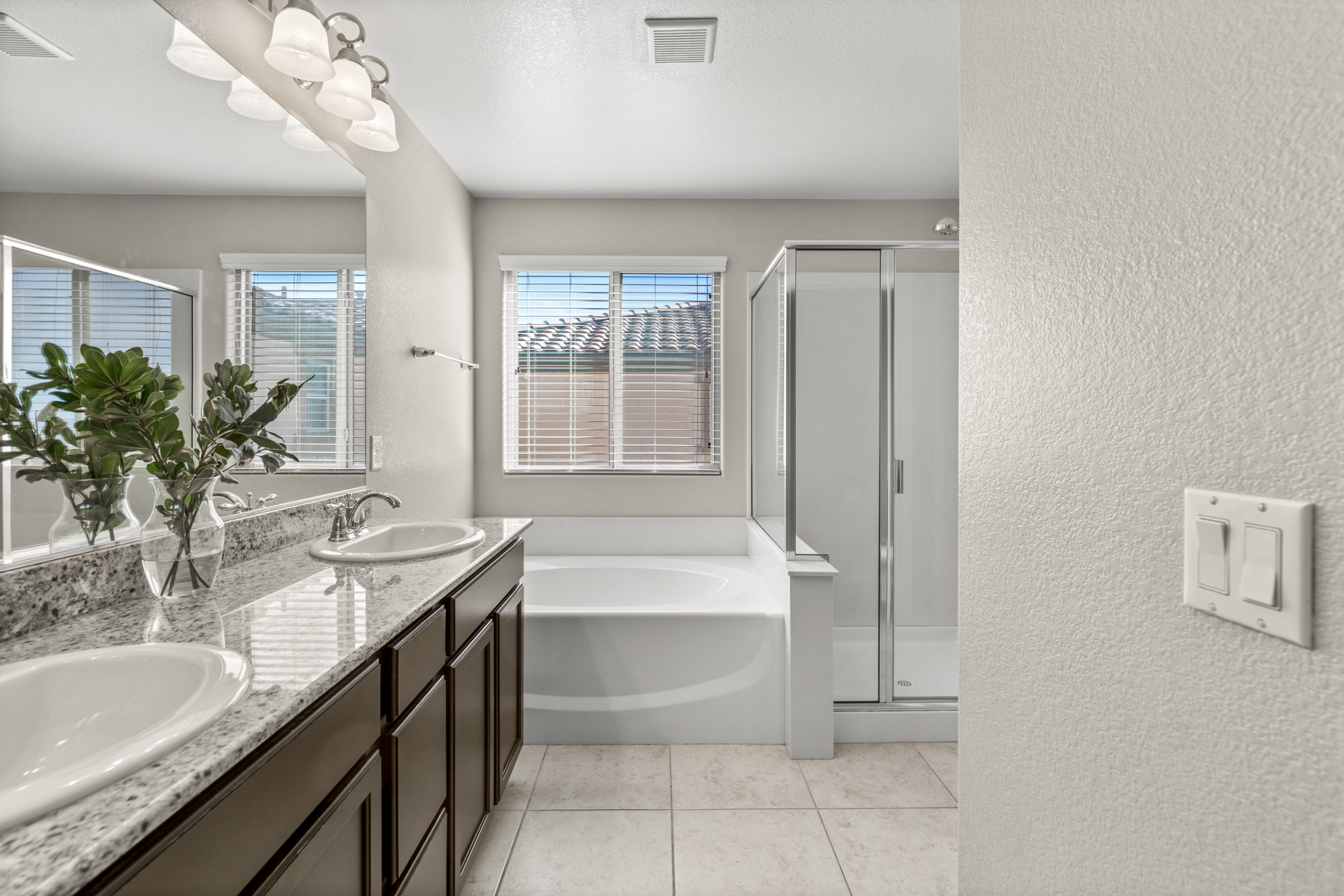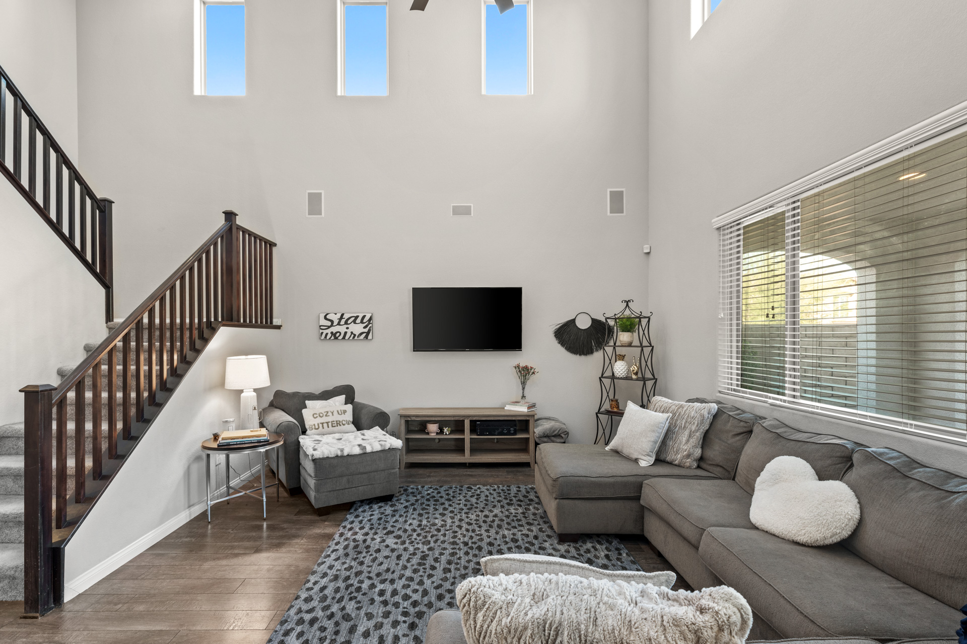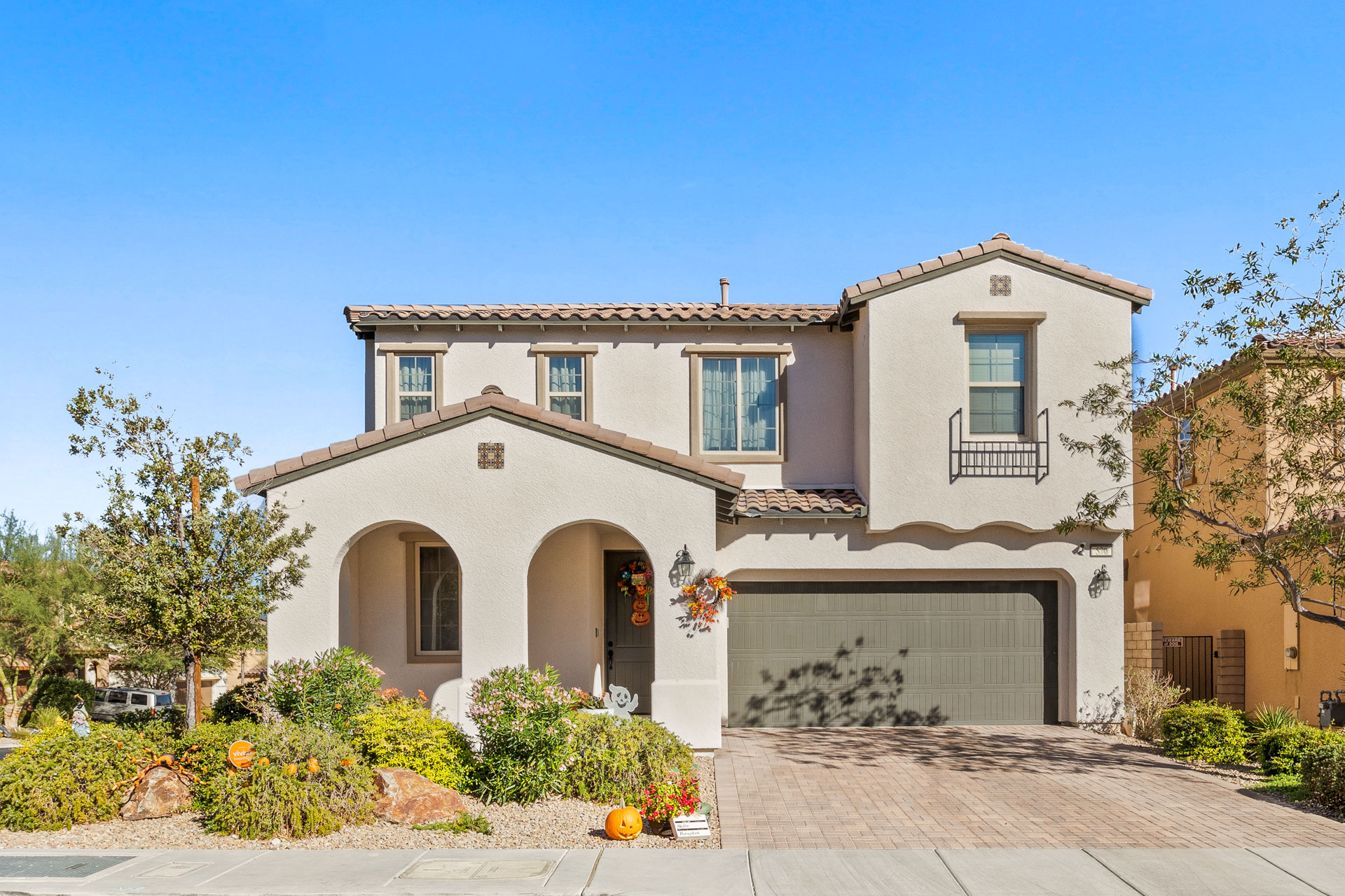 Perched in the foothills of Red Rock welcome home to the gated community of Andora within the highly sought after Paseos of Summerlin. Built by Woodside Homes you will find a plan that blends open concept living with soaring ceilings, functionality & flow.