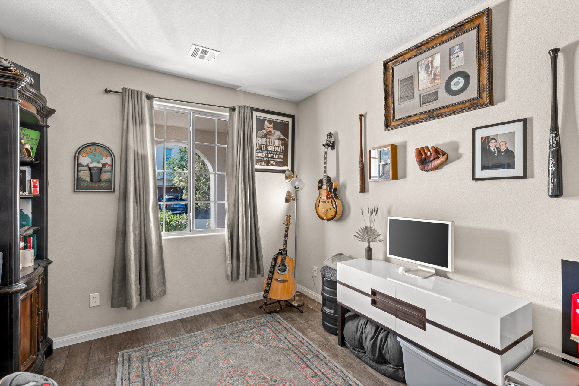 Stepping in the home warm tones greet you thanks to luxury manufactured wood flooring, granite countertops, GE Stainless steal appliances including a double oven. Other luxuries include in-ceiling surround sound, soft water, high loft storage in the garage, ceiling fans throughout & security system.