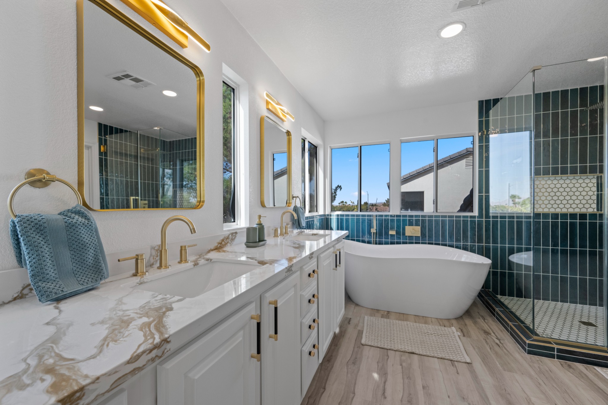 Just under 2,700 sq ft of reimagined elegance! Ideally situated minutes from Green Valley and MacDonald Ranch, this fully renovated 4-bedroom, 3-bathroom home blends timeless charm with modern sophistication. Step inside to soaring ceilings, an open staircase, and light-filled living areas perfect for entertaining. The gourmet kitchen is a showpiece, featuring a large quartz island, designer cabinetry, premium stainless steel appliances, and a walk-in pantry.