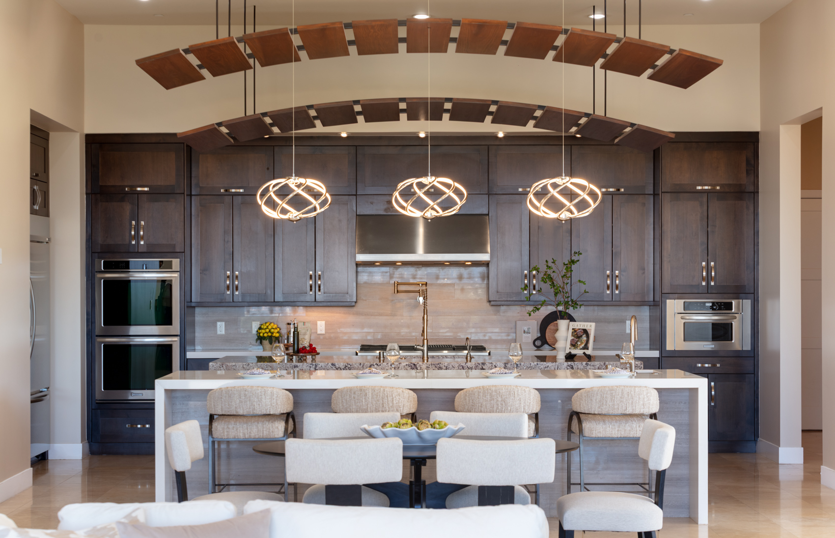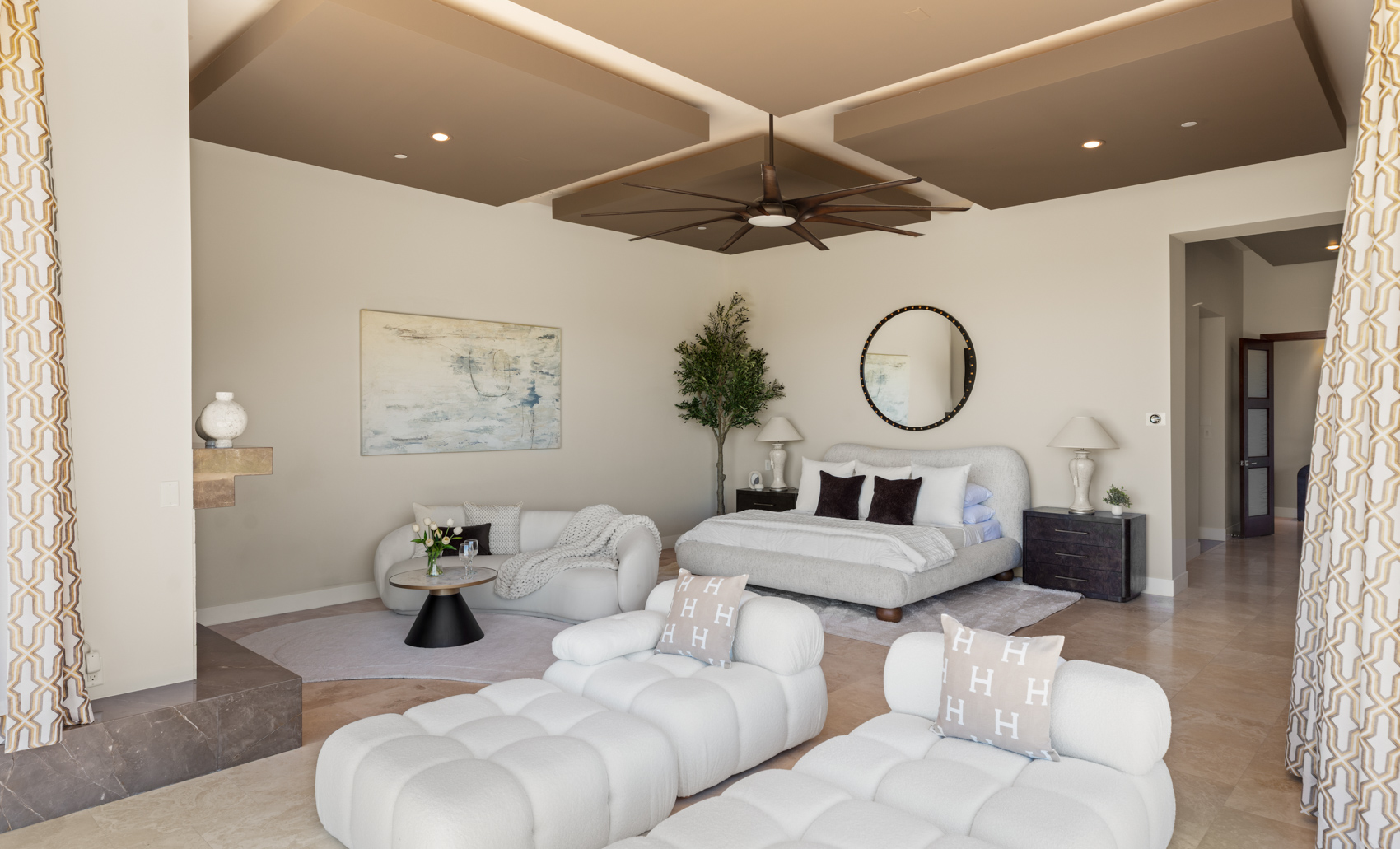 Every element of its 9,614 square feet reflects a seamless balance between modern architecture and timeless elegance. Situated on over a half-acre homesite, the homeās striking exterior is complemented by expansive observation decks that capture the city skyline in dazzling detail. Step inside to discover an open and fluid layout, filled with natural light streaming through walls of glass that blur the boundary between indoors and out. Every finish has been carefully curatedāfrom custom millwork and designer lighting to elegant stone surfaces and bespoke cabinetryācreating a cohesive atmosphere of understated luxury.