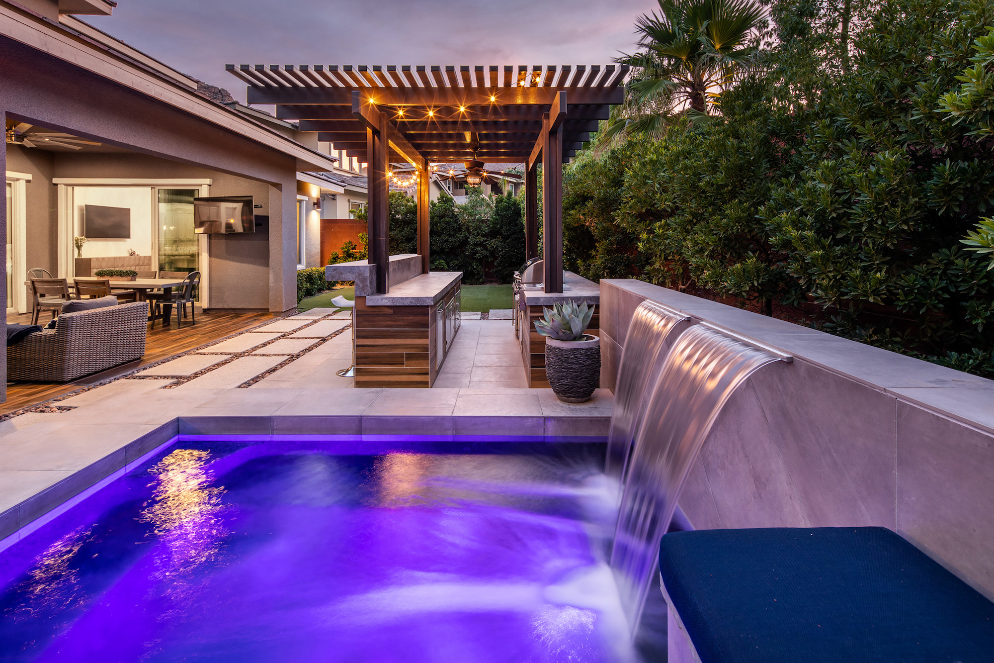 This 5 bedroom home lends endless areas to entertain, such as a home theater and an additional den perfectly suited for a billiard or game room. The floor plan centers around a great room with soaring ceilings as a focal point, next to your very own chef-inspired gourmet kitchen. Take a step out of your oversized sliding glass doors to a private oasis complete with a covered outdoor bbq area, massive party spa with sheer-decent waterfalls, and a lush fruit tree-lined yard.