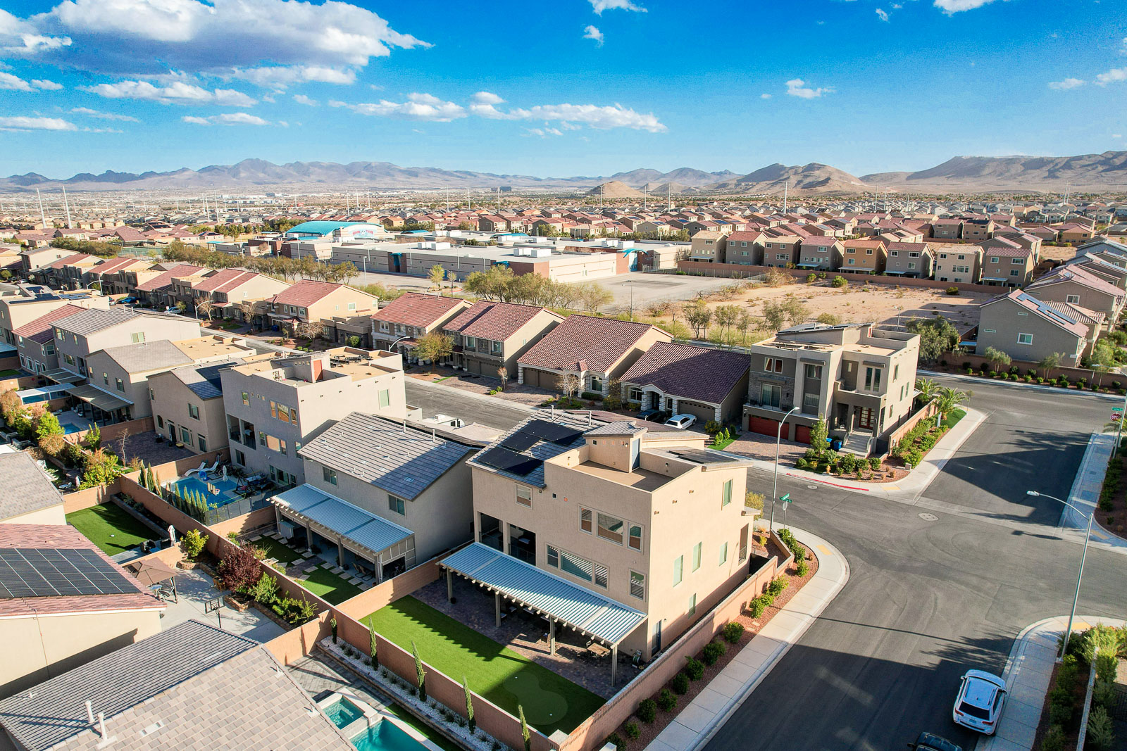 Exceptional three-story residence set on a premium, fully fenced corner lot within the desirable Highlands Ranch community of SW Las Vegas. Spanning 4,664 square feet, this expansive 5-bedroom, 3.5-bath home offers a versatile floor plan with dual primary suites on the first and third levels—ideal for multi-generational living or private guest accommodations.