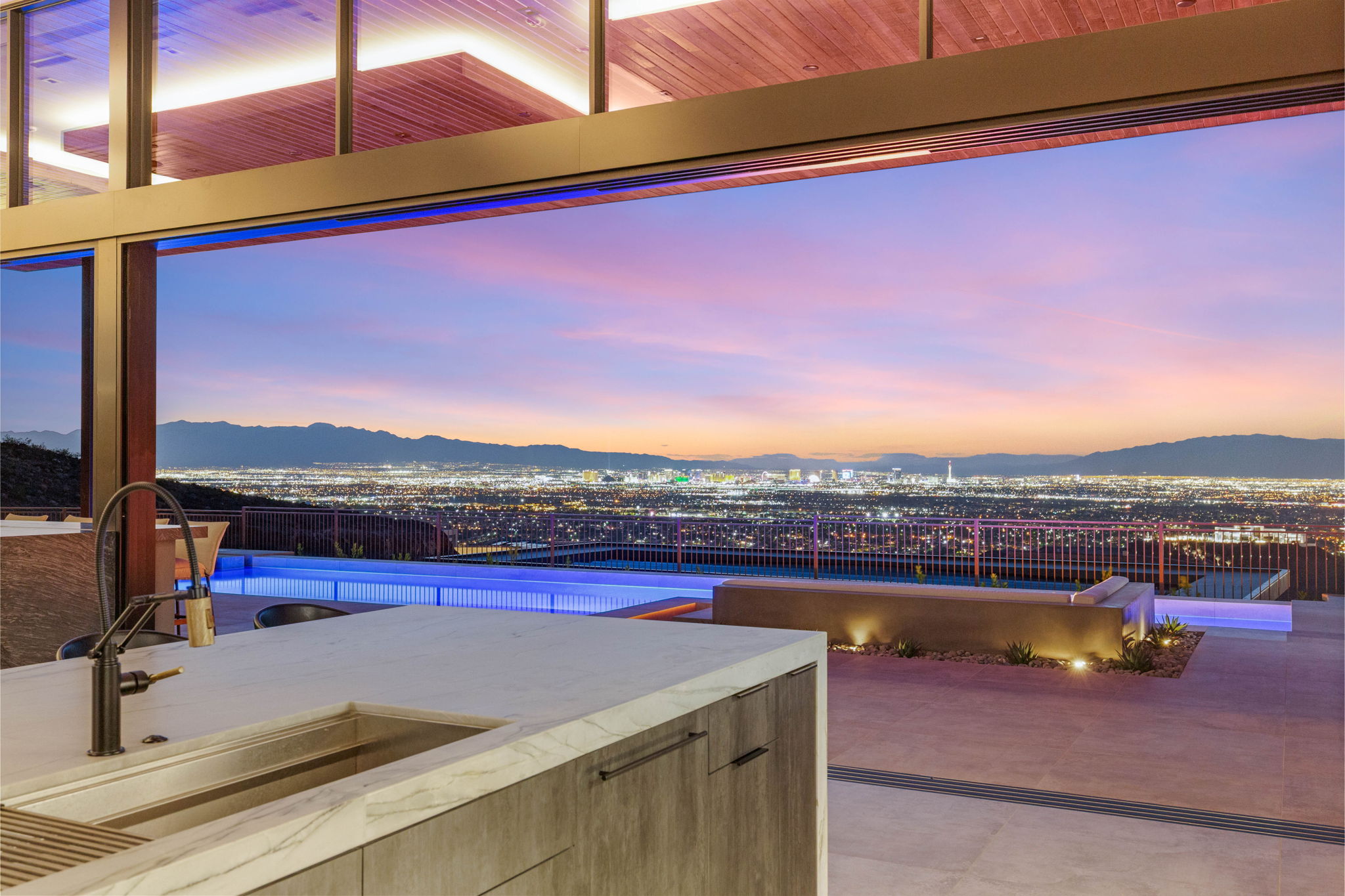Thoughtfully raised to the maximum height allowed, the property commands sweeping, unobstructed panoramic views that stretch across the Las Vegas Strip, the Spring Mountains, and Sunrise Mountaināoffering a constantly evolving backdrop from sunrise to city lights at night. Set away from street noise and neighboring rooftops, the home feels like a private retreat floating above the valley.