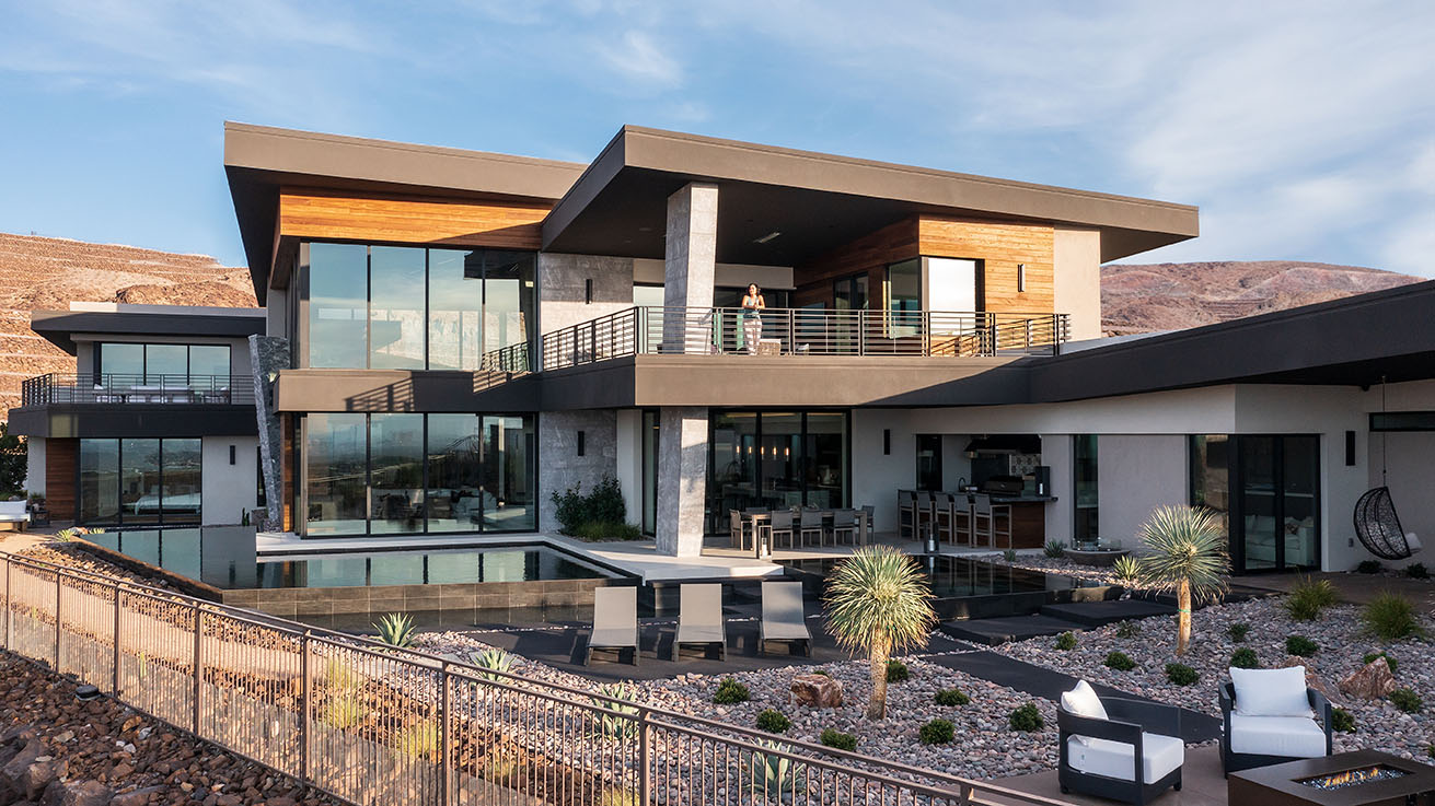 This remarkable custom-built, two-story luxury estate at 6 Vista Crescent Court, nestled in the exclusive enclave of ASCAYA, offers a rare blend of modern design and resort-style living. Spanning 8,438 square feet on a 0.75-acre elevated homesite, this architectural gem delivers sensational panoramic views of the iconic Las Vegas Strip from almost every angle. Each space is designed with entertainment and relaxation in mind, creating a seamless flow from indoor to outdoor living.