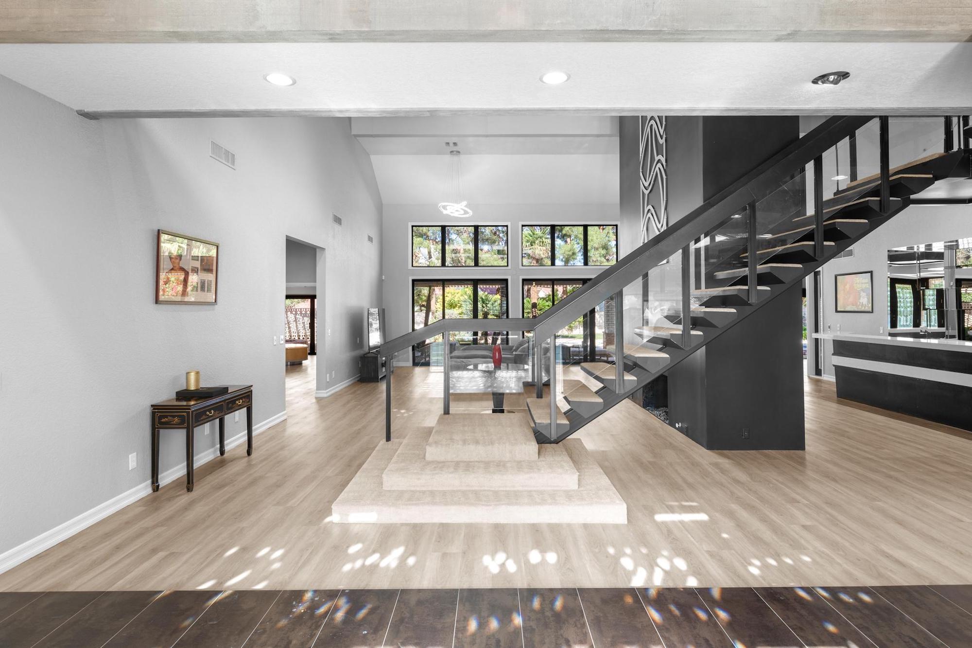 Welcome to your luxury villa nestled within the beautiful guard-gated Quail Run Estates, conveniently located with close proximity to the airport, shopping, and all that Green Valley has to offer. Secluded in the center of a half-acre lot surrounded by lush and mature landscaping, it is easy to escape in this mid-century modern oasis.