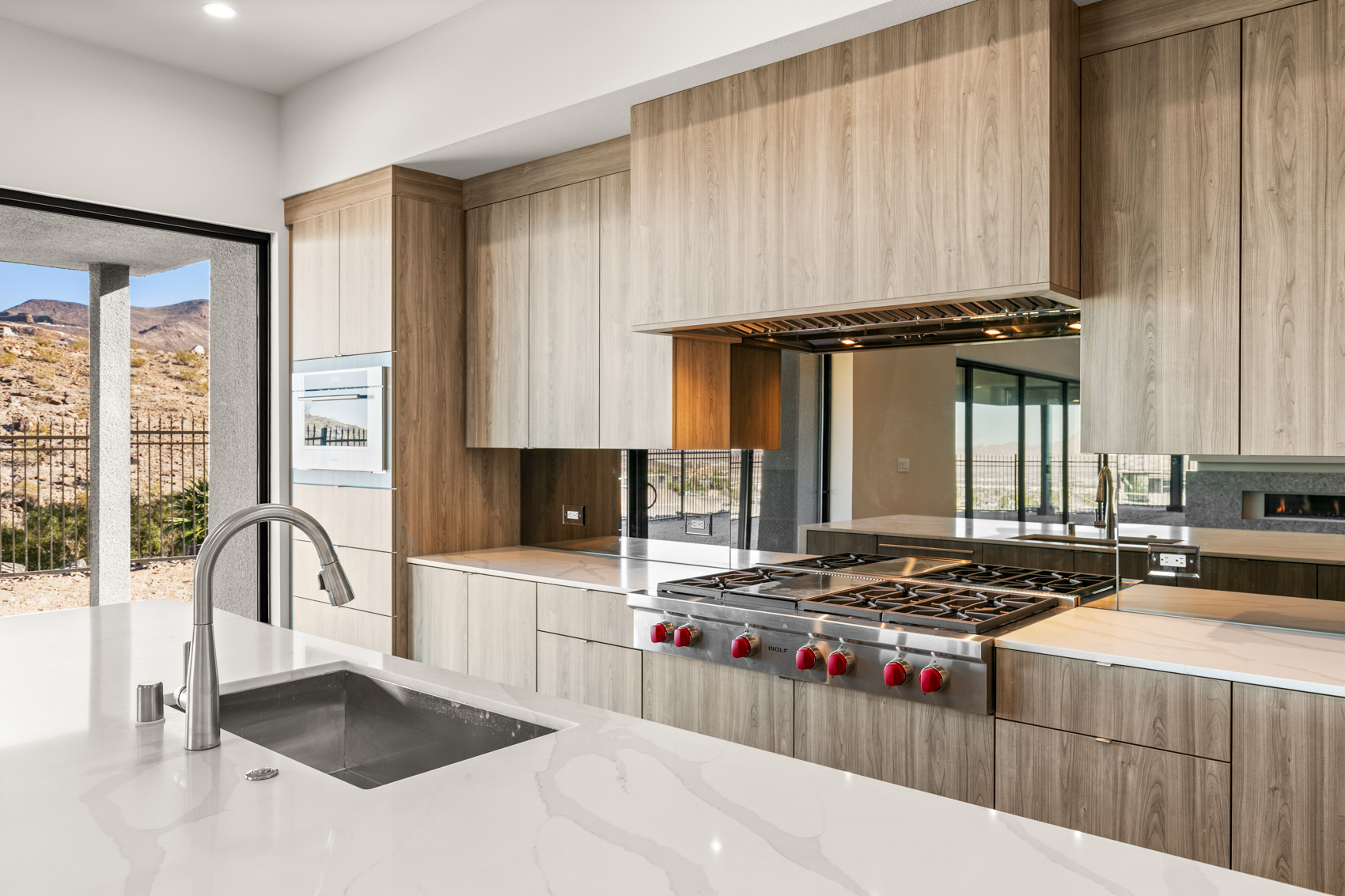 The main primary suite is situated on the main floor, featuring an extra-large walk-in closet for your convenience. The grand great room, with its high ceilings and a 72" linear fireplace, exudes a comfortable charm that amplifies the sense of openness. The kitchen is equipped with top-notch Wolf appliances, including a double oven, a 48" range, and a 72" SubZero refrigerator, providing a functional space where culinary needs meet simplicity. Ascending the floating staircase leads to a practical upstairs loft with a bar, opening to a balcony with a cozy fire pitāan enjoyable space for gatherings, entertaining, and relaxation. The junior master suite on the upper level is adorned with sunrise windows, creating a bright, serene atmosphere. Two additional bedrooms showcase the unique Dragon's Back rock formation, adding character to the space. The east-facing backyard is a blank canvas that can be used to fulfill landscaping dreams, and it is all set for any design. The connection between indoor and outdoor spaces is splendid and can adapt to any lifestyle. This property provides a comfortable and straightforward living experience, offering all the essentials required for modern living against a beautiful natural backdrop. You can make this Blue Heron home yours to achieve a lifestyle that balances refined living with simplicity. It is a perfect celebration of the extraordinary in a more understated way. The luxury double guard-gated enclave of MacDonald Highlands is just a 30-minute drive from the Strip and features 24-hour security and the DragonRidge Country Club, renowned for its championship golf course, tennis, pickleball, and world-class amenities.
