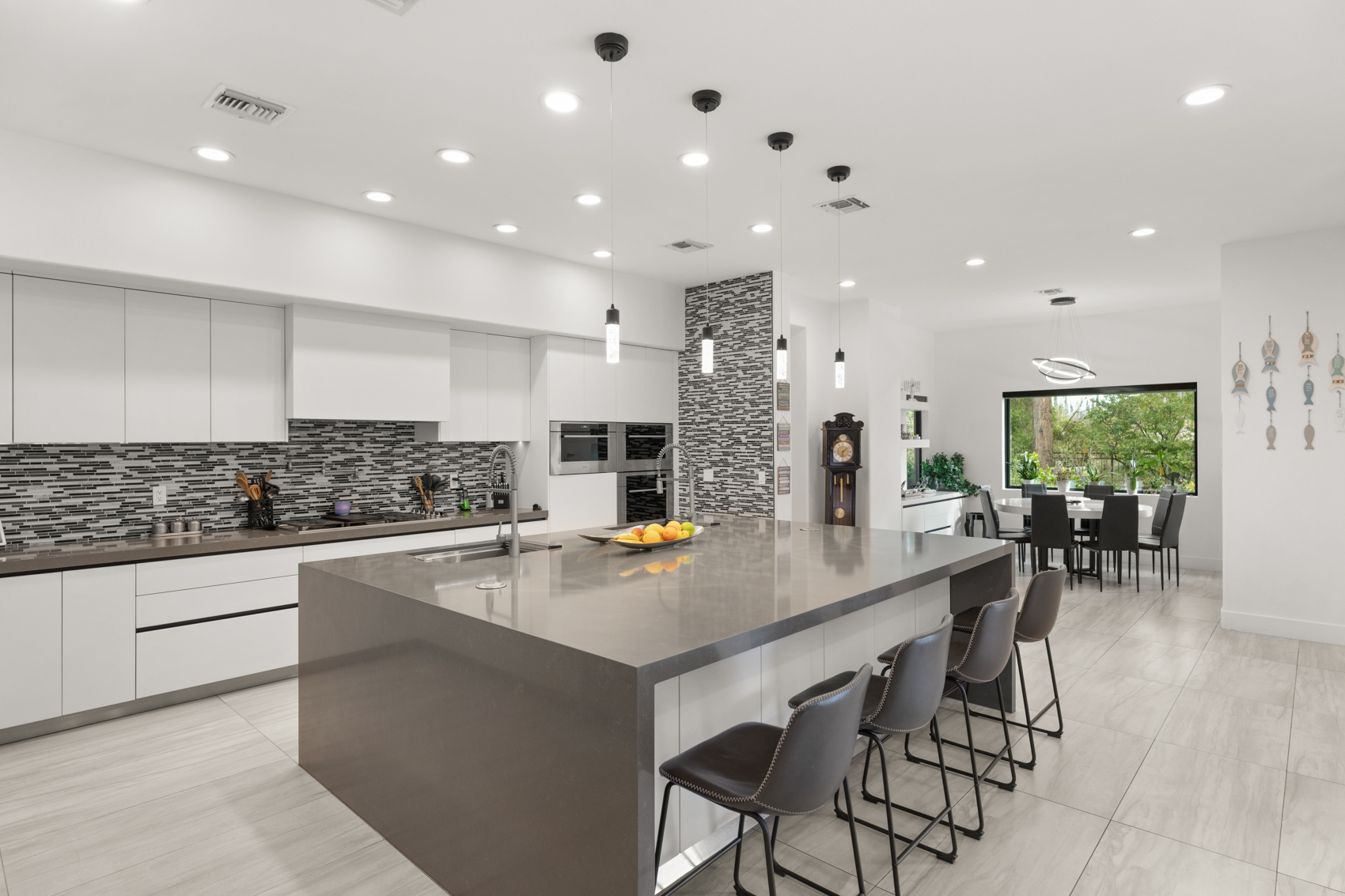 A rare find in coveted Canyon Fairwaysāthis sleek, contemporary estate offers nearly 7,000 sq. ft. of refined luxury on a 0.37-acre homesite. Designed for seamless indoor-outdoor living, the great room features a 3-panel stacking slider, custom built-ins, and a linear fireplace. A chefās dream, the kitchen boasts stainless steel appliances, dual waterfall islands, an oversized main island with two sinks, and a Wolf coffee bar.
