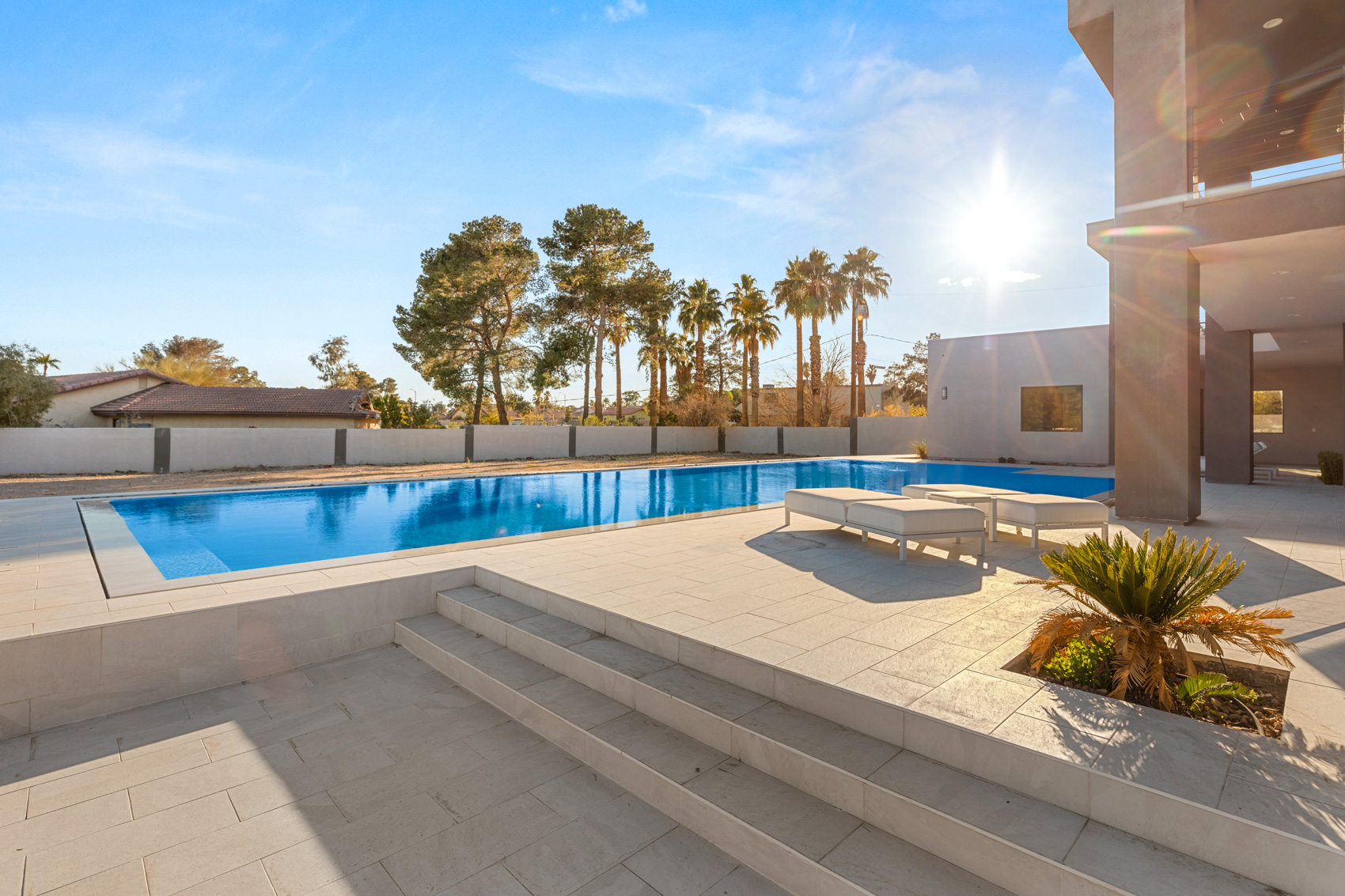 One of the most notable features of this residence is the inclusion of not one, but two primary bedrooms on the main levelāa rare find that exemplifies thoughtful design and attention to detail. Each primary suite offers a spacious layout, complete with luxurious en-suite bathrooms, providing a private sanctuary for rest and rejuvenation. The gourmet kitchen serves as the focal point of the home, boasting high-end appliances, custom cabinetry, and a large center island that doubles as a gathering space for family and friends. Adjacent to the kitchen, the dining area and family room are bathed in natural light, creating a warm and inviting atmosphere that beckons you to linger and unwind. Venture upstairs to discover the loft family room, where a wet bar awaits, providing the perfect setting for entertaining guests or simply enjoying a quiet evening at home. From here, access the rooftop terrace, where breathtaking views of the surrounding landscape stretch out in every direction. Whether you're sipping cocktails as the sun sets or stargazing beneath the night sky, this outdoor oasis offers a serene retreat from the hustle and bustle of everyday life. A spacious upstairs master bedroom with spacious spa-like bathroom and wardrobe area complete the layout. All in, this fine residence comprises 5 bedrooms, 1 casita, and 6 bathrooms; 5 garages and a large outdoor plot with street access to provide for additional parking. Outside, the meticulously landscaped backyard beckons with its sparkling pool and an 80-foot fire featureāan impressive addition that adds a touch of drama and elegance to the outdoor space. Perfect for year-round enjoyment, the pool serves as a refreshing escape during the hot summer months and a cozy gathering spot on cooler evenings. In addition to the main residence, this property also features a casita, offering a private retreat for guests or extended family members. With its own living space, kitchenette, and bathroom, the casita provides the perfect blend of comfort and privacy, ensuring that everyone who visits feels right at home. One of the most notable aspects of this property is the resort-sized pool, which is one of the last built before size restrictions were put in placeāa testament to the home's legacy and status as a truly unique find in the Las Vegas real estate market. And with no HOA to restrict your freedom, you have the freedom to customize and personalize your living and outdoor spaces to suit your unique tastes and preferences. Smart-home features include high speed internet, extensive ethernet pre-wiring throughout the residence, HIKVISION security camera system, alarm system, NEST HVAC controls, as well as remote access controls for all 5 garages, the three driveway gates, the irrigation system and a LUTRON systems controls the lights. Floor-to-ceiling windows allow for natural light to flood the interior while retaining modern insulation against the heat or cold outside. This smart home is designed to be uniquely energy efficient. Located in the vibrant neighborhood of Section 11, this residence offers the perfect blend of tranquility and convenience, with easy access to shopping, dining, entertainment, and more. Whether you're seeking a peaceful retreat or a dynamic urban lifestyle, this property offers the best of both worldsāa rare opportunity to own a piece of paradise in one of Las Vegas's most sought-after communities. . In summary, 6385 Darby Avenue represents the pinnacle of contemporary luxury living in Section 11. With its thoughtfully designed living spaces, array of upscale amenities, and prime location, this residence offers a lifestyle unlike any otherāan opportunity to indulge in the finer things in life and make lasting memories with family and friends. Don't miss your chance to call this exceptional property homeāschedule a showing today and experience the epitome of modern luxury for yourself.