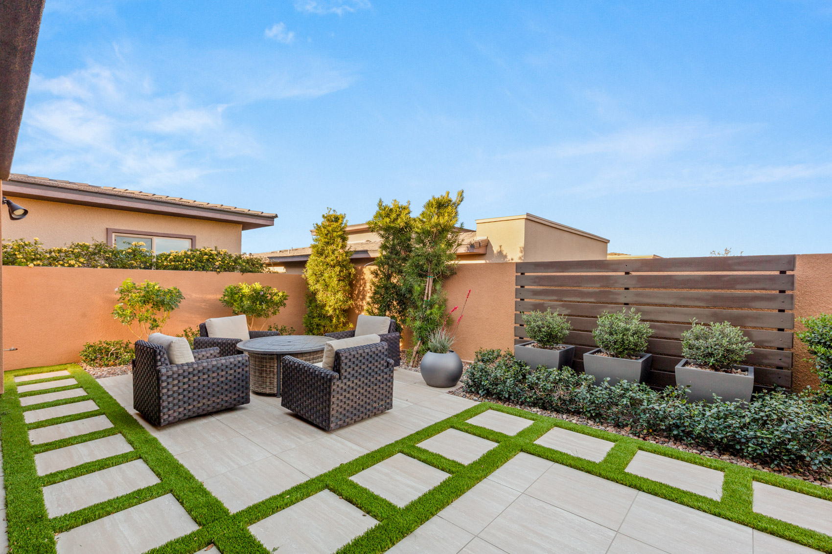 A well appointed office provides a perfect work-from-home space or quiet retreat. Kitchen features quartz countertops, tile backsplash, upgraded white maple cabinetry, stainless steel appliances, a 36" gas cooktop and canopy vented hood. Spacious primary suite offers a luxurious bath with dual vanities, oversized shower, generous walk-in closet with custom California Closet system. Additional highlights include custom built-ins in the living room and office, water filtration system, security system. Regency offers resort style living with amenities such as fitness center, indoor / outdoor pools, pickleball, tennis, bocce, walking trails.