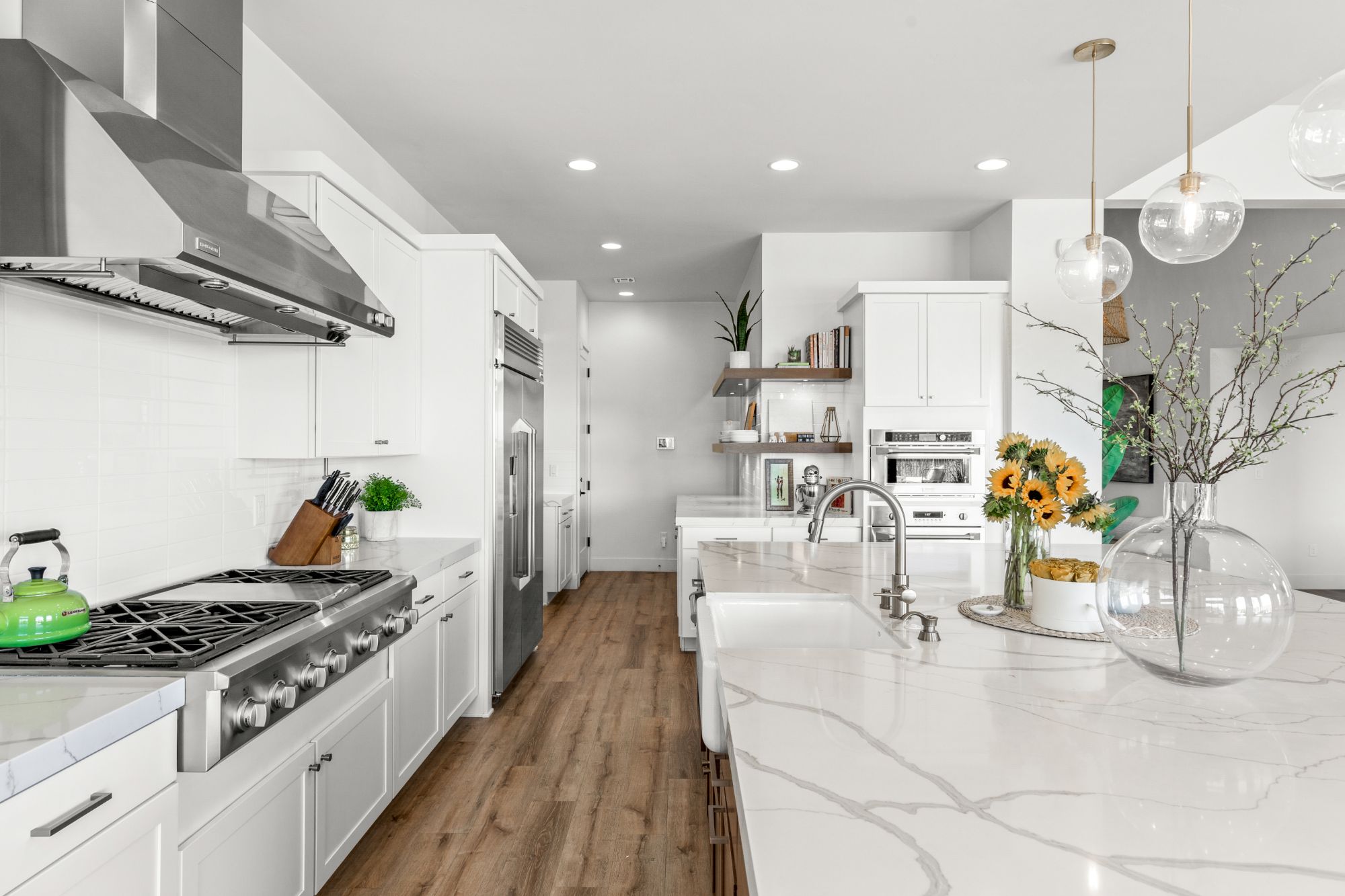 The open floor plan of this bright, modern home offers striking, 18' vaulted ceilings, pocket doors for the best in indoor/outdoor living, and a gourmet kitchen with features such as Monogram appliances, a pot filler, an industrial stove top, and waterfall edge island. The secluded master suite provides you with a custom walk-in closet and a resort-style bath featuring a stand-alone tub, lavish shower, vanity, and dual sinks. There is plenty of exterior room to let your imagination roam to ideas like an elevated deck or your own pool. This is the home you have been waiting for!