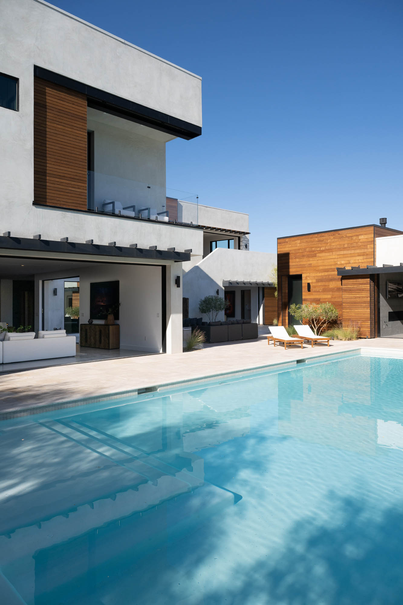 The primary suite is generously appointed with an impressive strip view, private balcony with motorized wood shutters for privacy, soaking tub, steam shower and boutique-style walk-in closet. Set on a 0.46-acre lot, the backyard includes a 712 square-foot casita, pool, spa, outdoor kitchen, and central firepit for outdoor ambiance. Renowned photographer and artist Peter Lik brings his passion for architecture and design to life, creating some of Las Vegas's most breathtaking custom homes. His experiences capturing the worldās natural beauty and iconic landmarks have inspired Jewel Homesā organic modern aesthetic.