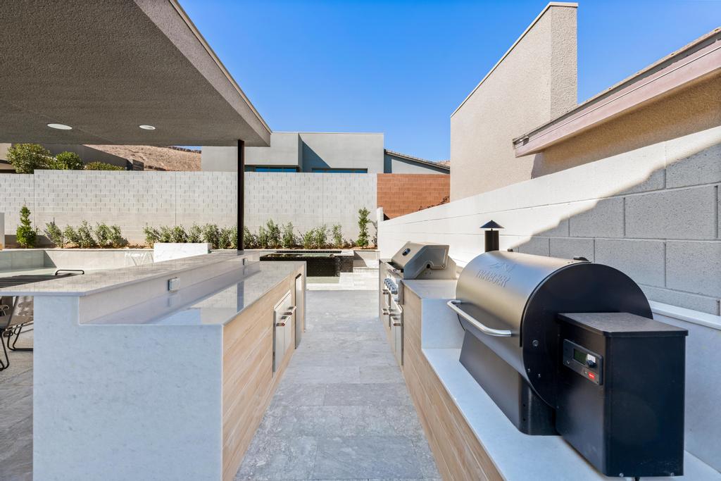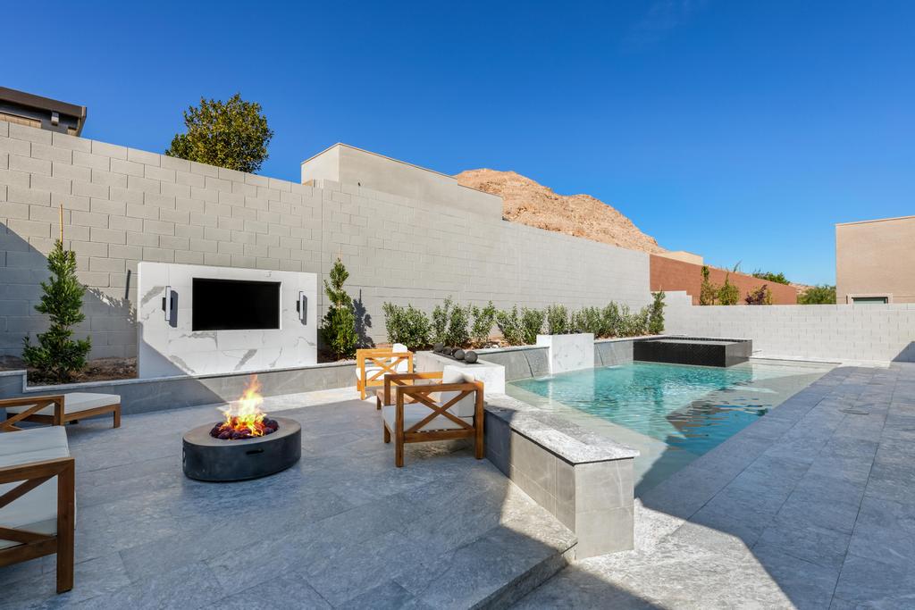 With the primary bedroom on the main floor, you'll enjoy easy access to the great room which boasts luxury with an Italian marble-coated book-matched fireplace, open living space, as well as generous amounts of counter space in your upgraded chef's kitchen for entertaining. With multi-stacking doors, you instantly step into luxury yet again with multiple fire features, a modern pool with waterfalls, zero edge spa, an outdoor kitchen, a dog run, and a lounge area with a fire pit and TV. This home will not disappoint.
