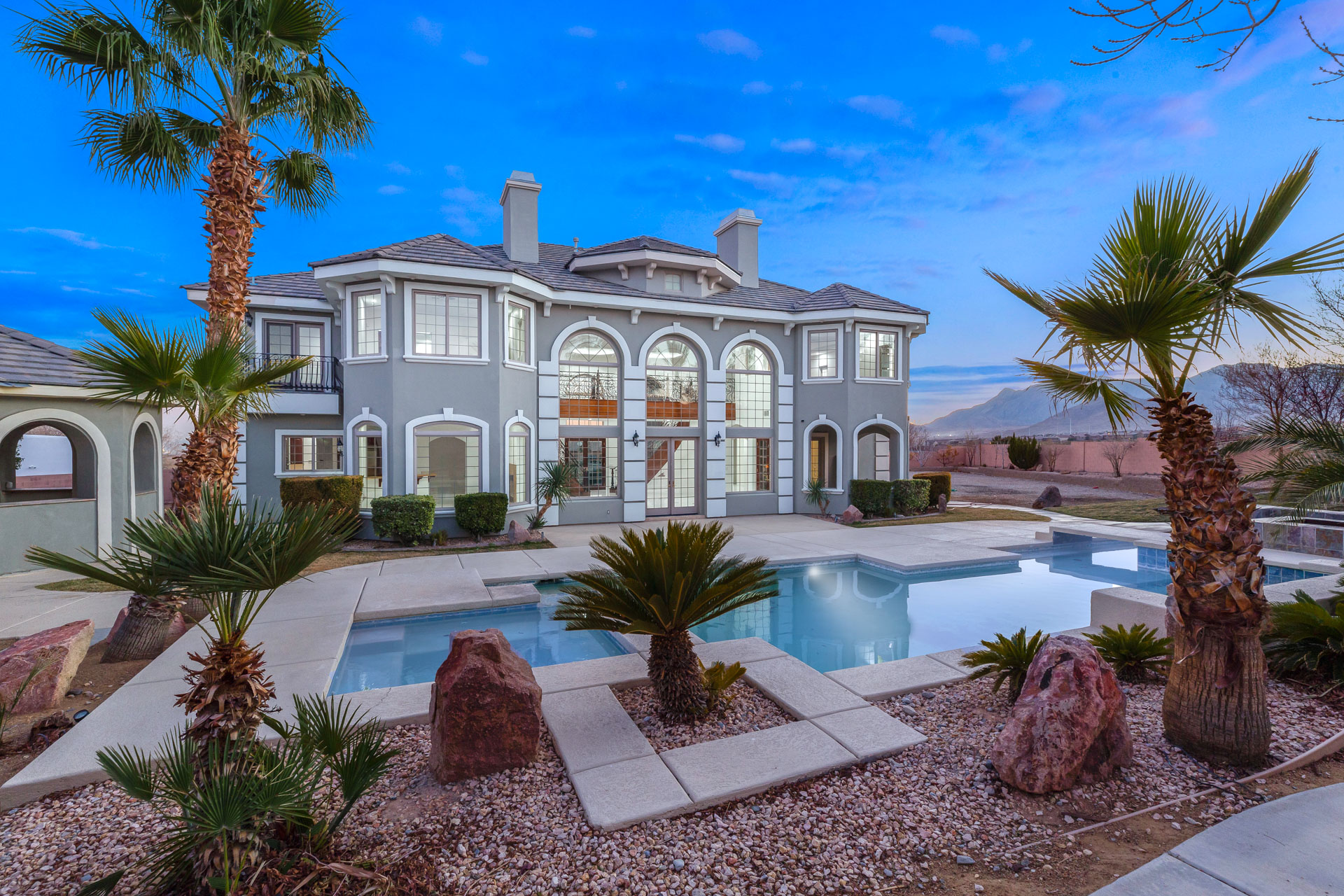 Stately custom home located in the sought after Providence area in Northwest Las Vegas. This home sits on over a half acre lot with city views in a small gated community of only 8 homes.